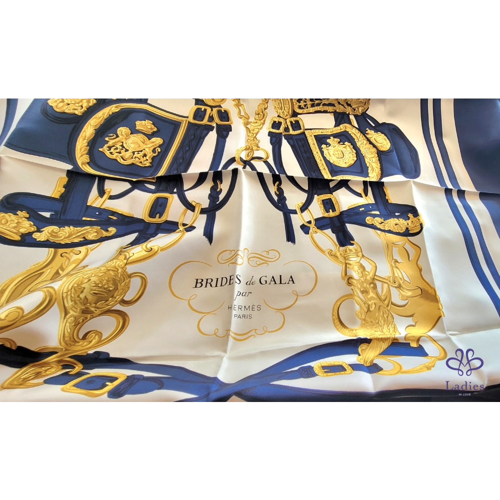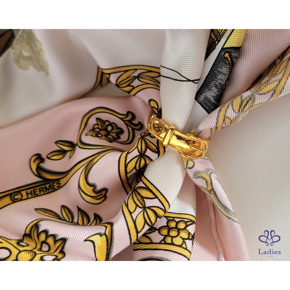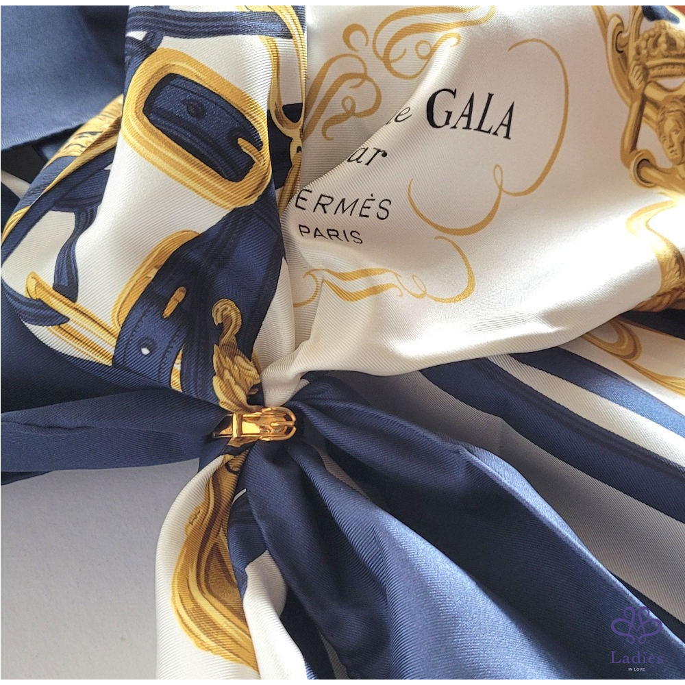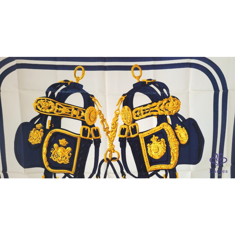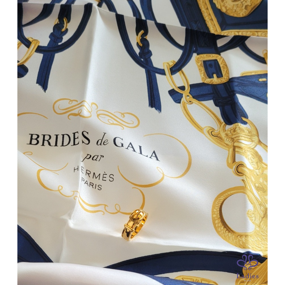 ~HERMES 未使用品 附原廠盒 絲巾環+深藍色新娘馬鞍圖案絲巾(共二件商品)