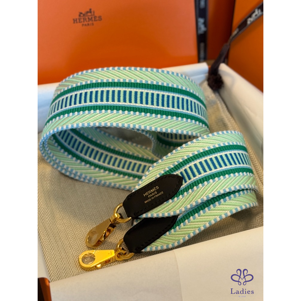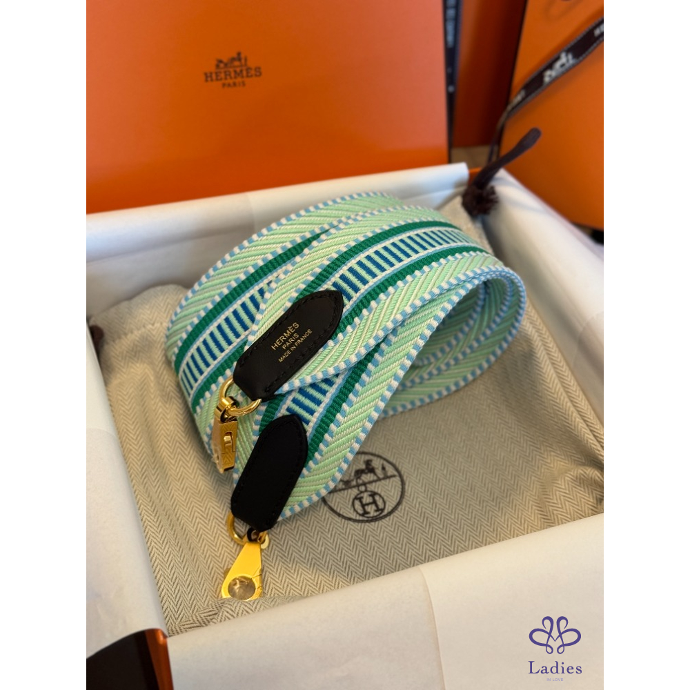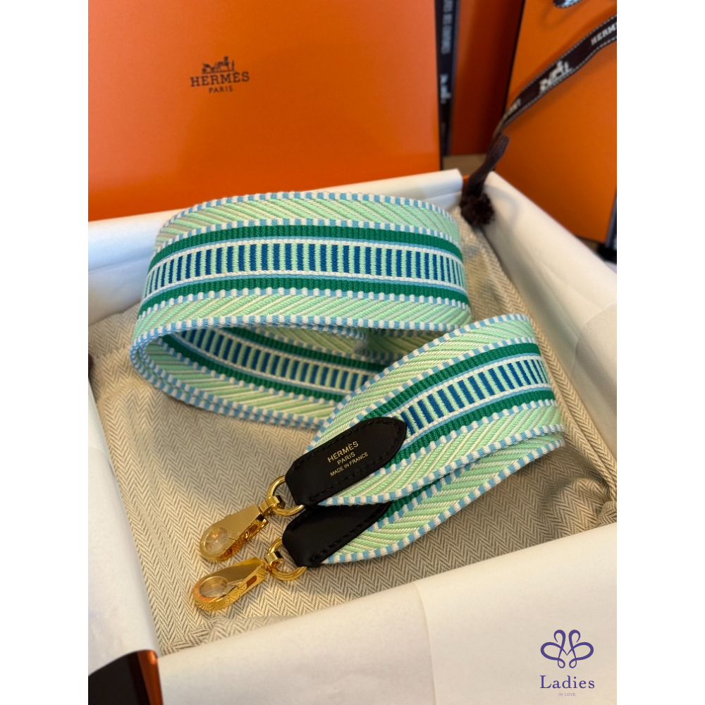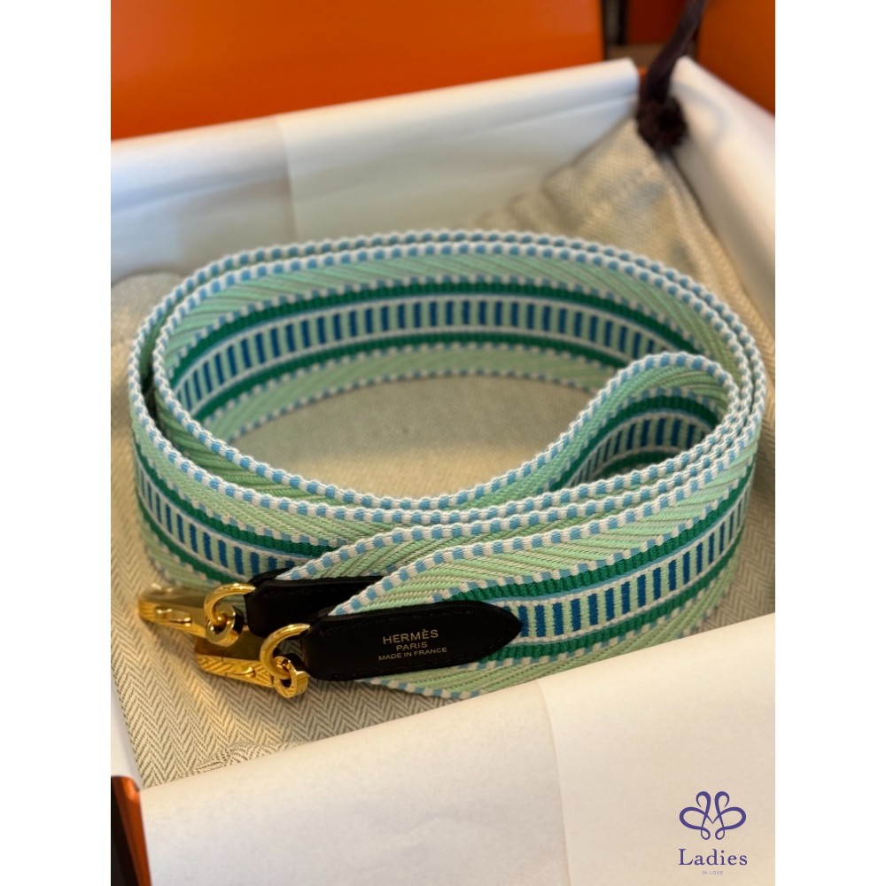 全新全配Hermes Sangle Cavale 50mm 編織背帶 Vert Pâle / Vert Fizz / Noir搭配金釦