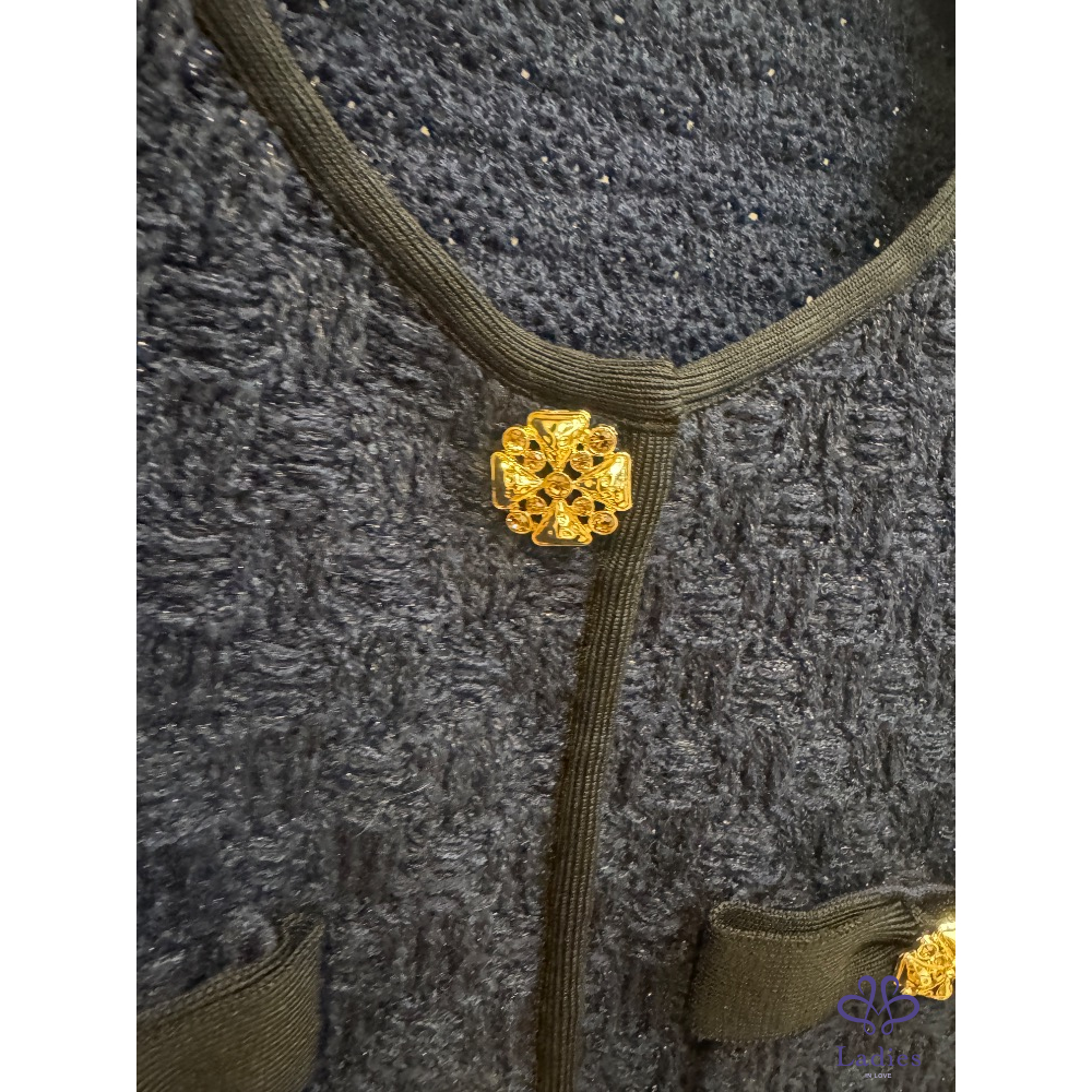 重磅針織外套,珠寶鈕扣設計、墊肩可拆,僅穿2~3次,購自國外電商。