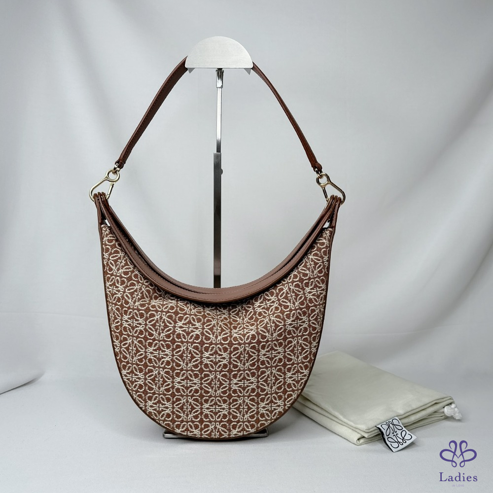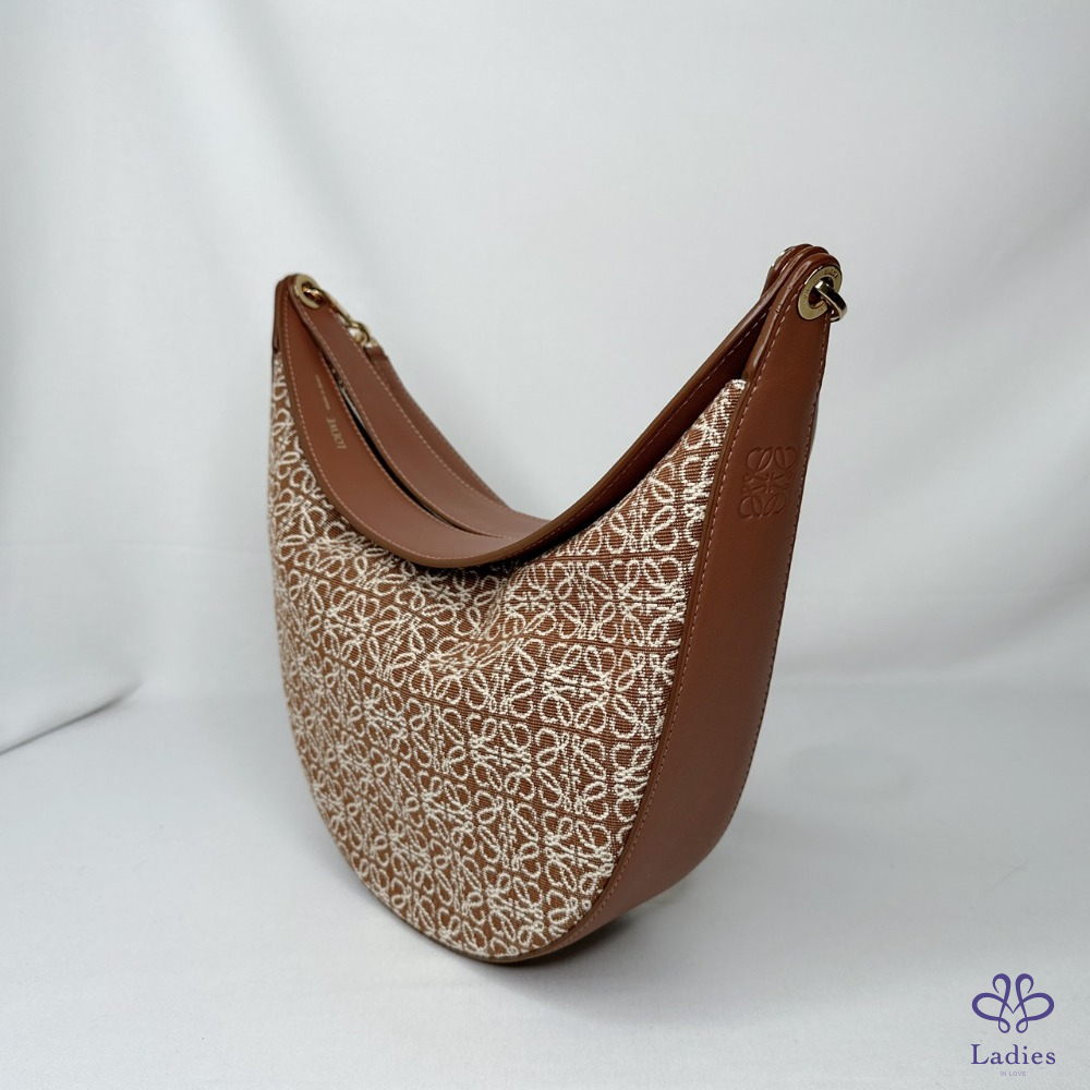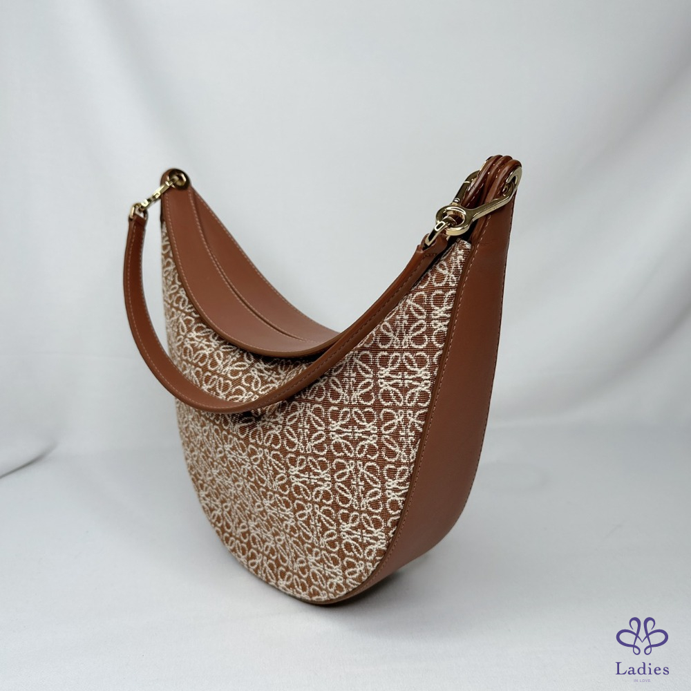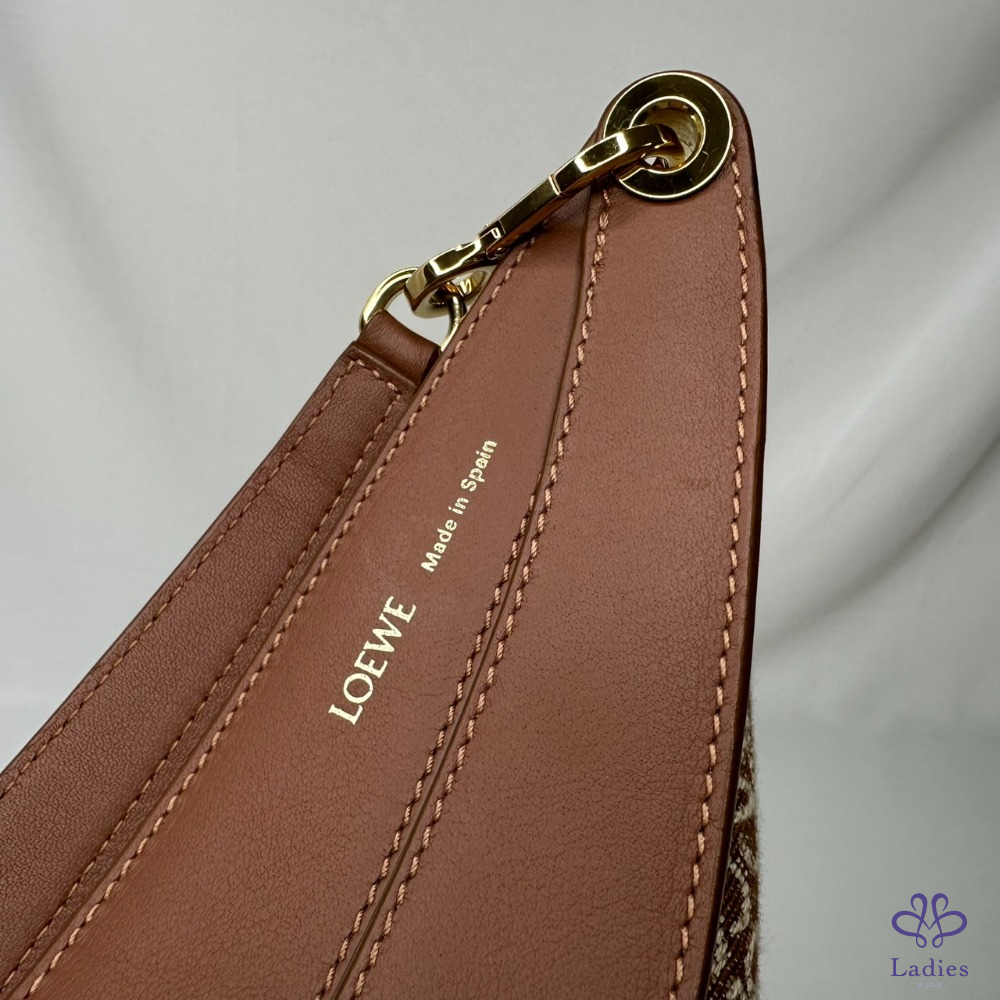 產品信息 【LOEWE Luna緹花肩背半月包】 經典緹花刺繡帆布和小牛皮,配有可拆式皮革肩帶 採用雕塑感的輪廓和弧形雙唇扣,磁扣開合 隱藏式滑動孔眼 讓手袋可掛上可愛的吊飾或自加肩帶 整體包況約9成新,二手商品均有正常使用/存放痕跡 型號:0010728194 尺寸:29.5x27x8cm 附件:原廠防塵袋 #B114021601