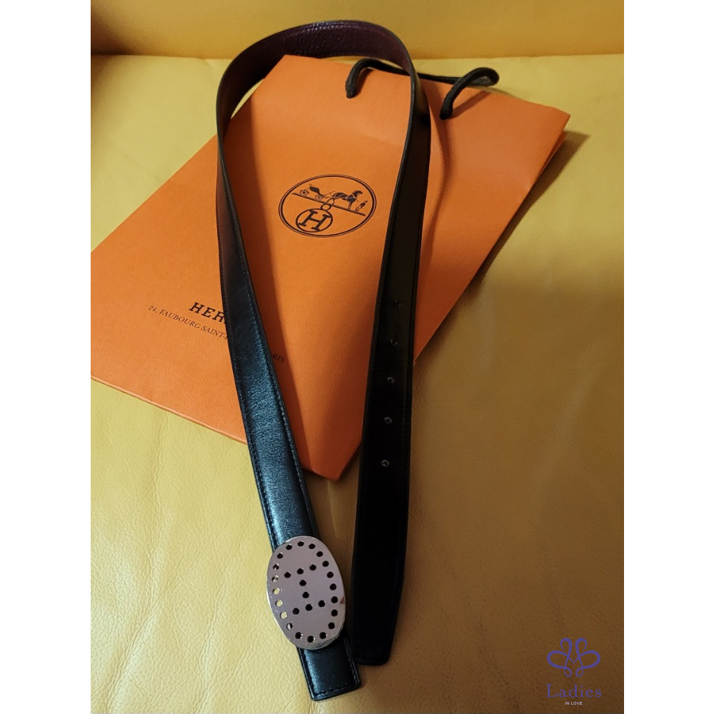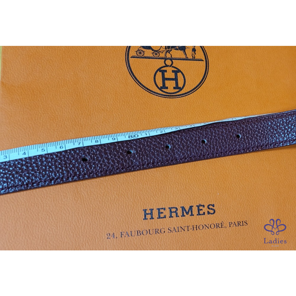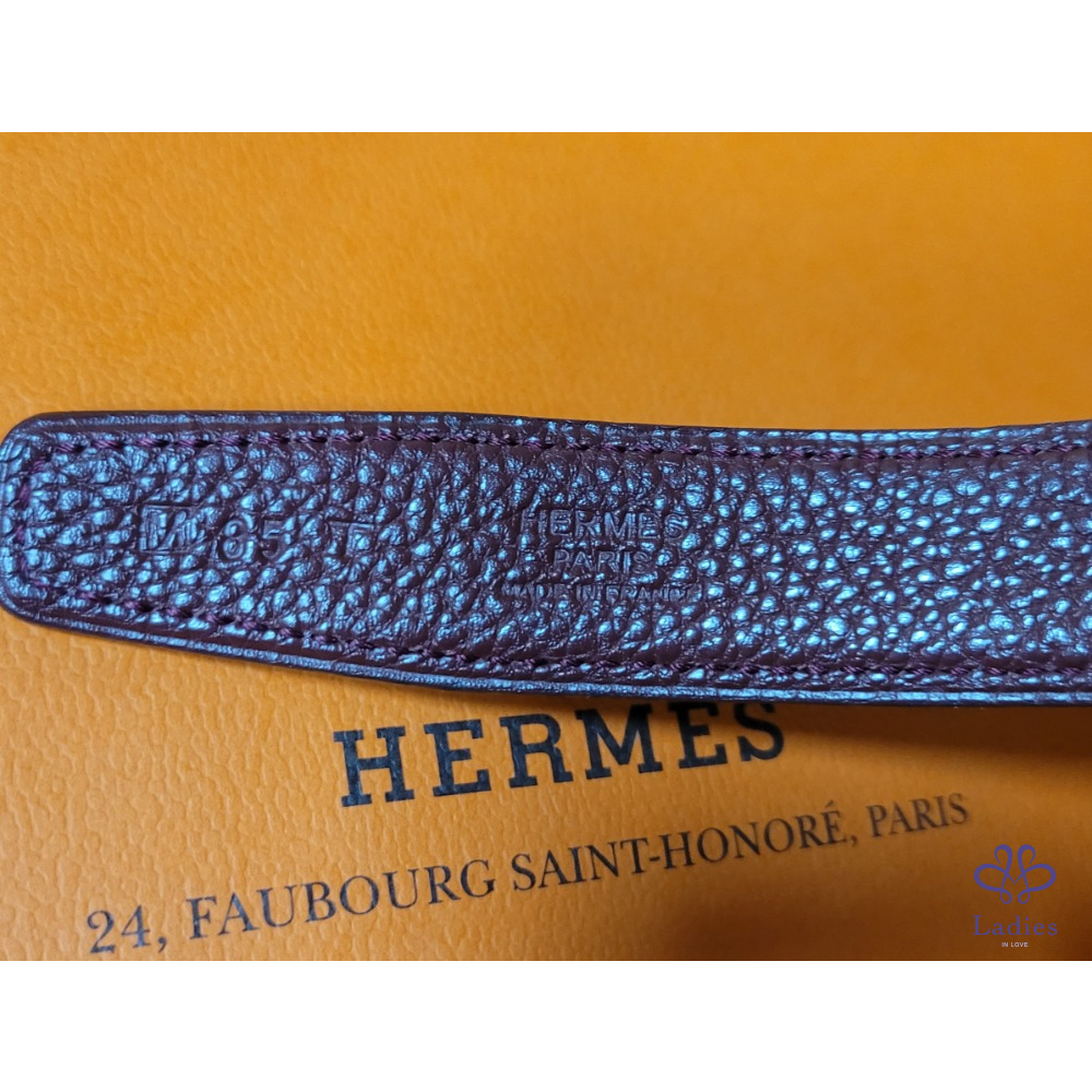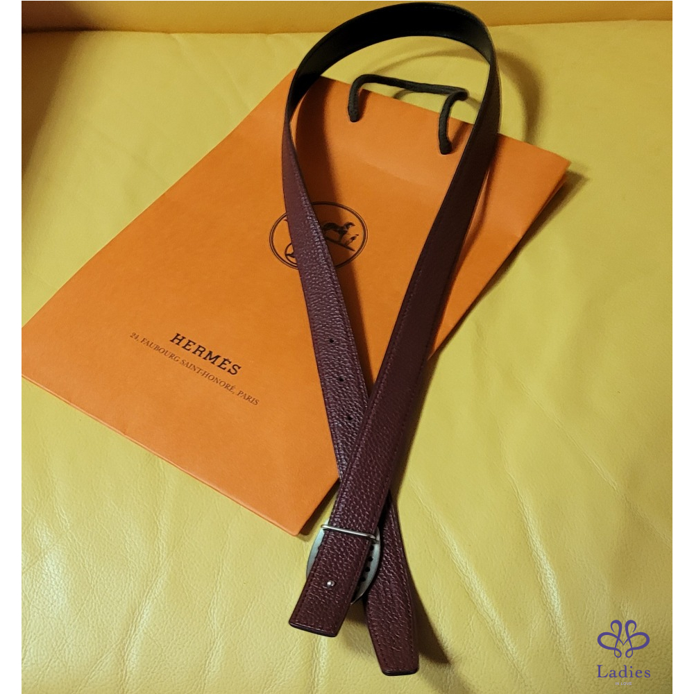 ~HERMES 銀鏤空H扣頭 黑/咖啡紅雙面腰帶85刻印
