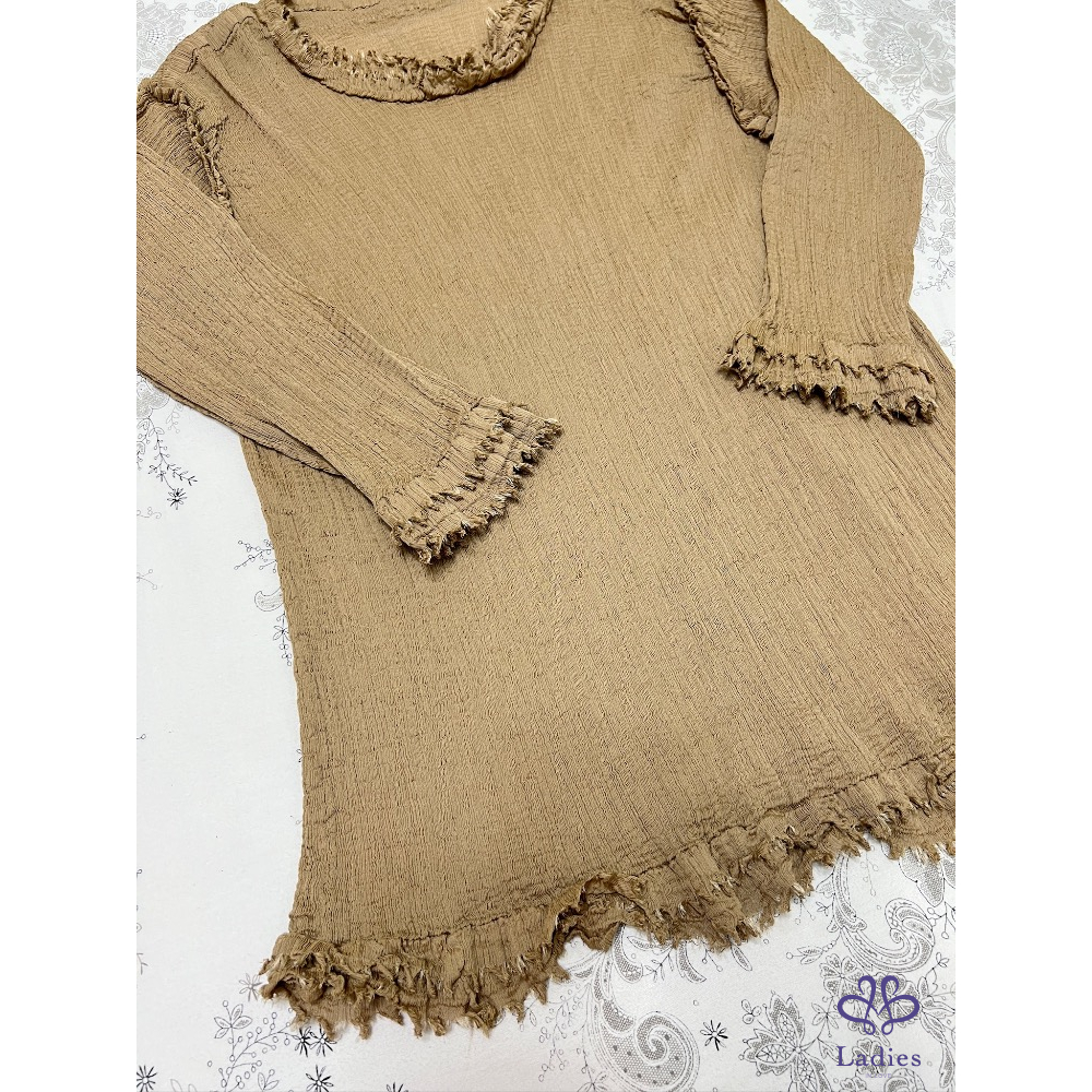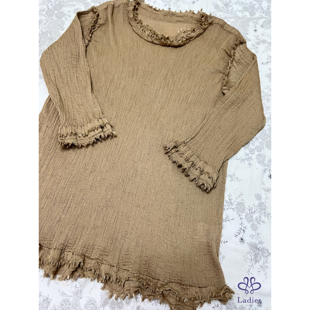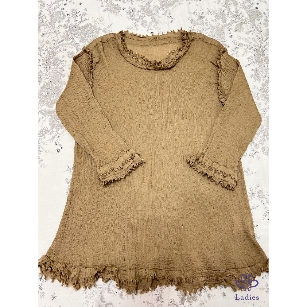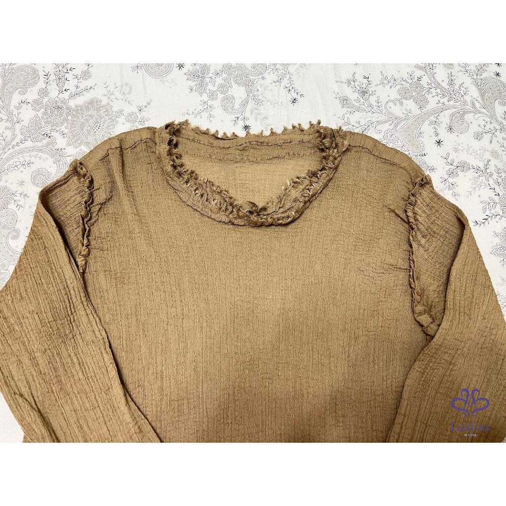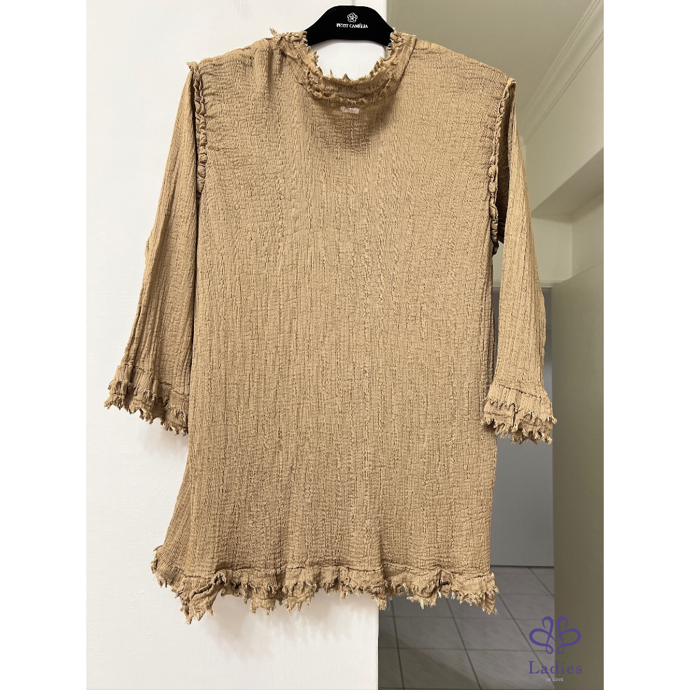 售三宅一生ISSEY MEYAKE me沙色皺織造型上衣,23年6月款,搭配窄管褲、寬褲、直筒褲疊穿,這件上衣都很出色,