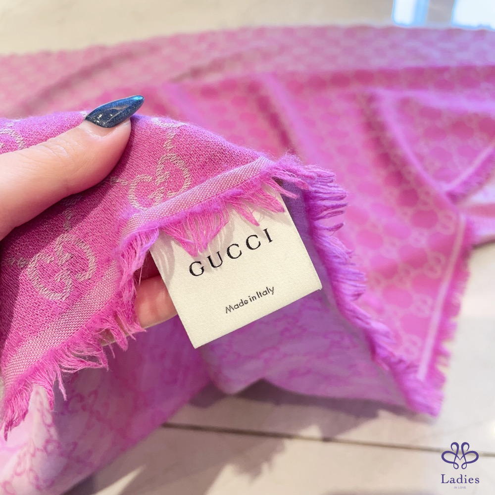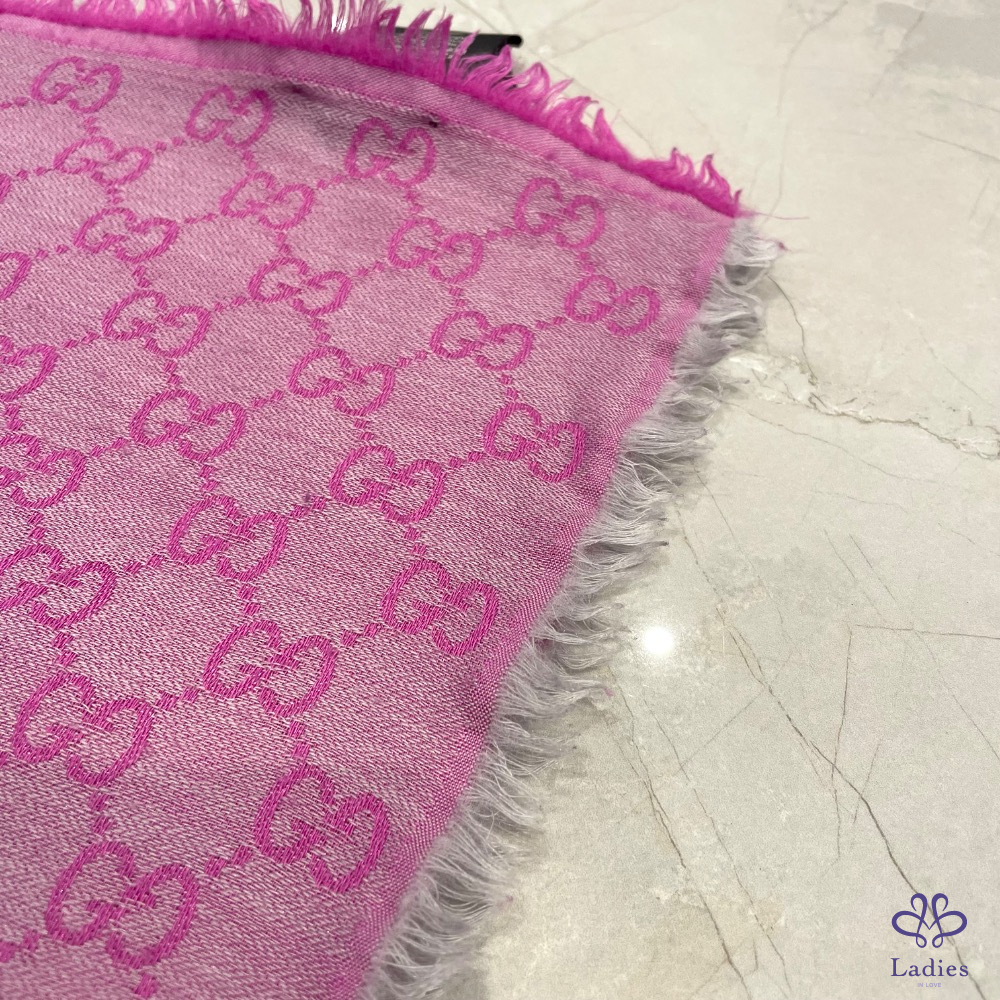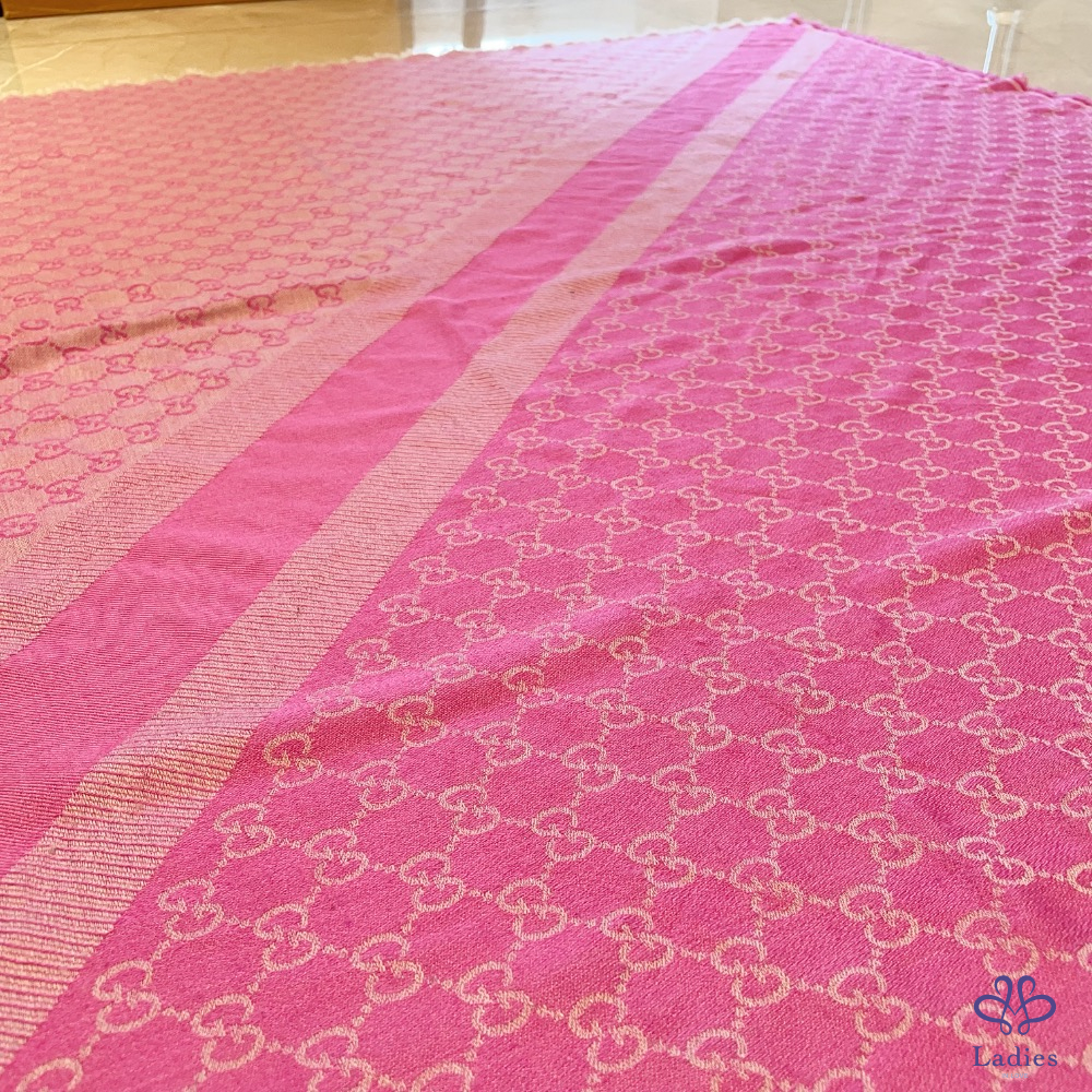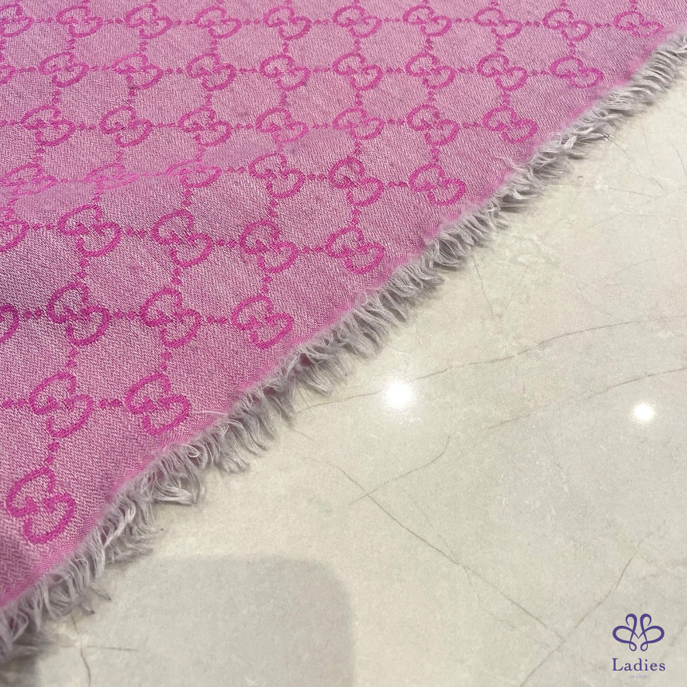 Gucci 雙色老花圍巾 粉色