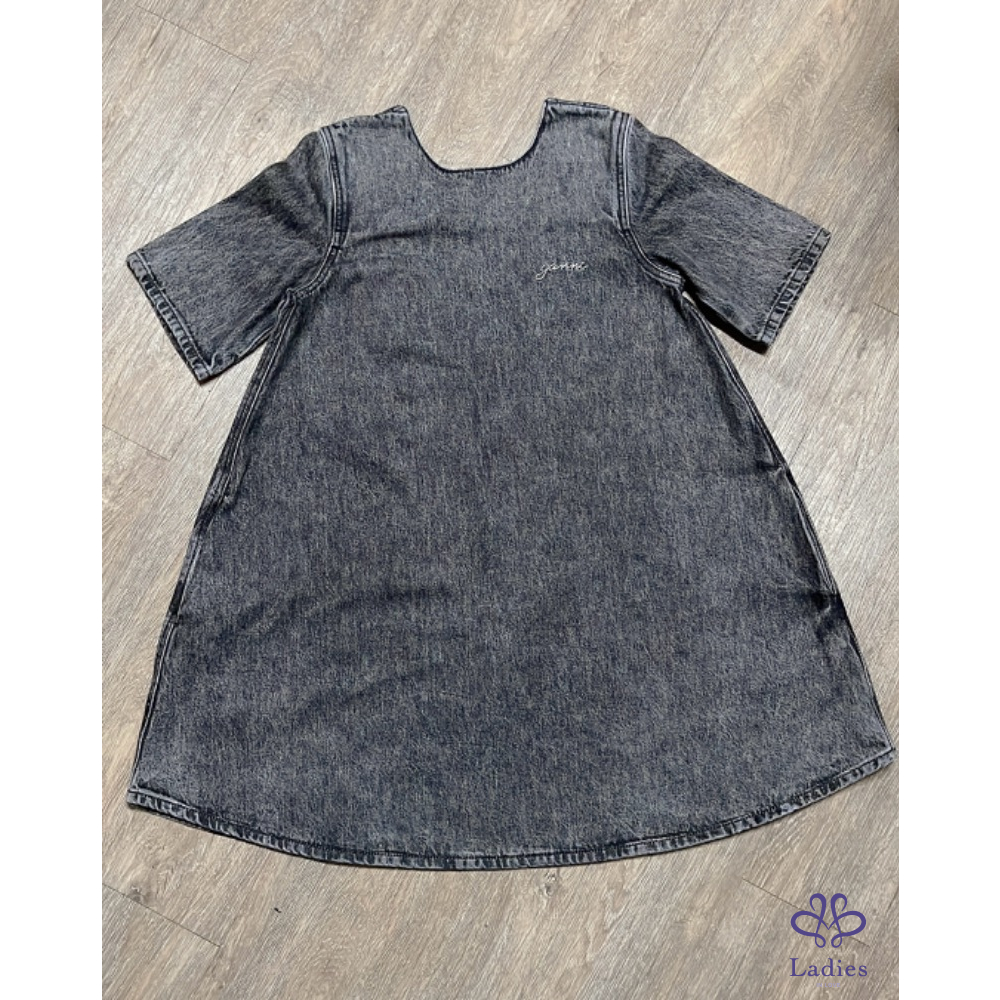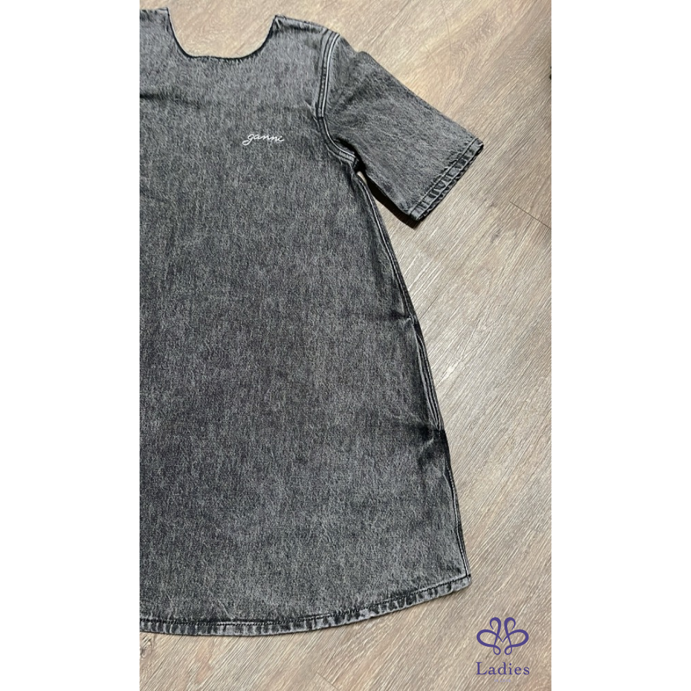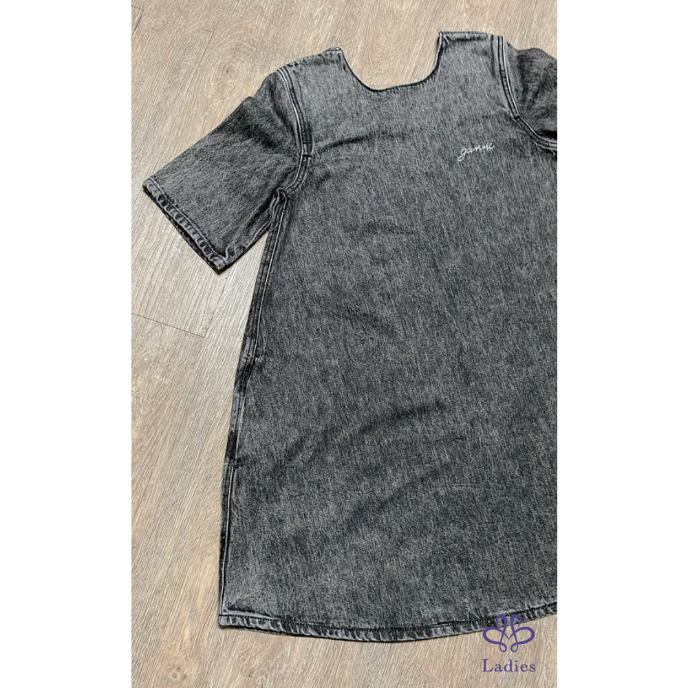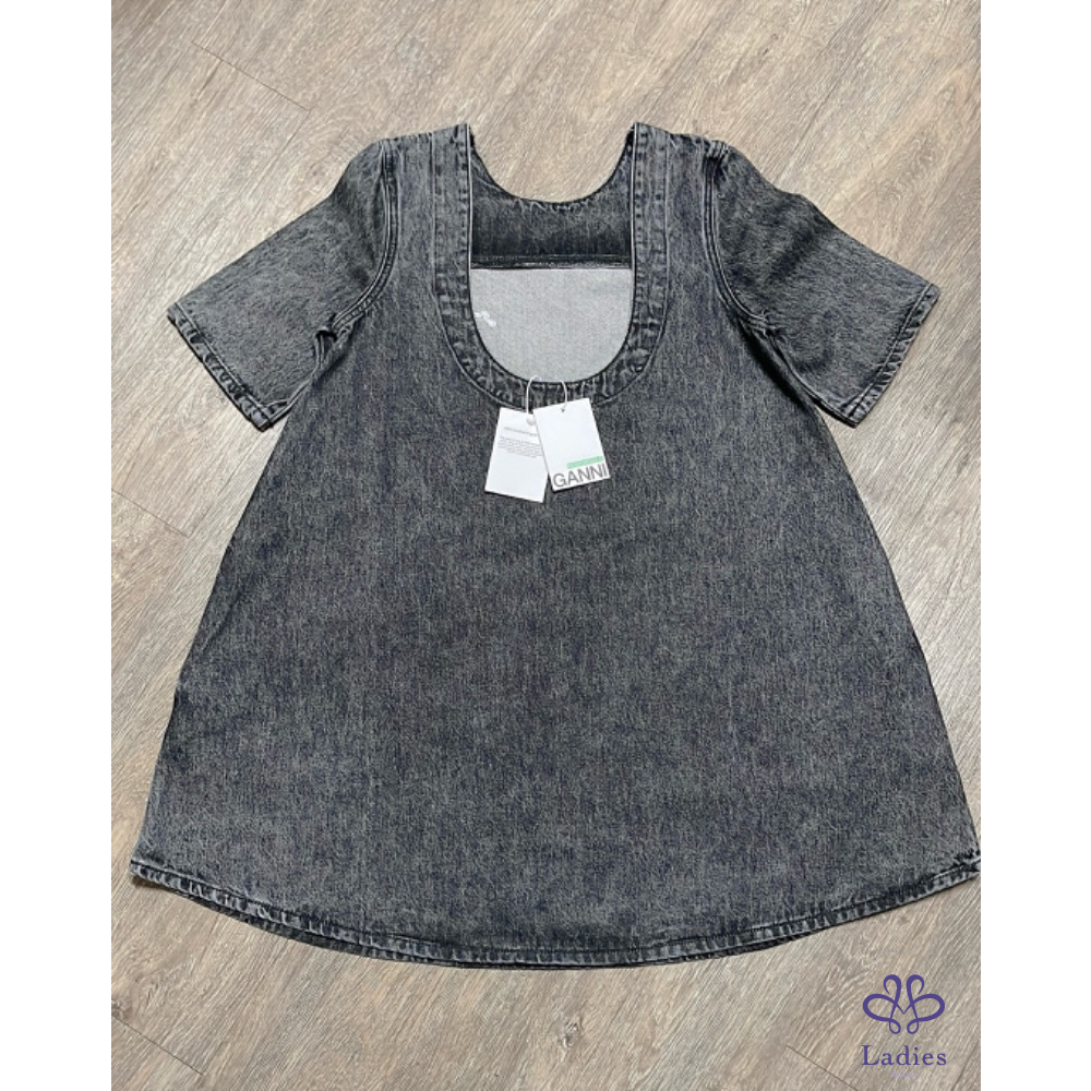 首頁 精品服飾 全新GANNI黑色水洗復古牛仔美背連衣裙