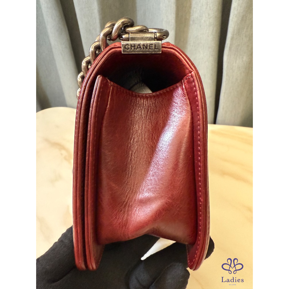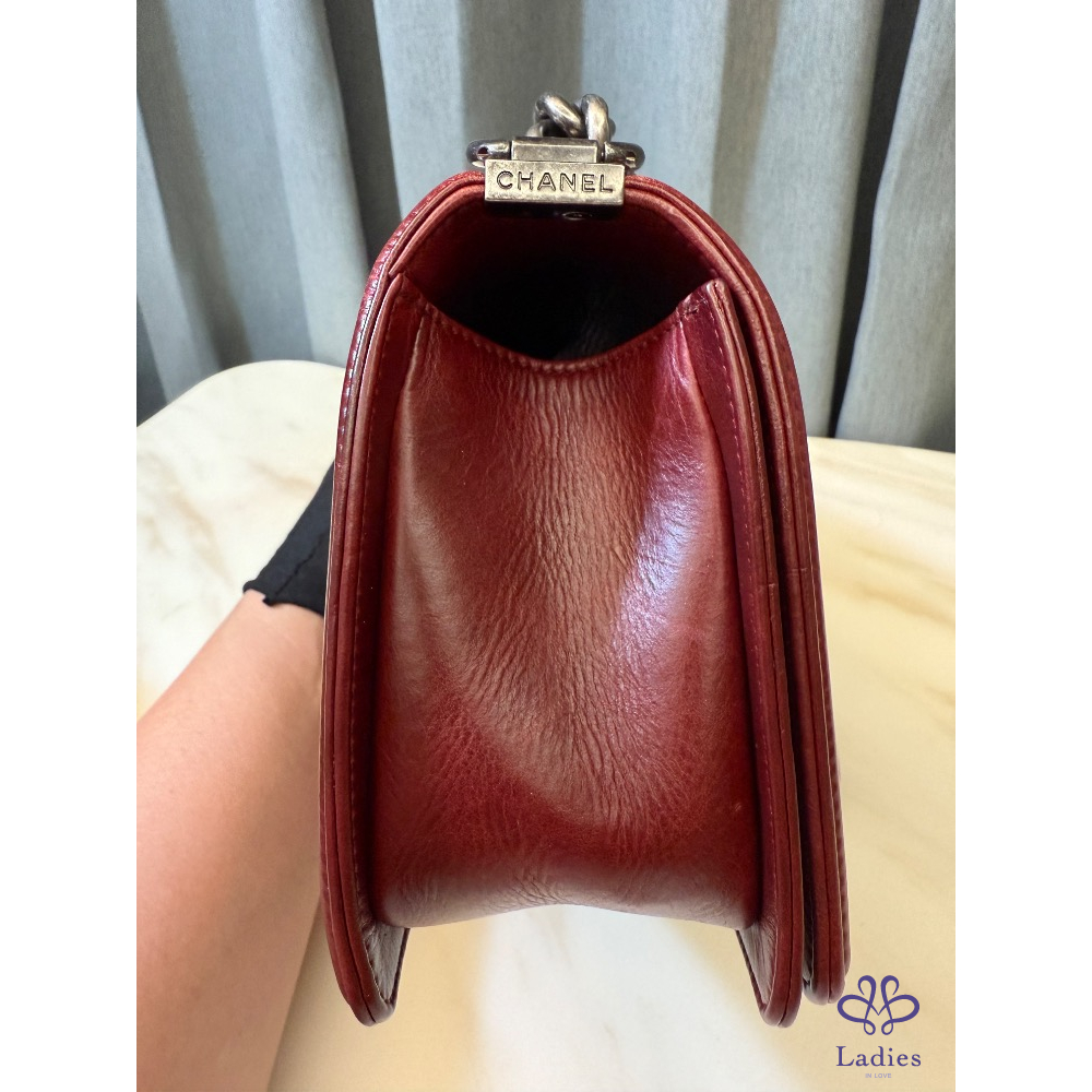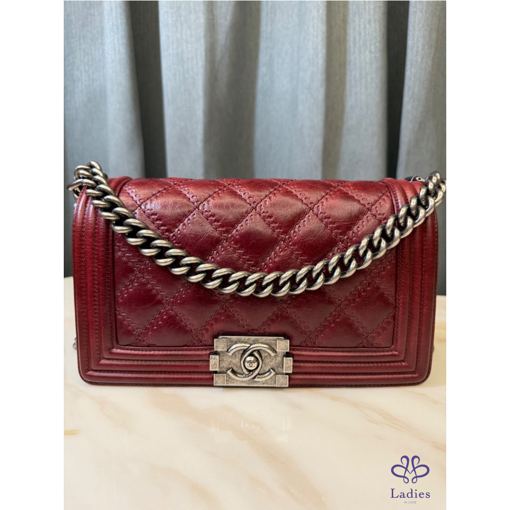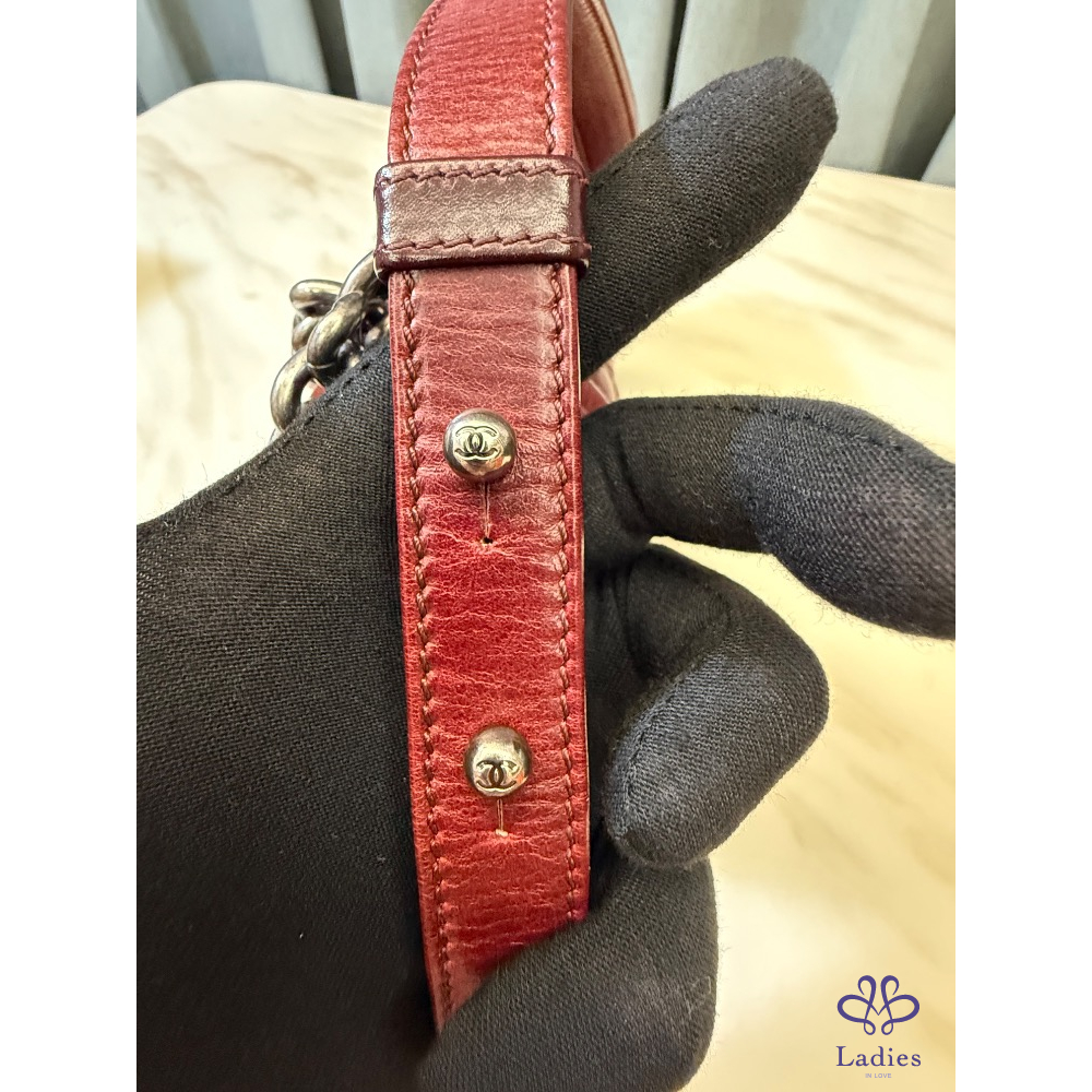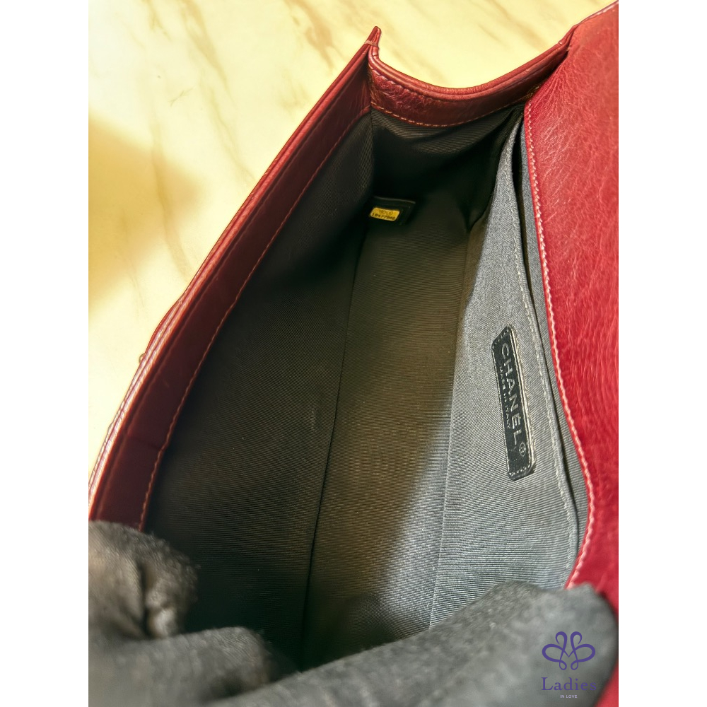 【商品名稱】Chanel香奈兒酒紅色牛皮中號leboy單肩包