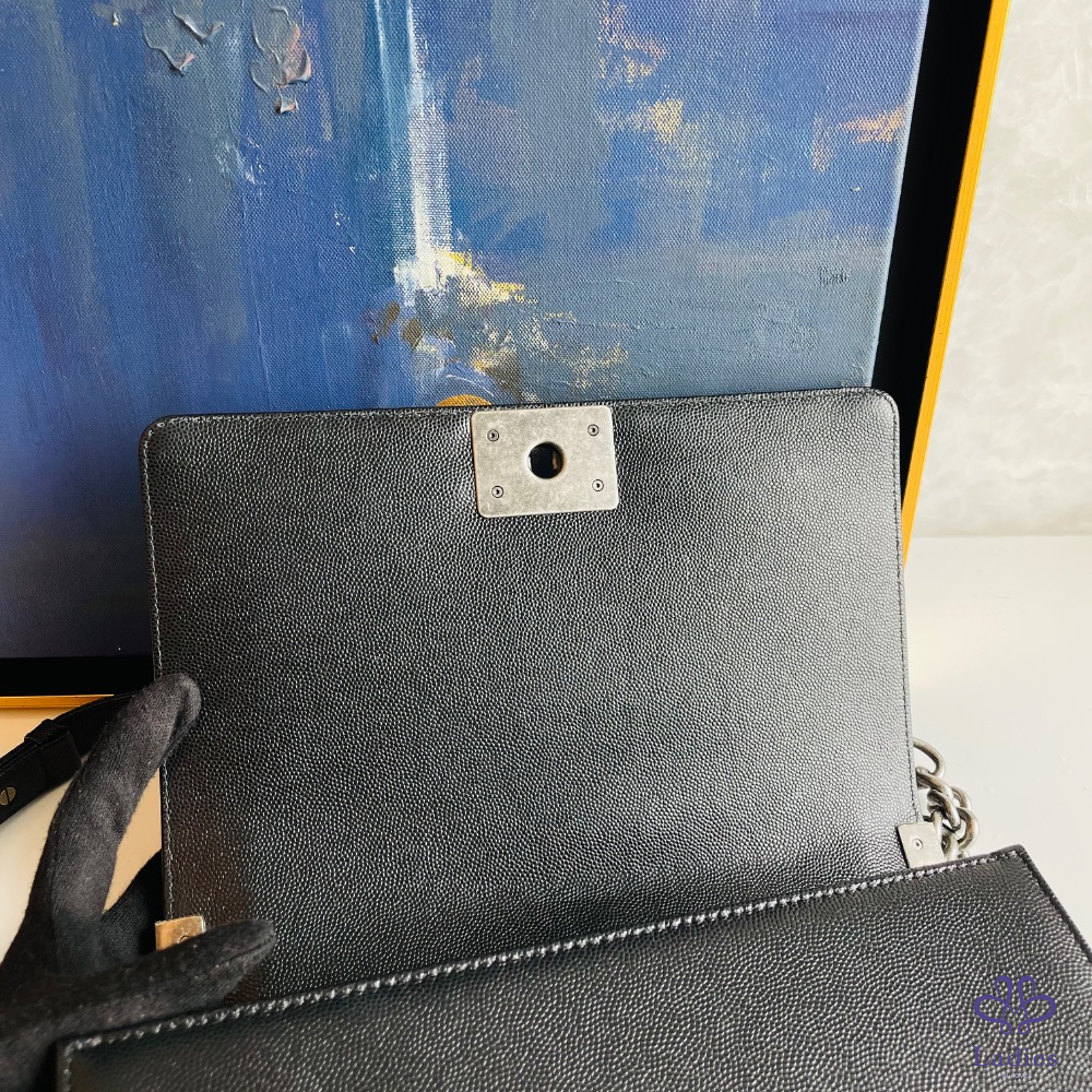 Chanel Boy 25 黑色銀釦 荔枝皮