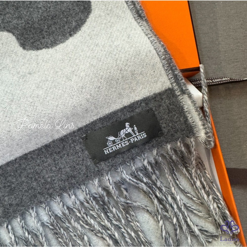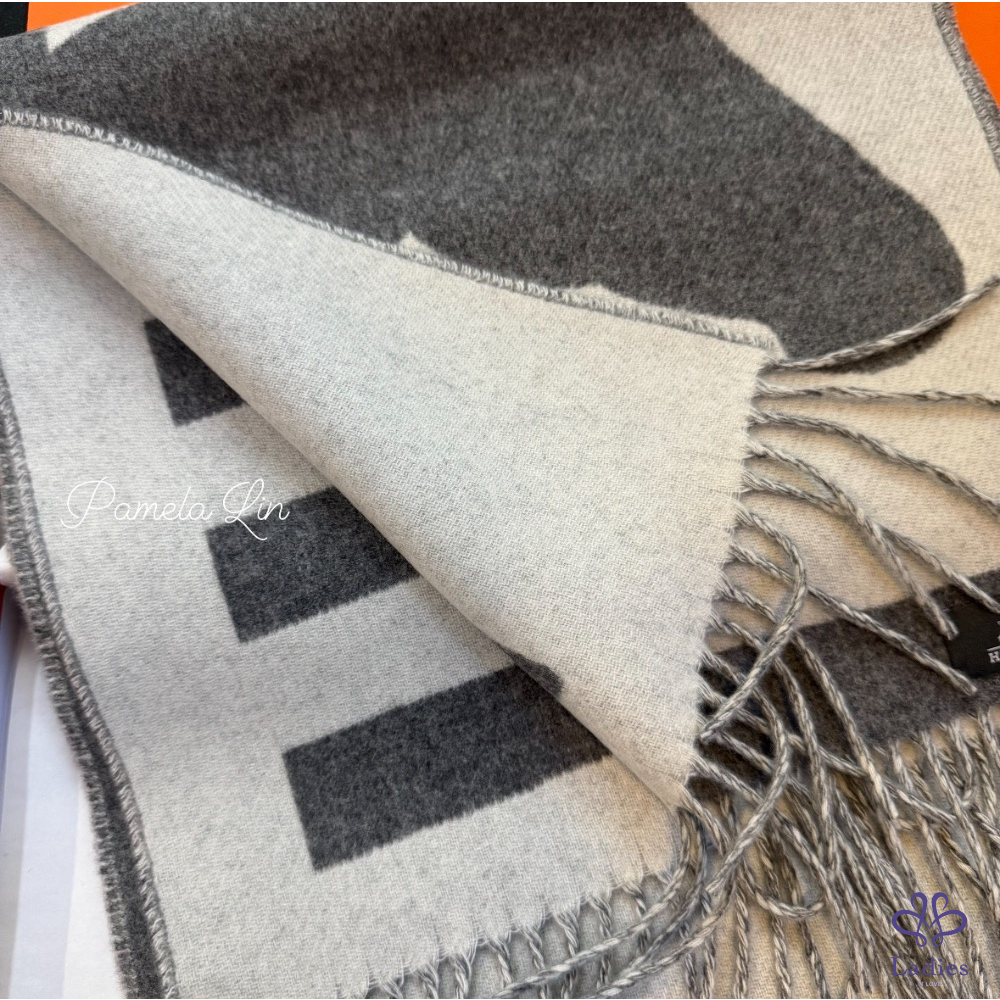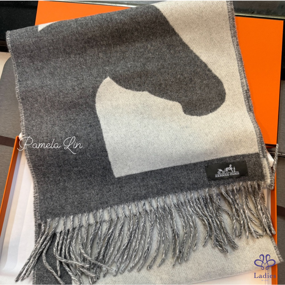 愛馬仕 馬頭羊絨圍巾 100%克什米爾