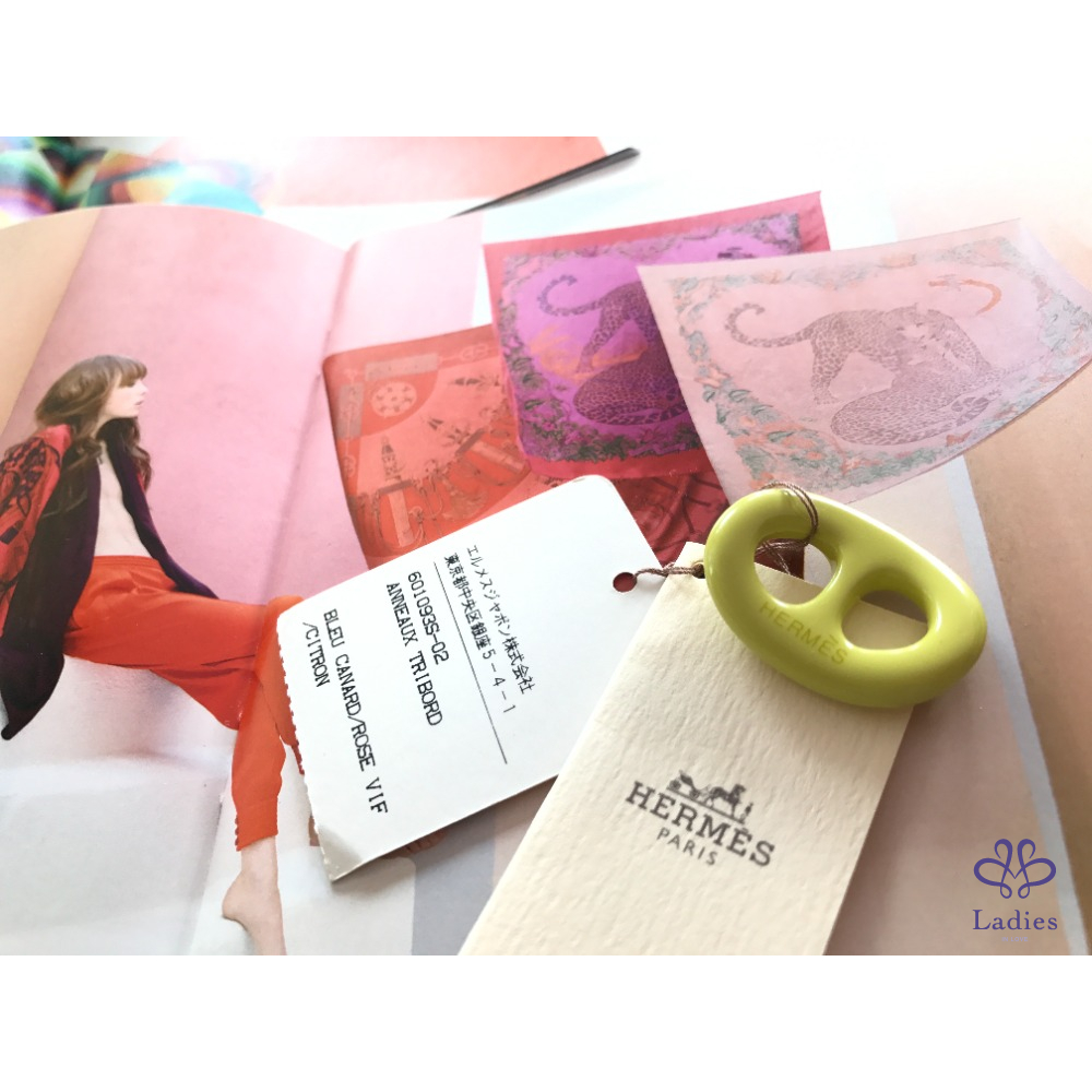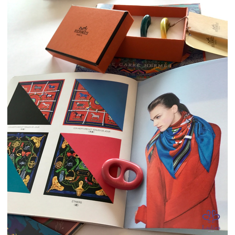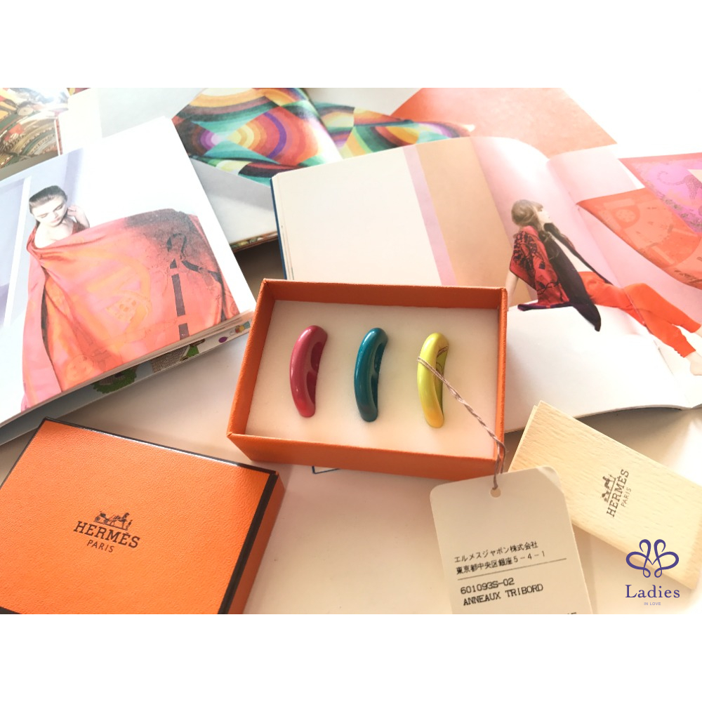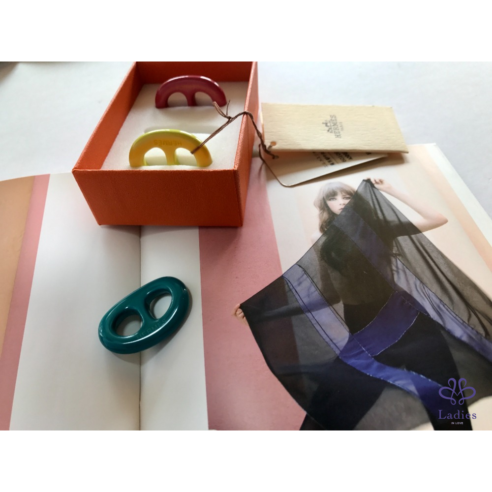 ~HERMES 全新 附原廠盒 三顆橢圓H款式小絲巾環(黃.莫藍迪.桃紅三色)