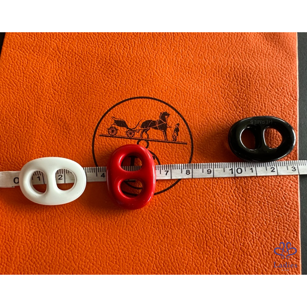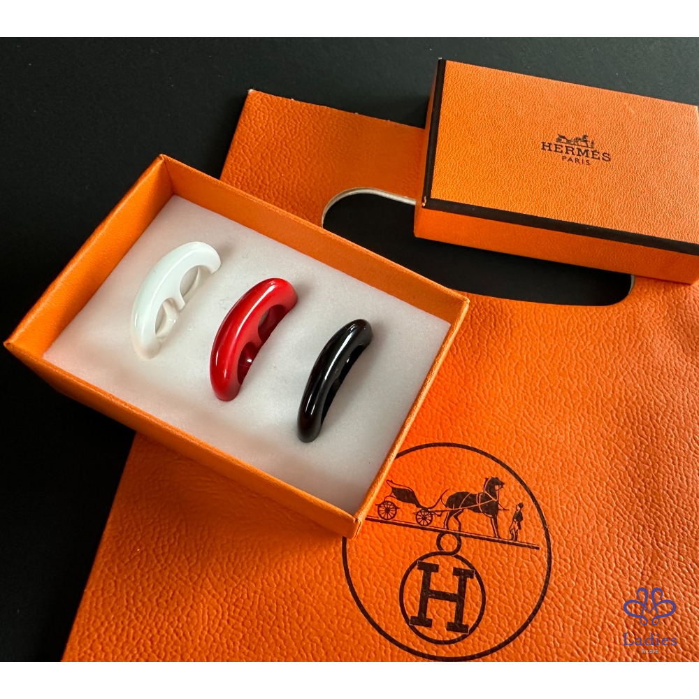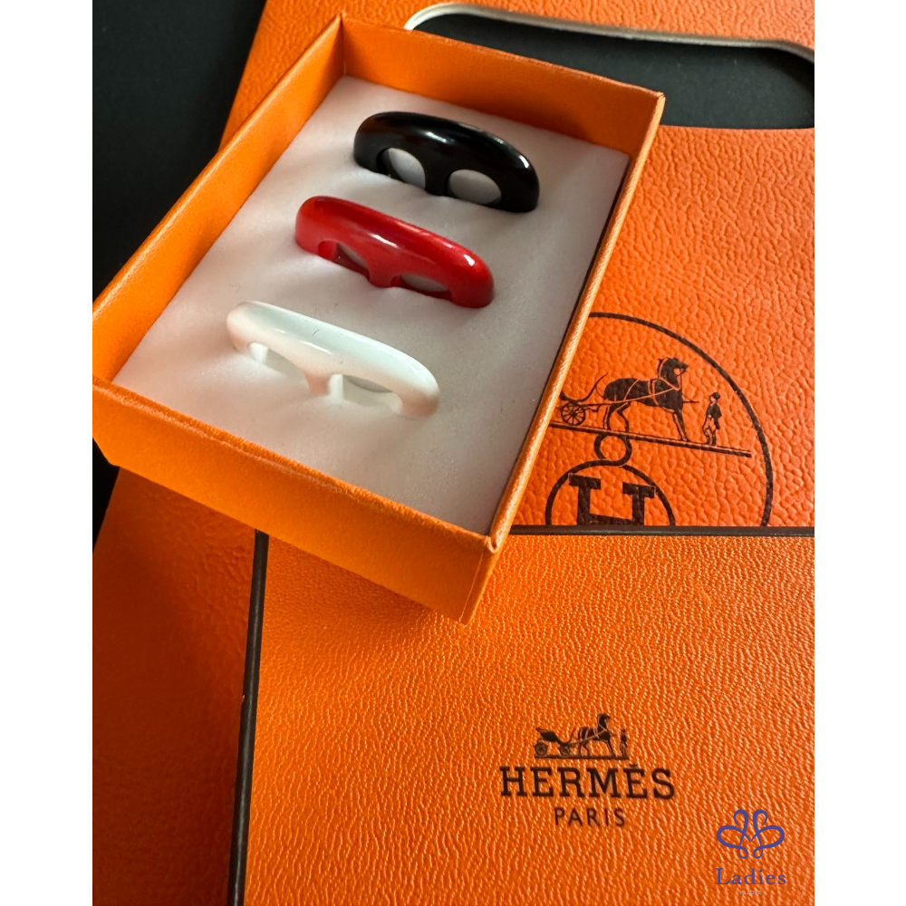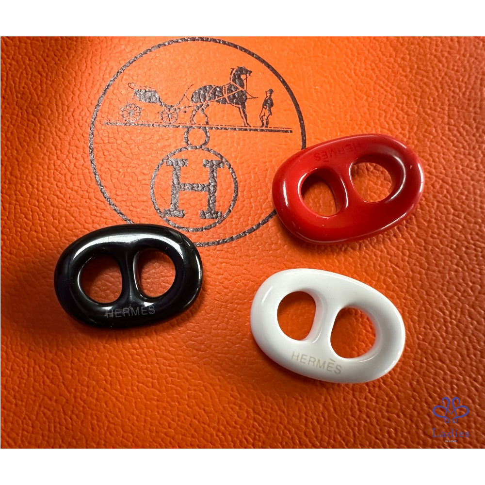 ~HERMES 三顆橢圓H款式小絲巾環(黑.白.紅三色)
