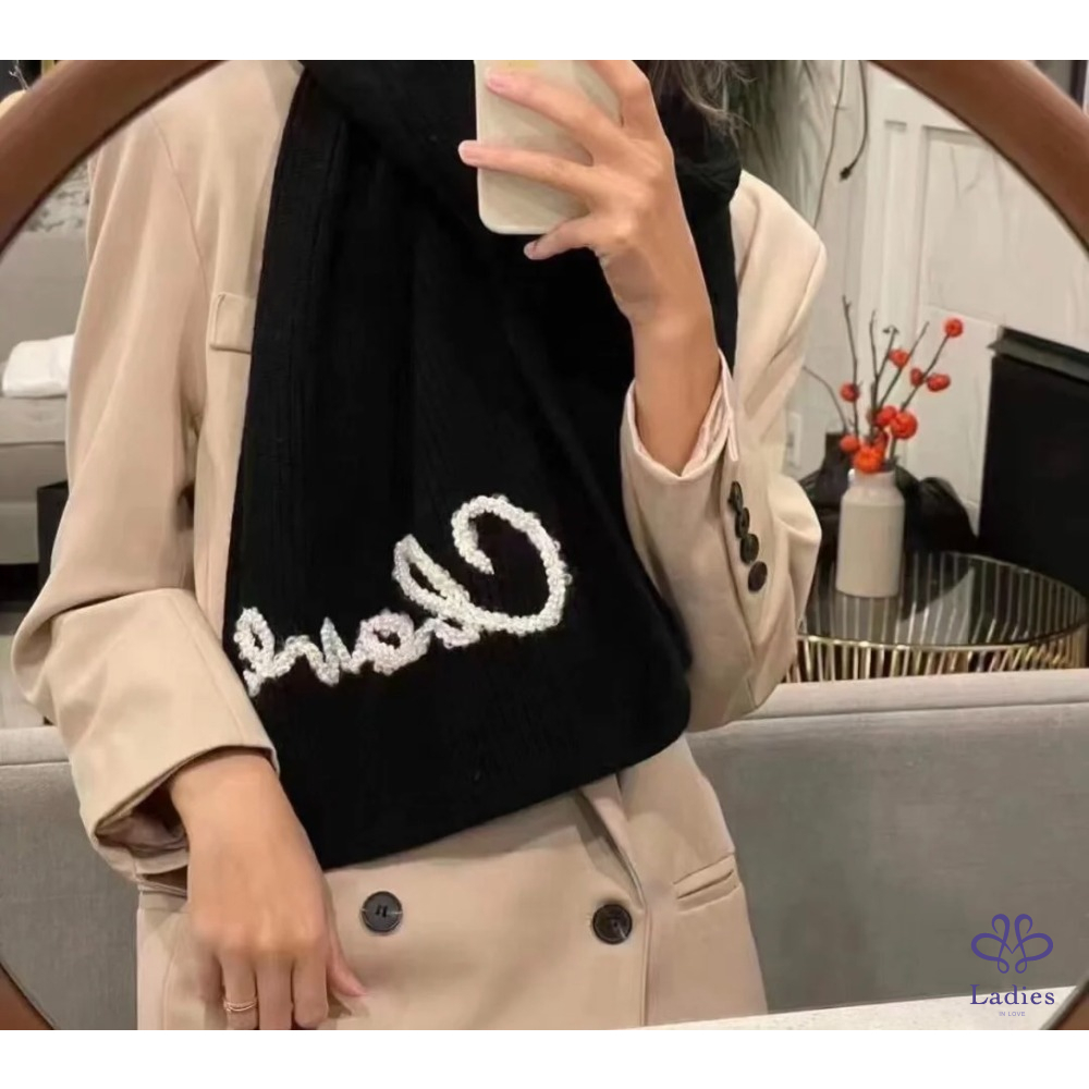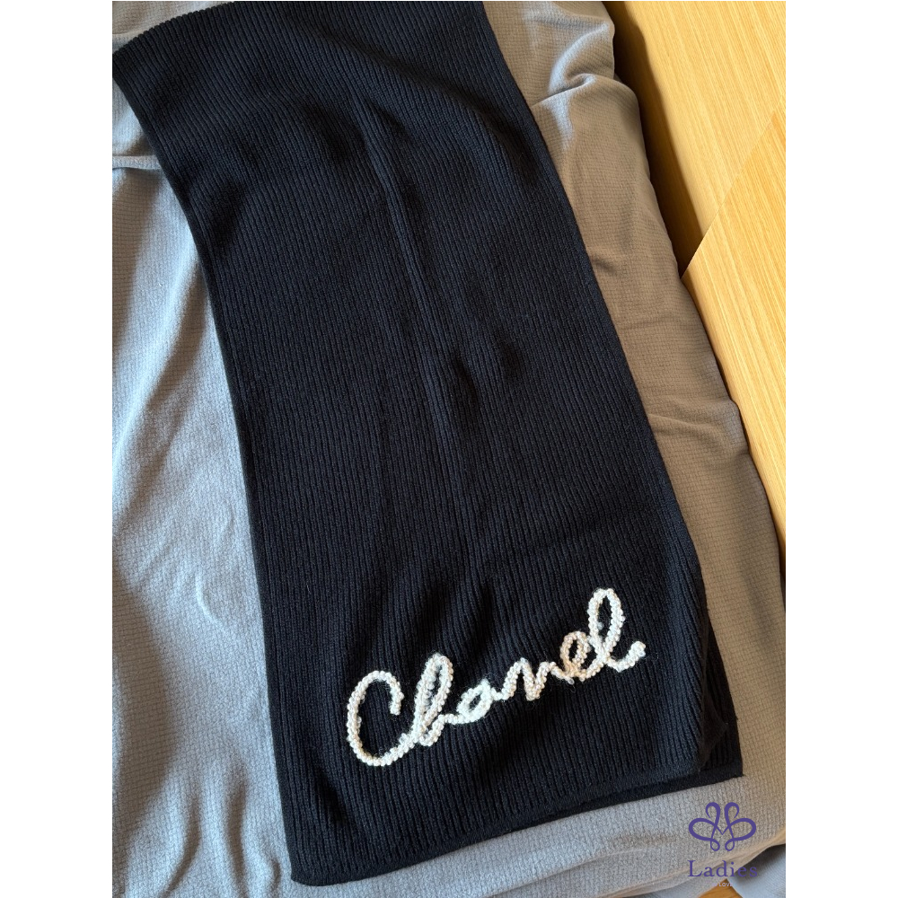 全新 Chanel 黑色 CASHMERE 羊毛 爆款草寫字樣圍巾