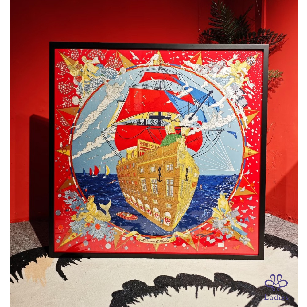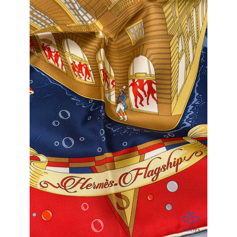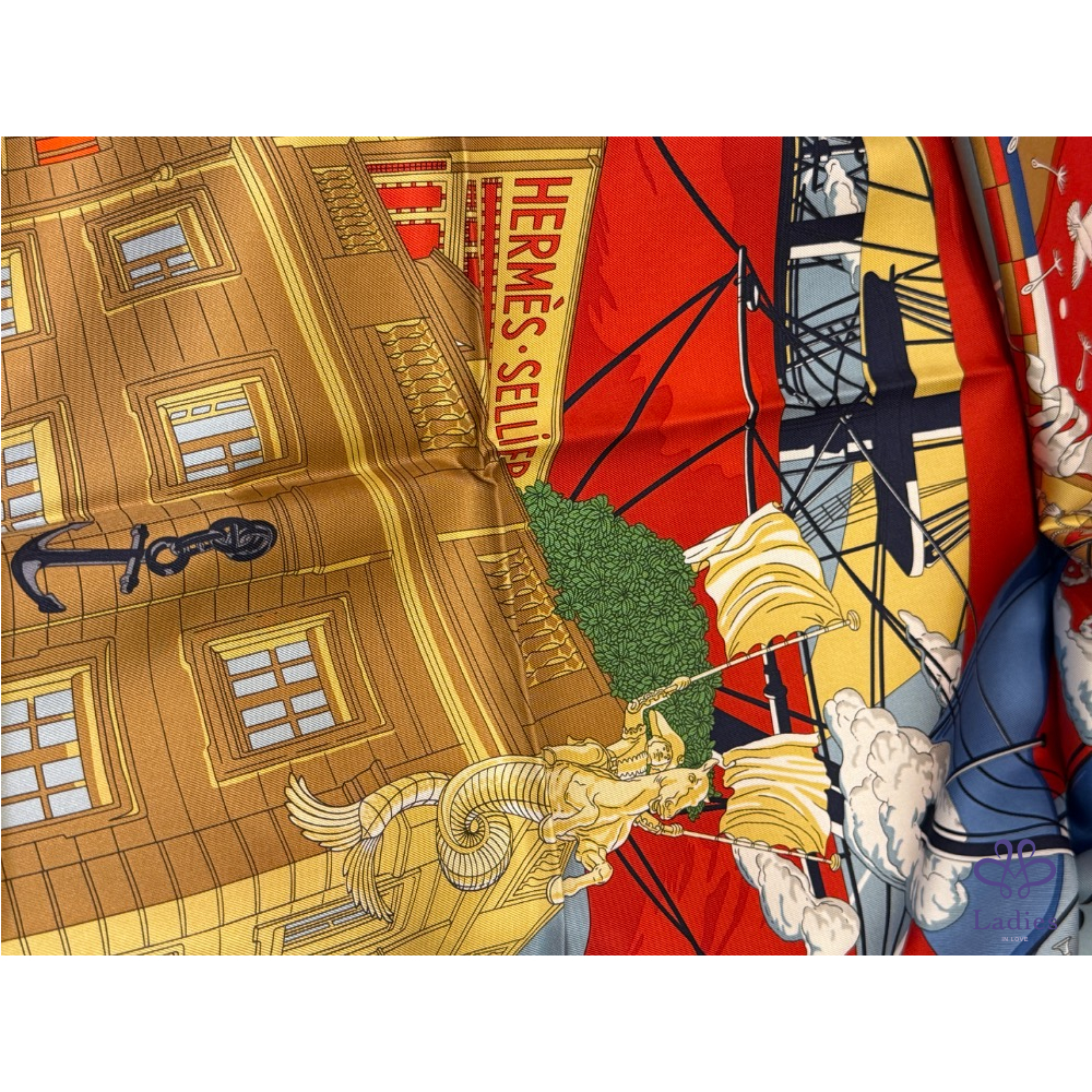 全新全配 Hermes Flagship scarf 90 福寶郵輪 大船入港旗艦店總店 台灣專櫃已絕版 2025/3購證影本
