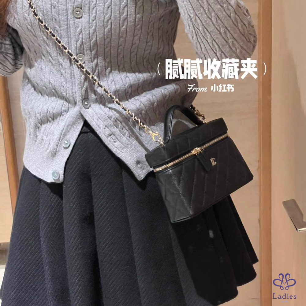 Chanel 香奈兒 25C lp 飯盒包 黑金荔枝皮