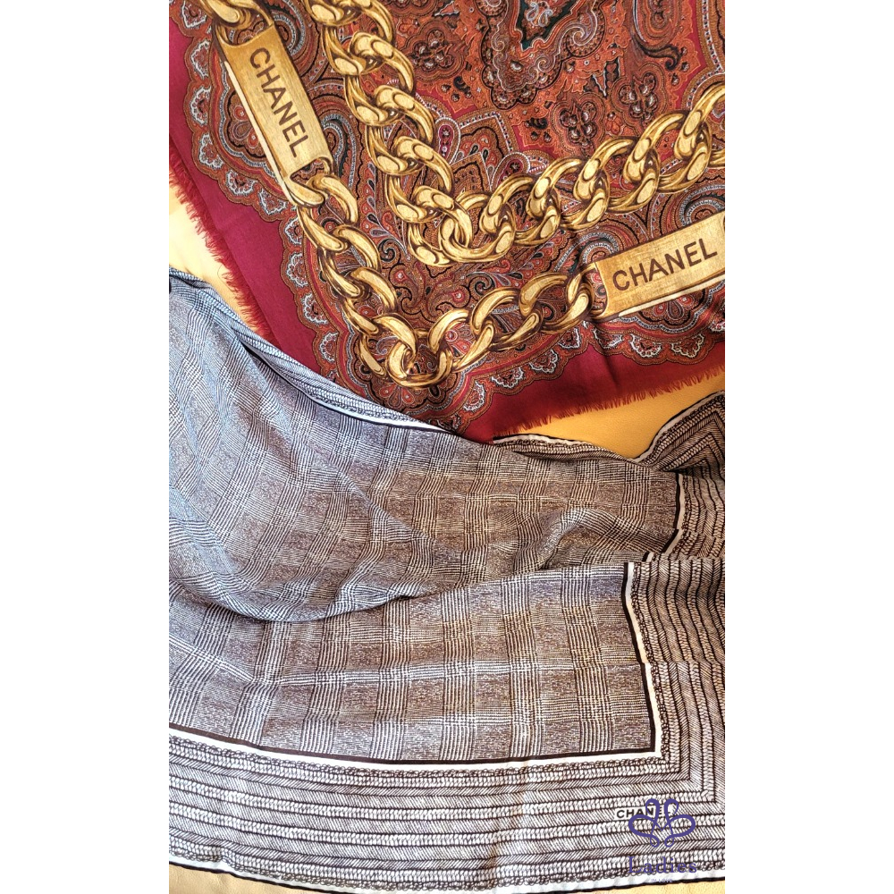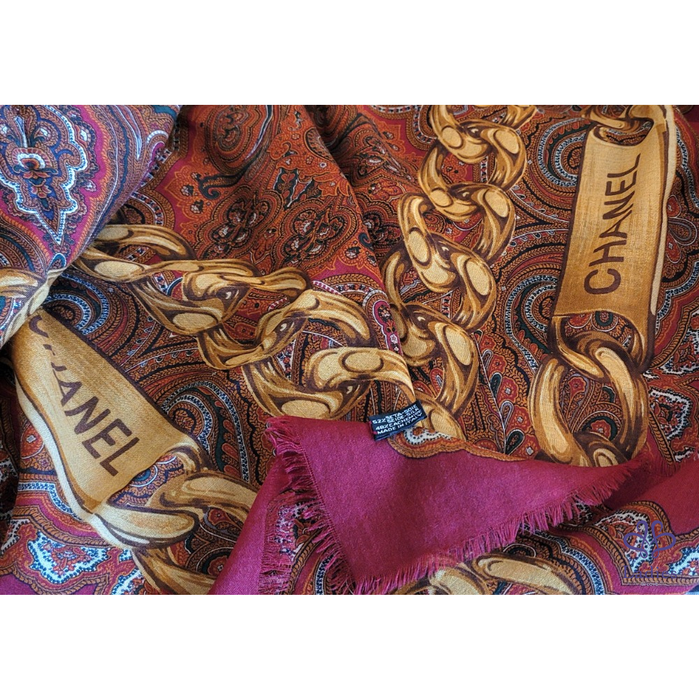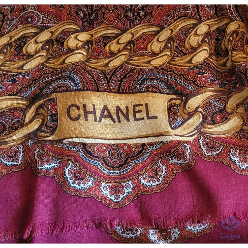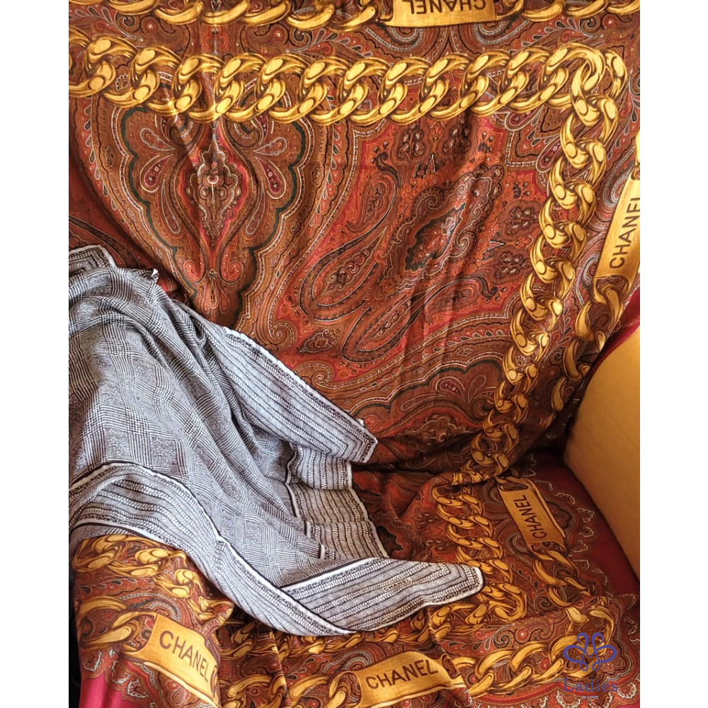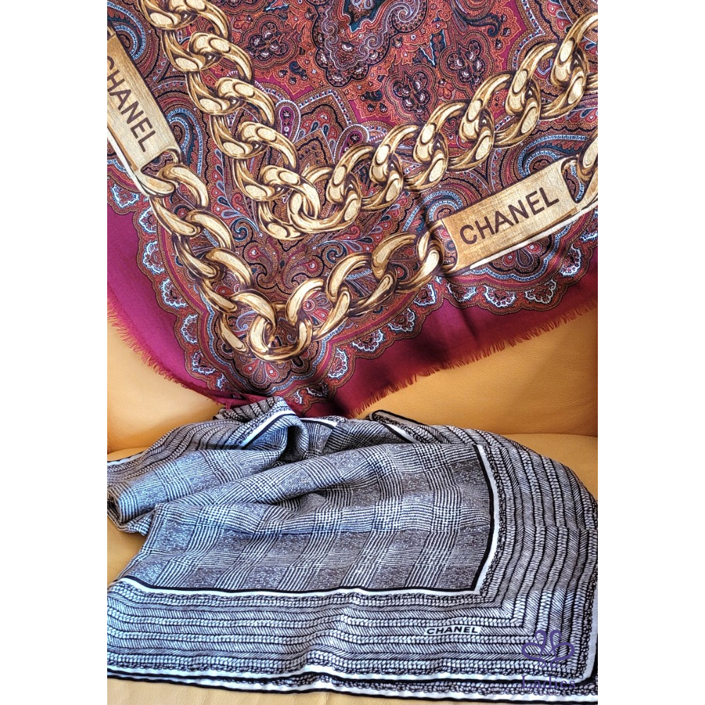 ~CHANEL 金鍊圖案54%SILK 48%CASHMERE 大圍巾135x135cm