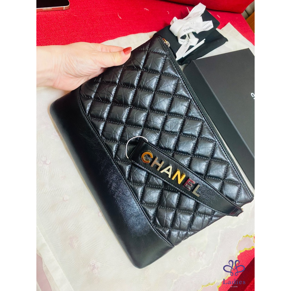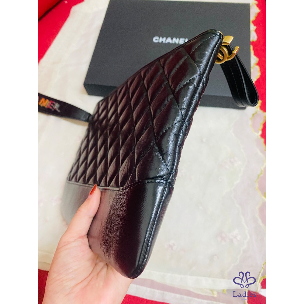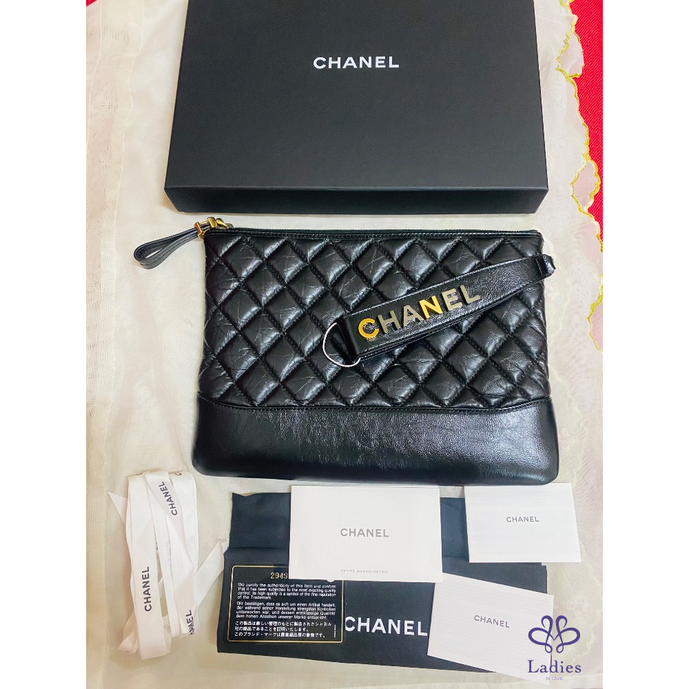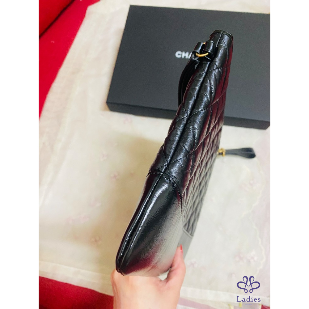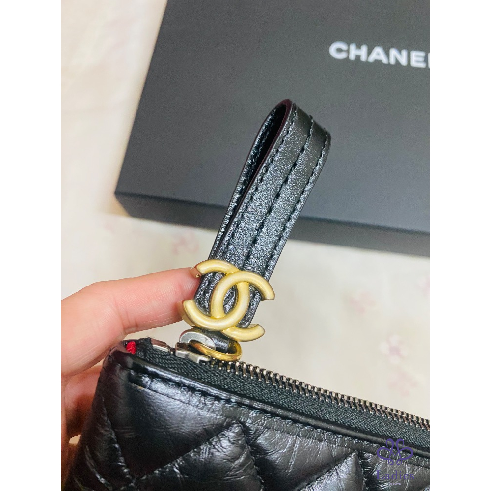 ????商品名稱)Chanel 黑牛皮流浪系列手拿包
