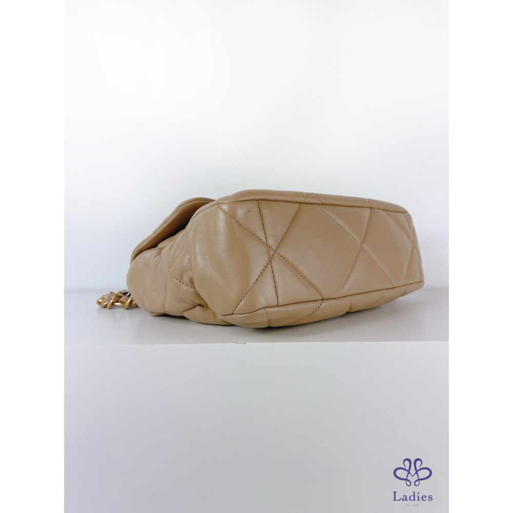 產品信息 -新舊:99新閒置品 🌕🌕🌕🌕🌕 -配件:本店購證/保卡/防塵袋/盒裝/紙袋 -尺寸:30 x 20 x 10 cm -付款方式:轉帳後宅配/拍拍圈第三方鑑定/中租零卡分期、FULA零卡分期/刷卡分期/台中 雙北面交 絕對是高貴溫柔的小公主🥂 乍看下還像一顆法式泡芙 陽光灑落下、驕傲的展現自己的膨潤及驕傲。 配色則是百搭的奶茶米金 整顆溫柔又優雅 經典的皮穿鏈 佐以膨潤的羔羊皮革感 .ᐟ.ᐟ