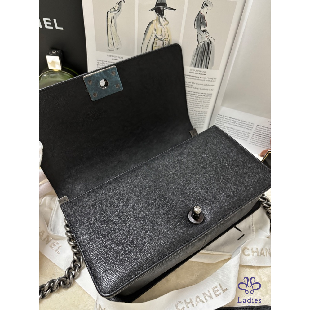 🎀包況敘述:BOY25也是女人夢想包款之一,經典大天菜🤩😊整體包況還保存的很好喔☺️整體就是美😍包身硬挺❤四角無磨損、部分膠膜還在👌內裡大致上乾淨☺️超有質感的菠蘿釦五金😍厚實有質感的紋路牛皮、搭上黑色復古銀扣配色、實品非常美🥰氣場十足!可甜可鹹的一款,男女背都帥氣有型😎這顆背出門絕對吸睛😍當然購入價就比一般經典款BOY25高很多喔!#專櫃目前類似款售價近30萬了嘿😌絕版天菜很值得收藏及擁有🥰卡袋盒全配包況佳🎉包包上架前都有經過專業鑑定、並附上專櫃連線查碼證明、永久保真👌請安心購買❤️喜歡的帥帥美人別就猶豫了😆香奈兒每年都在漲價😱 目前經典款BOY25漲幅來到241100啦😮💨限量款的價位更高😬重點是一包難求啦😵💫識貨的姐妹都知道年份只是參考、包況才是重點👍聰明的姐妹超甜價帶回家❤️版娘甜甜大放送分享給喜歡的姐妹,幾成新每個人認知不同,照片實品實拍,請擴大照片看清楚,二手商品屬個人物品、售出不退喔🈲~😄需要補拍的地方歡迎詢問,照片很多請帥哥美女慢慢欣賞