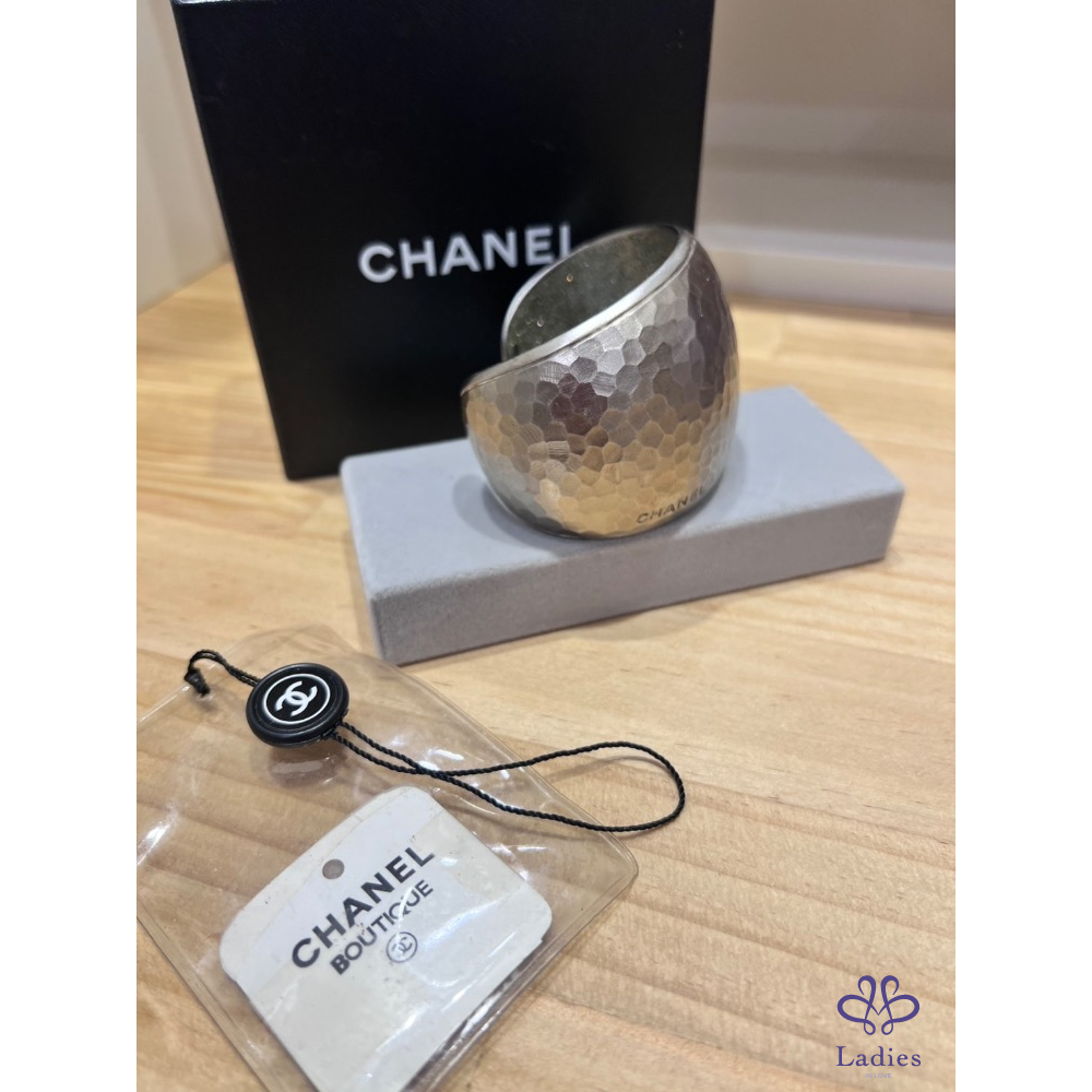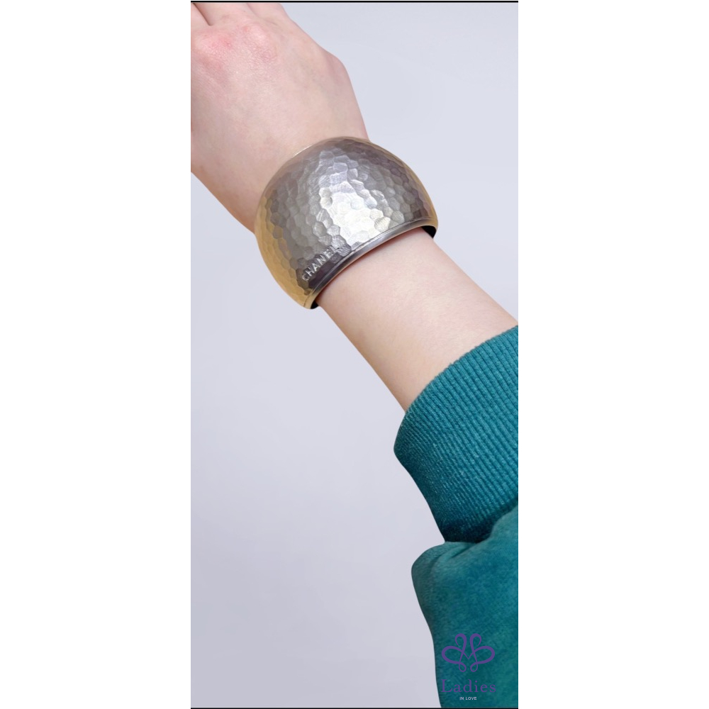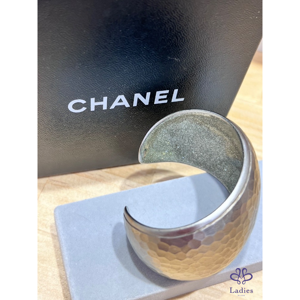 經典 Chanel T cuff 設計,金屬錘紋質感低調有型,已絕版收藏款,保存完整。
