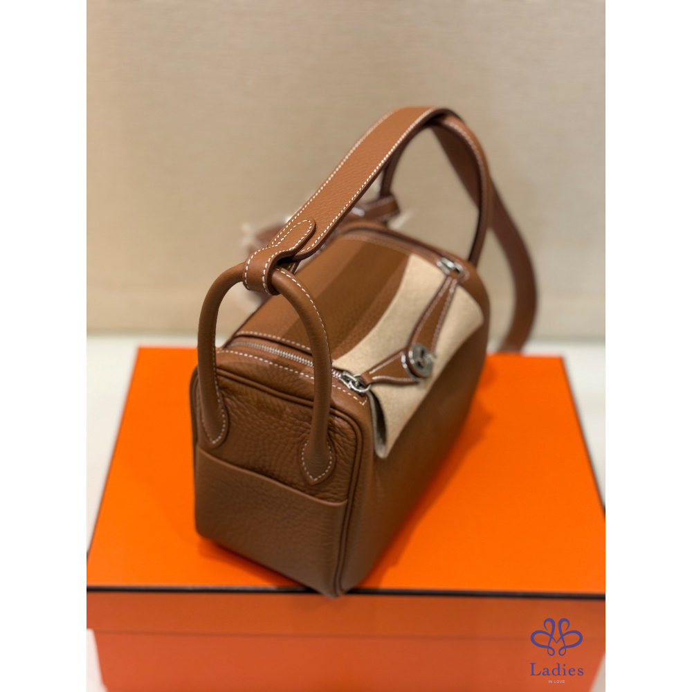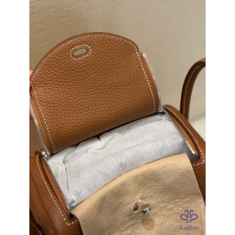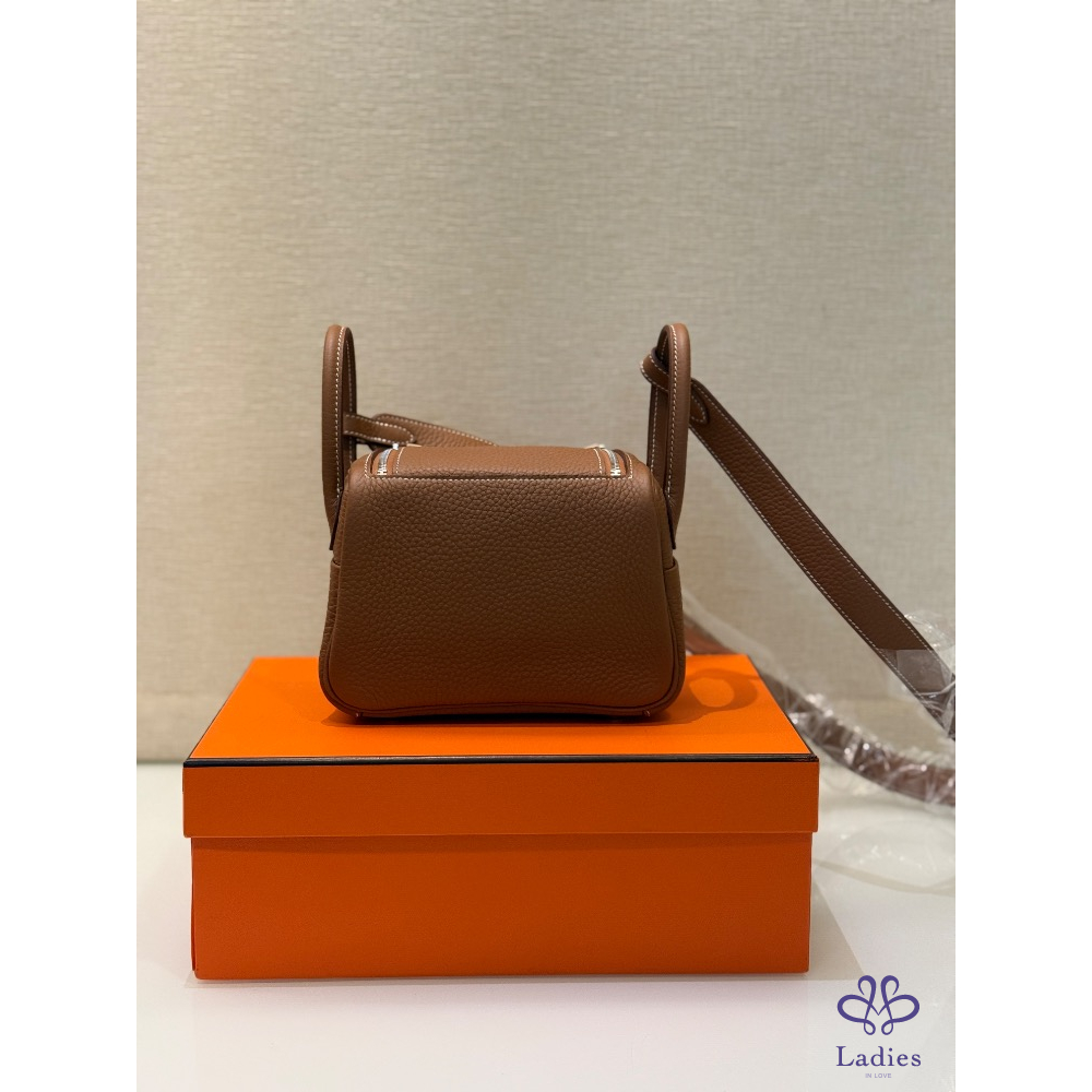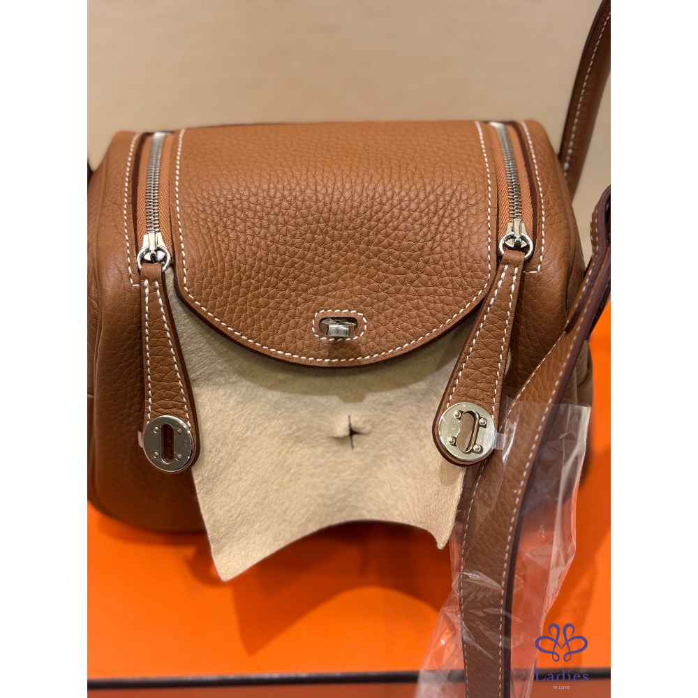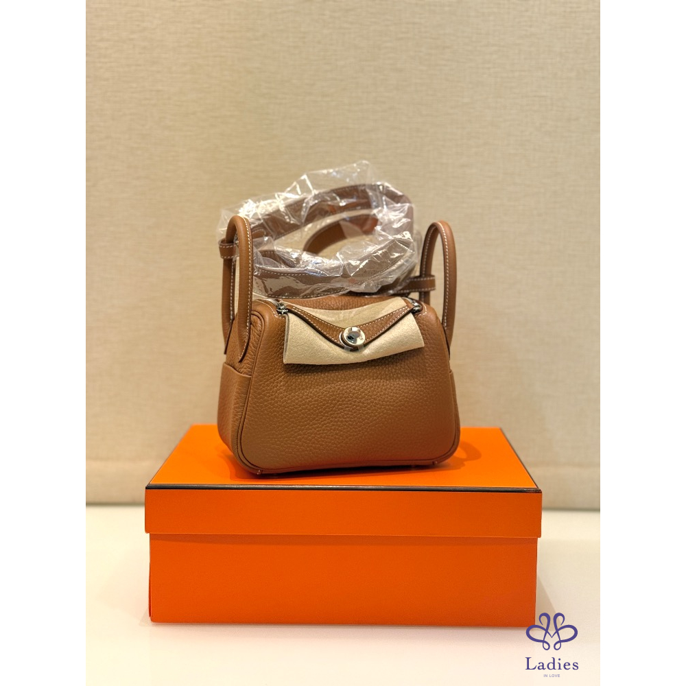 全新全配 Hermes Mini Lindy 金棕銀釦 二代短背帶 2025/3 K 最新刻印 購證正本