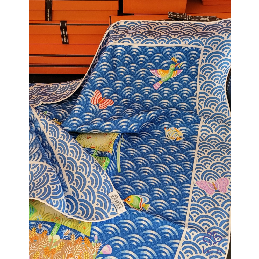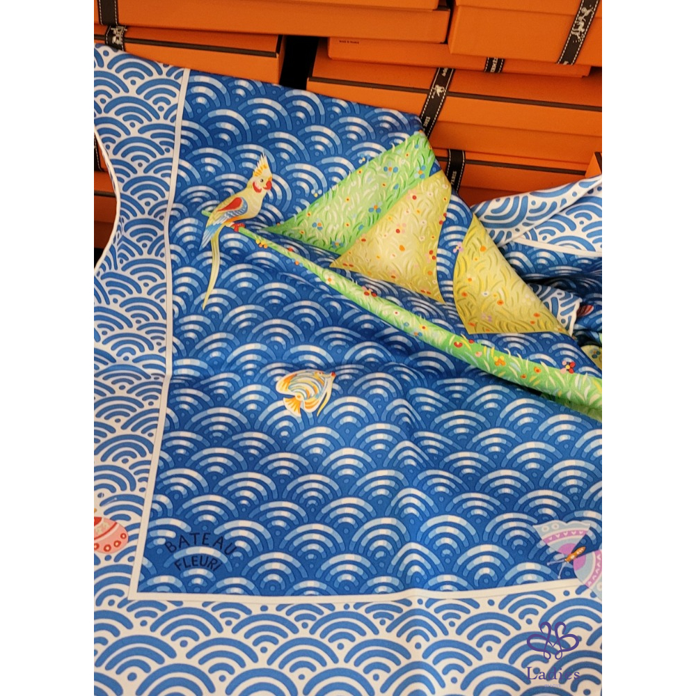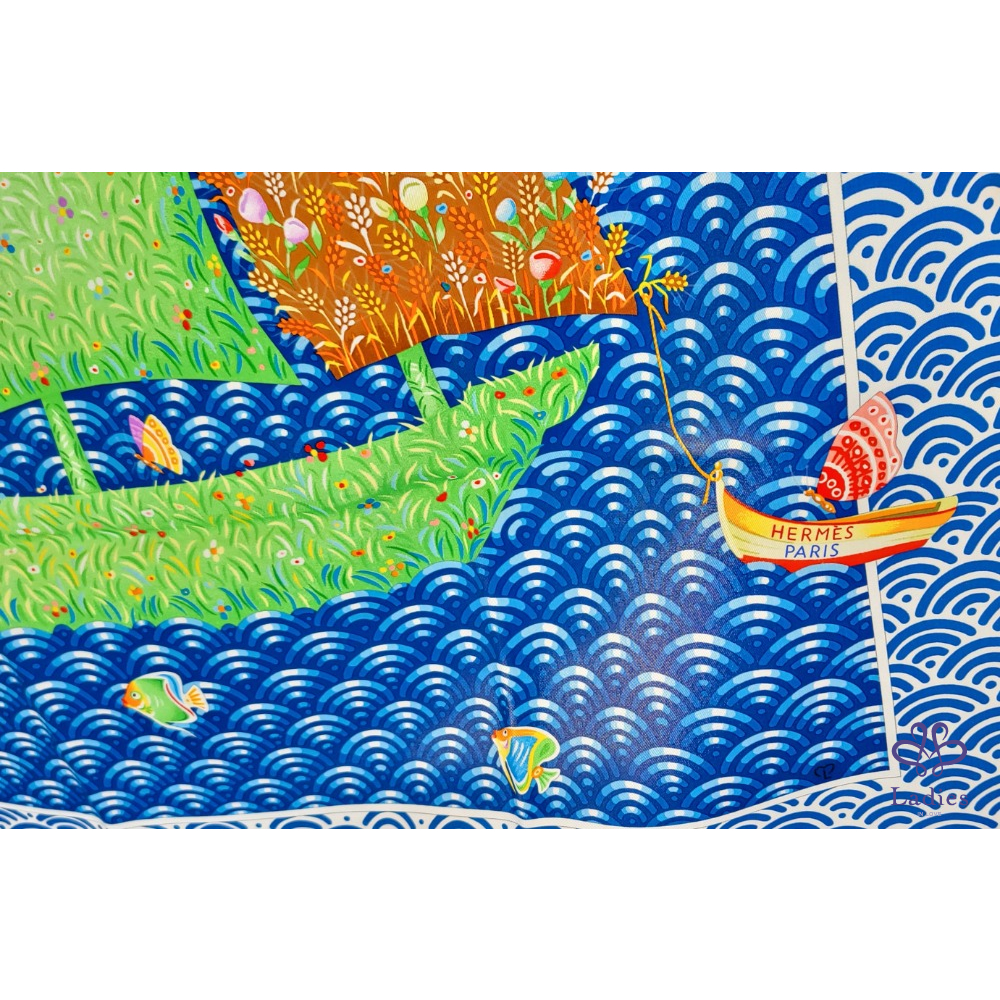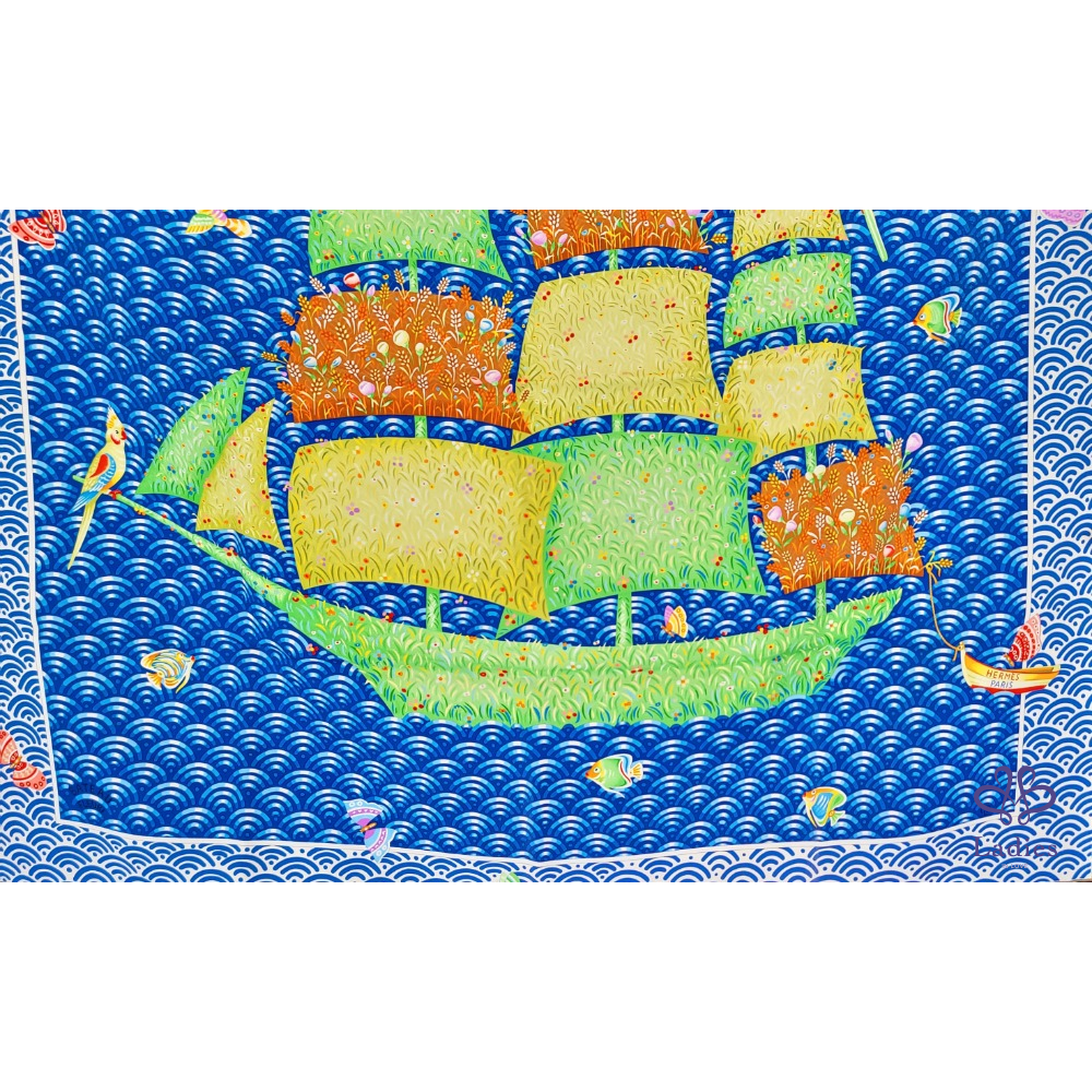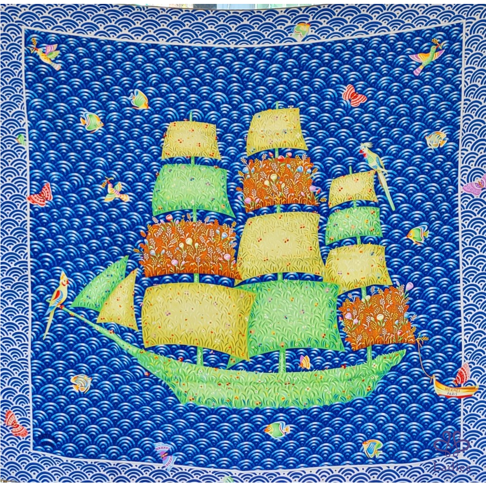 ~HERMES 附原廠盒 未使用品 100% SILK 絲巾~一帆風順