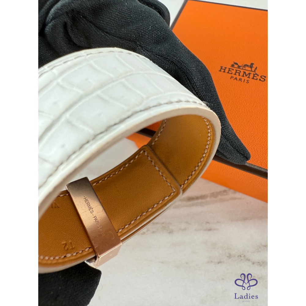 高級經典CDC24手環,使用鱷魚皮革設計更加高貴典雅,展現出極致的工藝與質感。手環不僅是一件時尚配件,也是品牌奢華與精緻工藝的象徵