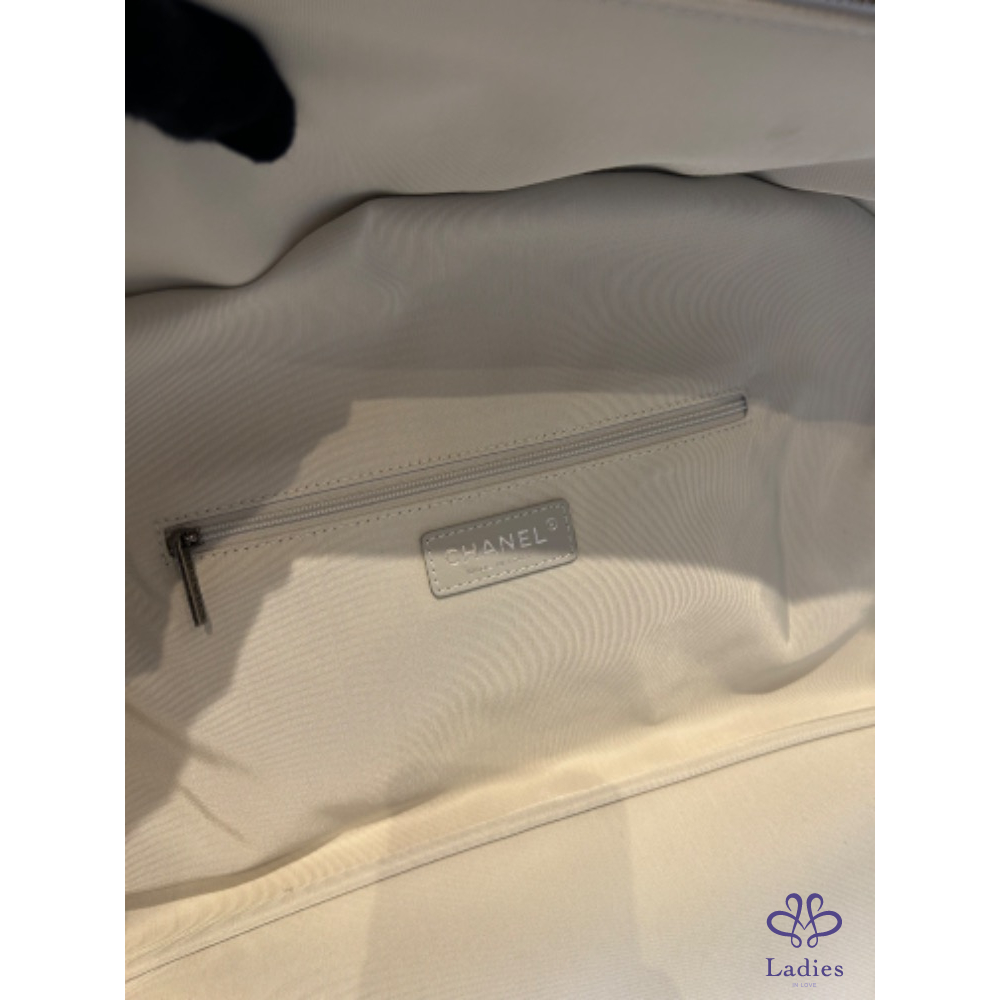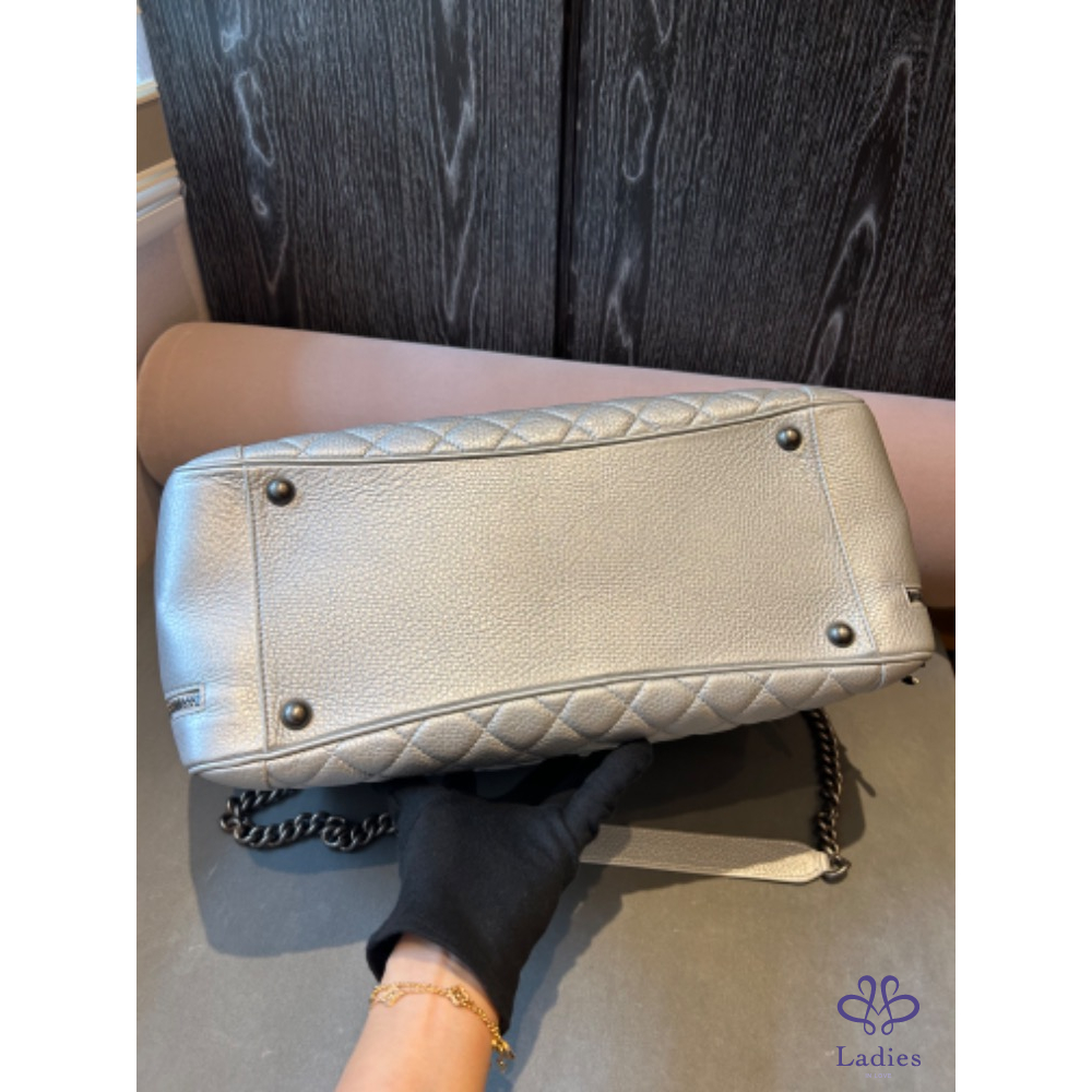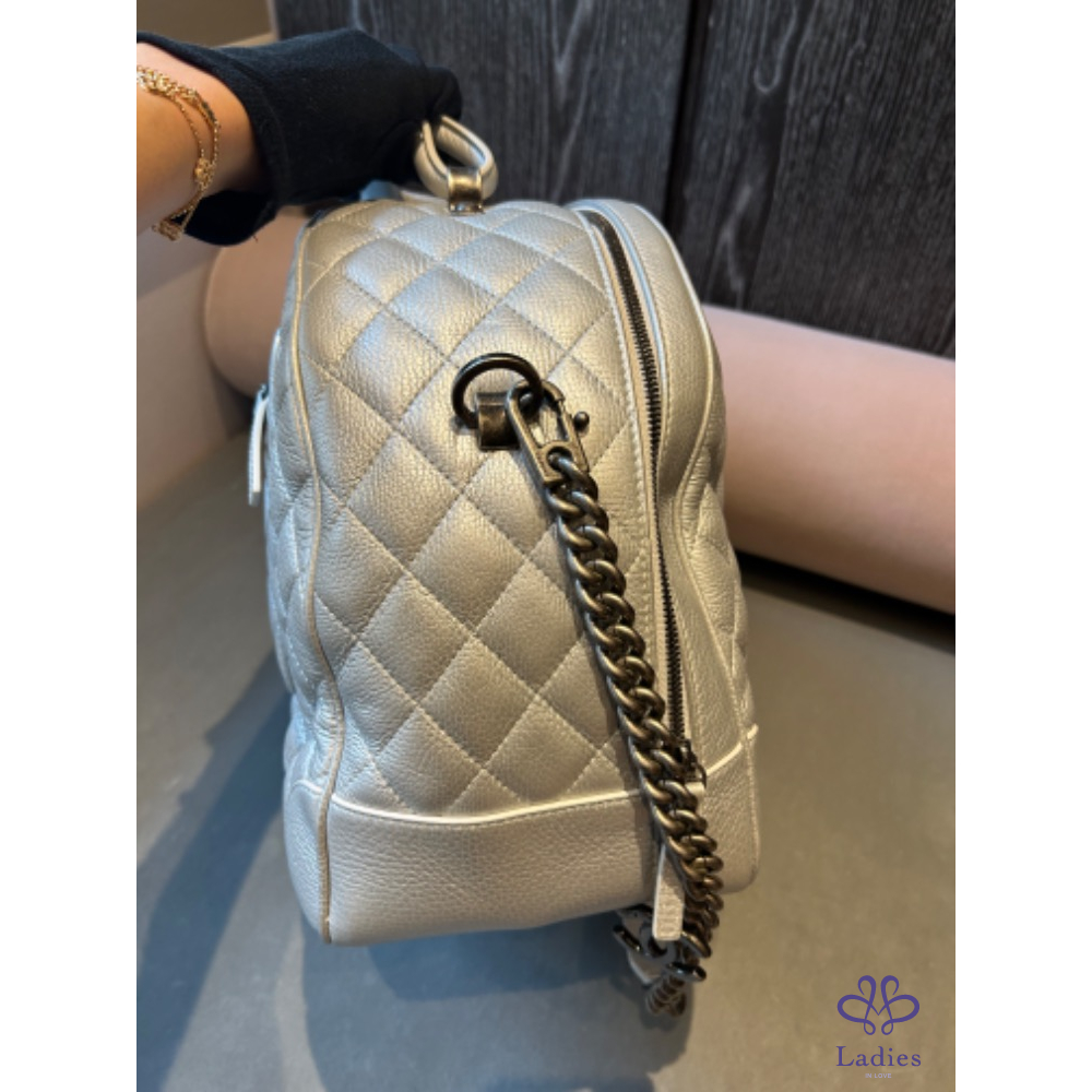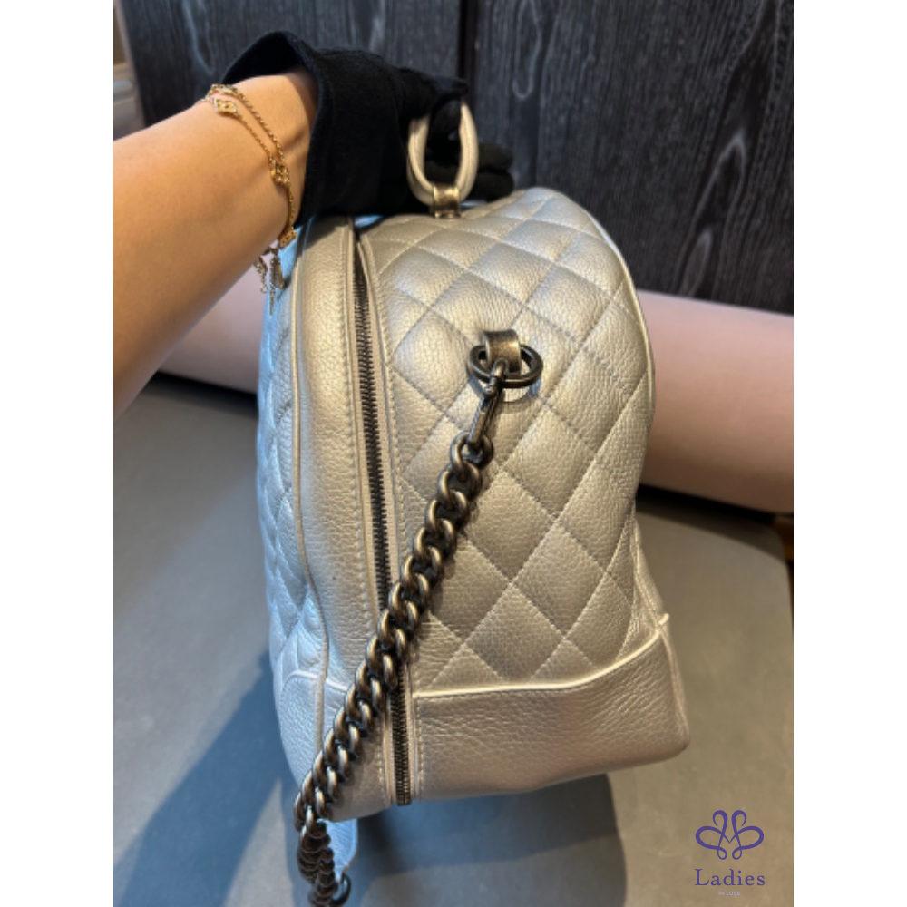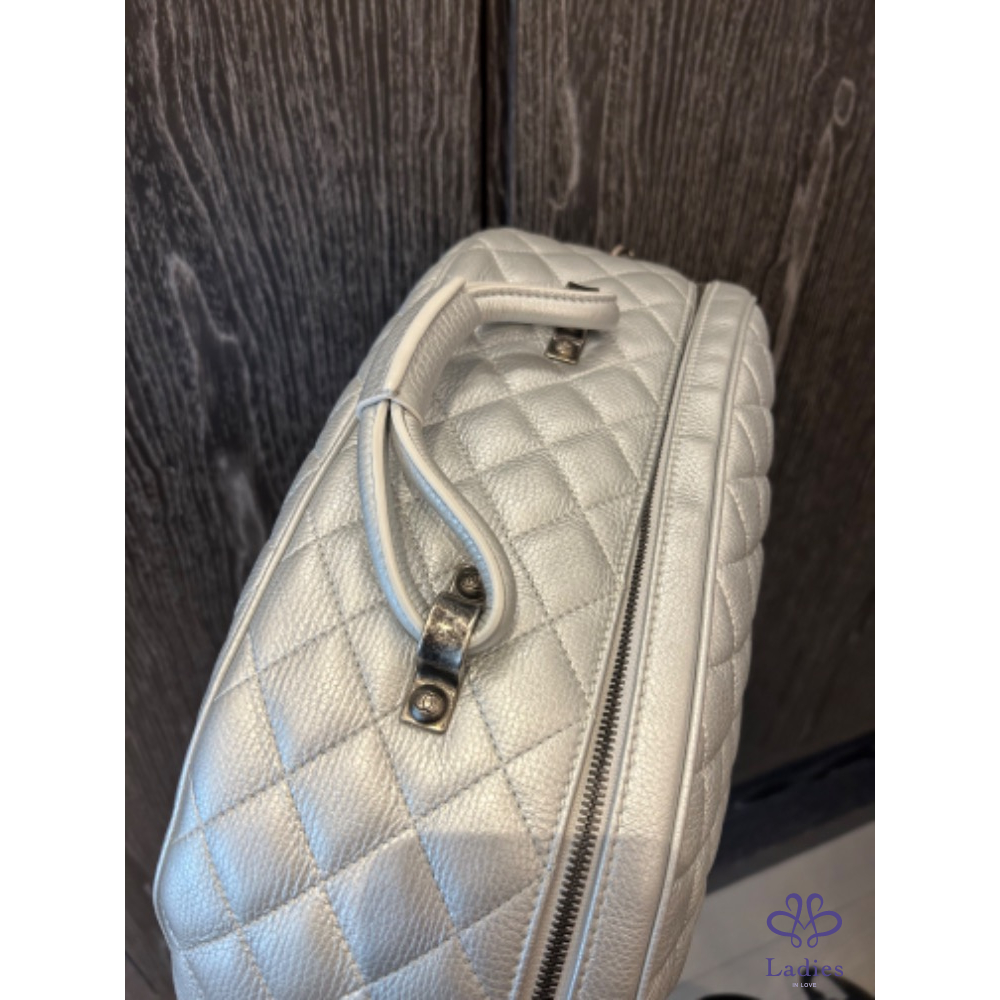 售chanel機場包。銀色荔枝皮,出國必備的旅行包。容量很夠,可以手提肩背,背面可掛在行李箱上,非常時尚好用的機場系列美包。使用過二、三次,9.5新。非常稀有的包款