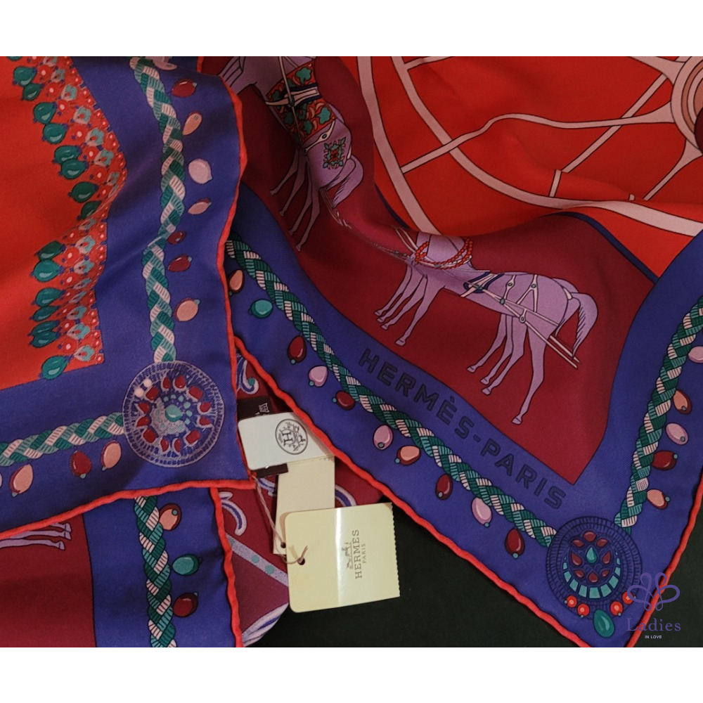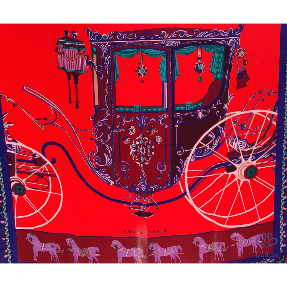 ~HERMES 附原廠盒 全新 100% SILK 絲巾~古典喜慶馬車