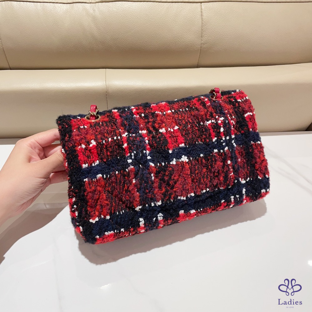 Chanel 23B CF25 紅色毛呢 晶片款