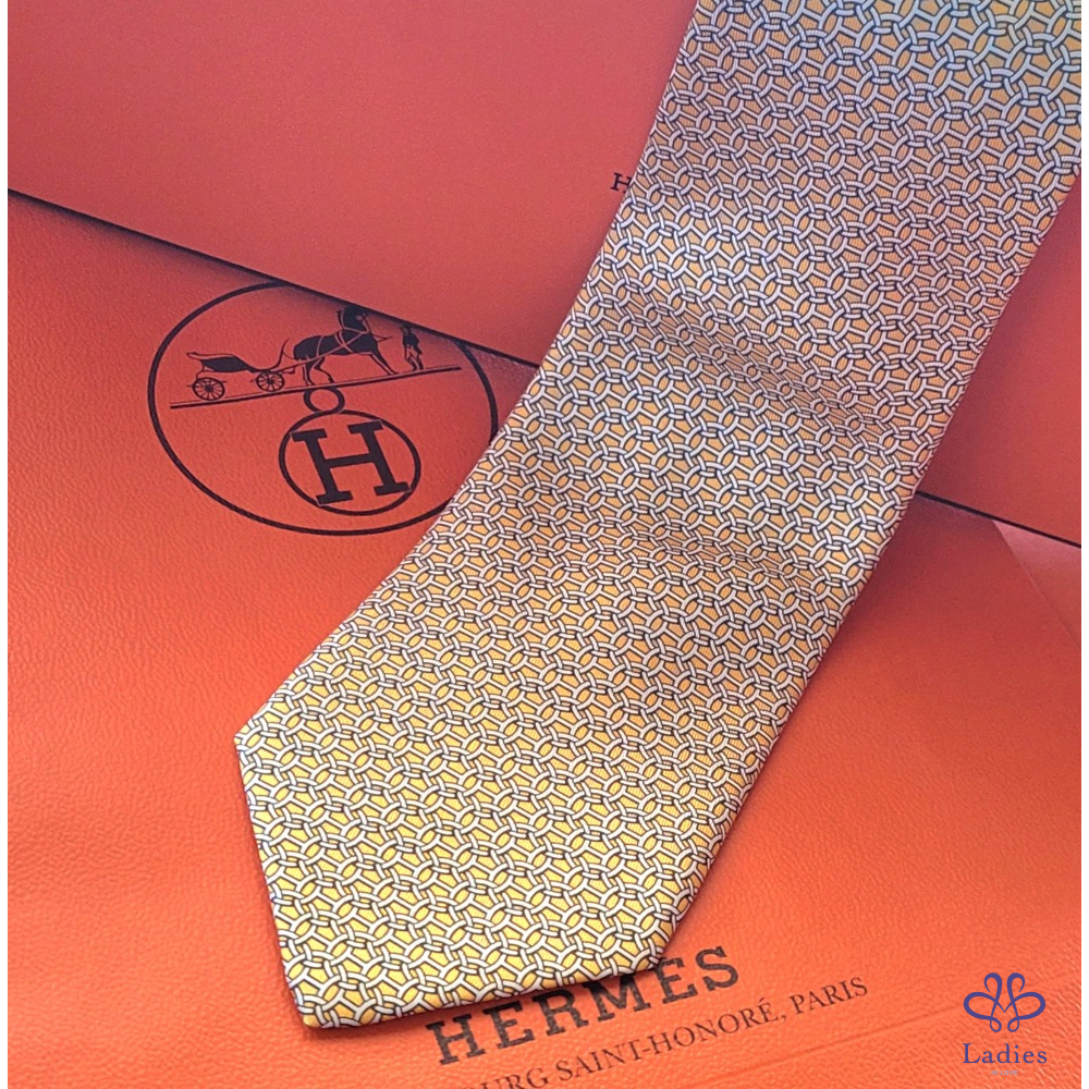 ~HERMES 附原廠 未使用品 圓圈H圖案 領帶