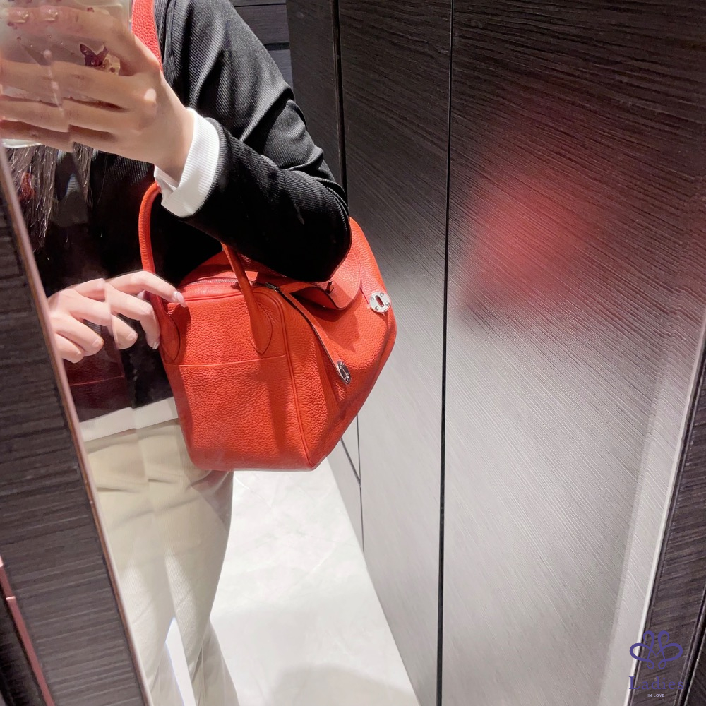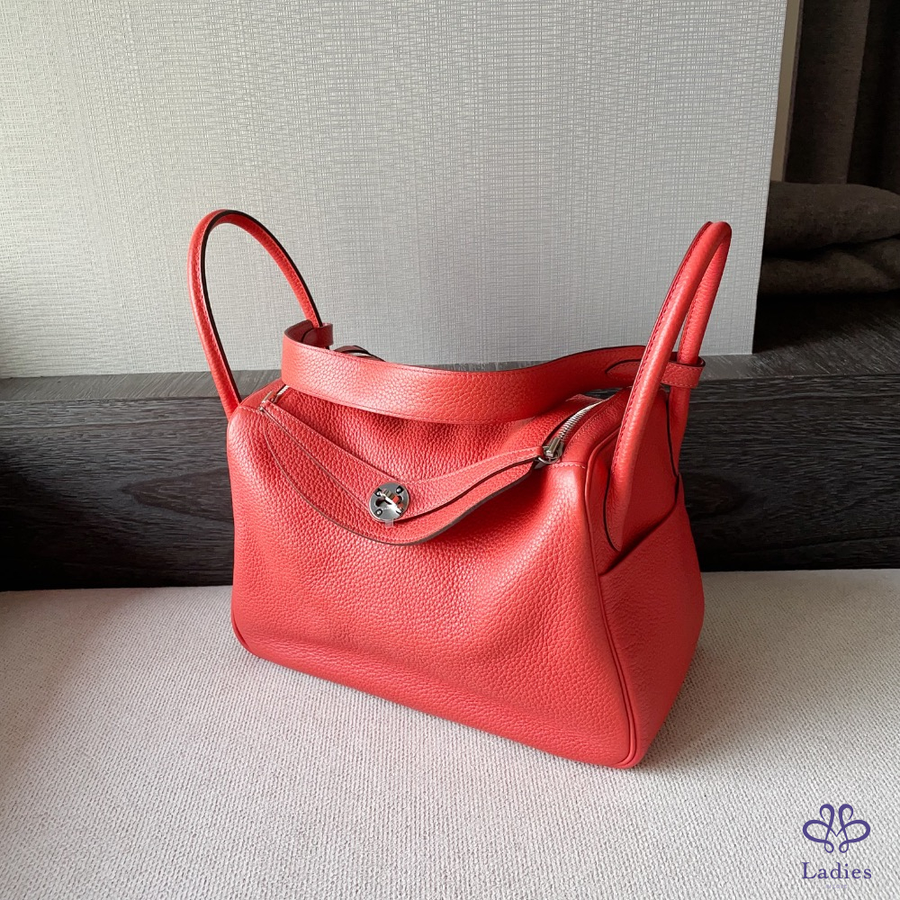 Hermès Lindy 30 牡丹紅銀釦