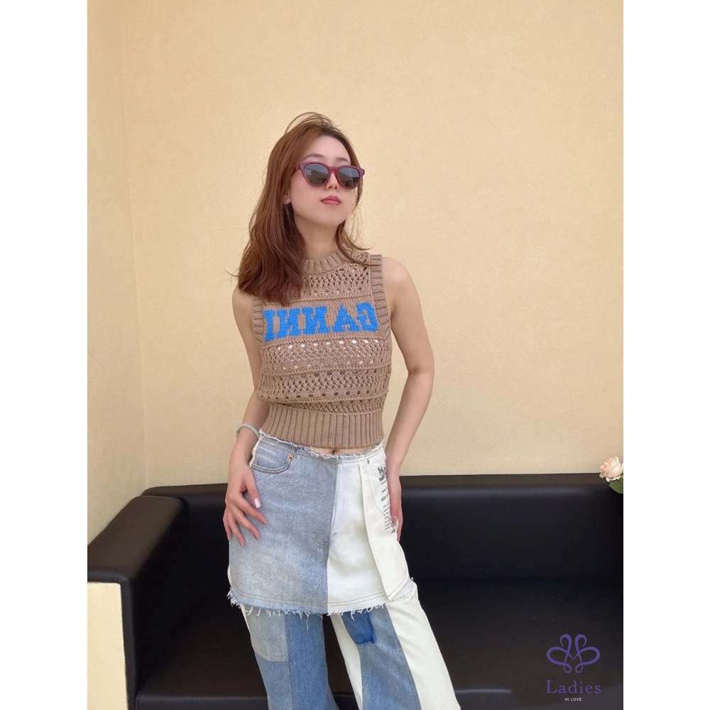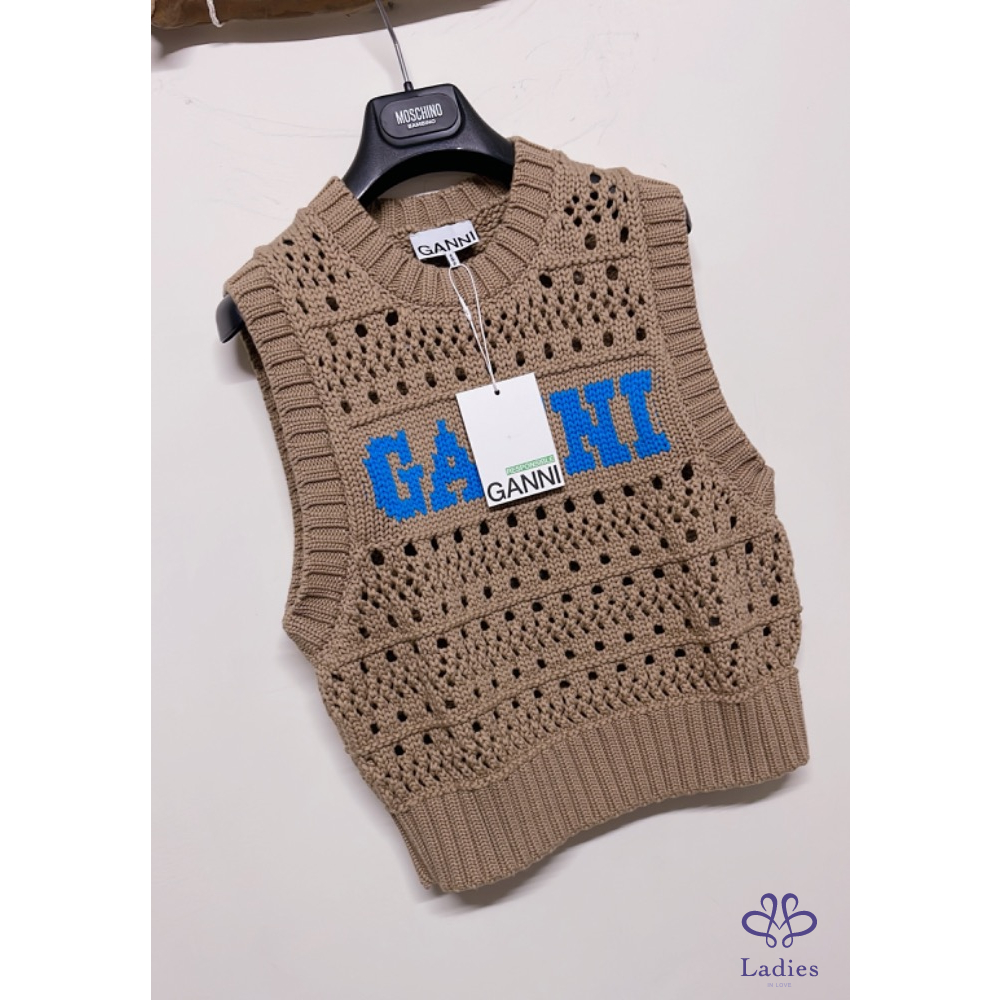 首頁 精品服飾 全新GANNI經典簍空logo針織背心