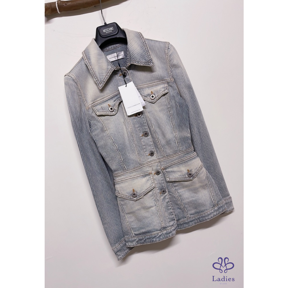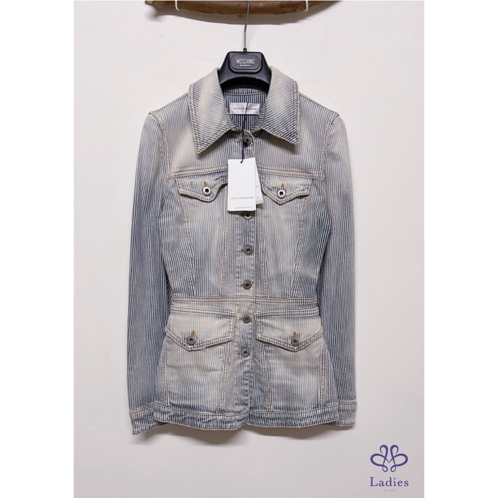 全新FAITH CONNEXION 條紋水洗牛仔外套
