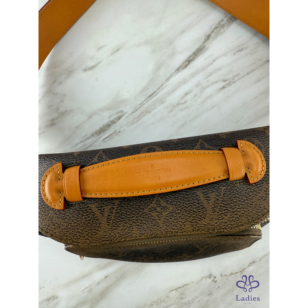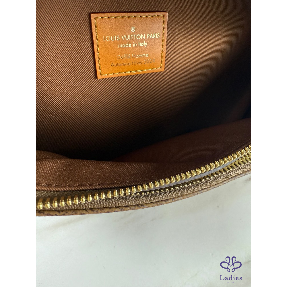經典老花,呈現仿舊的錯視效果。柔軟的袋身採用雙拉鏈設計,並附有可拆式印上「Marque L.Vuitton Déposée」標誌的吊飾