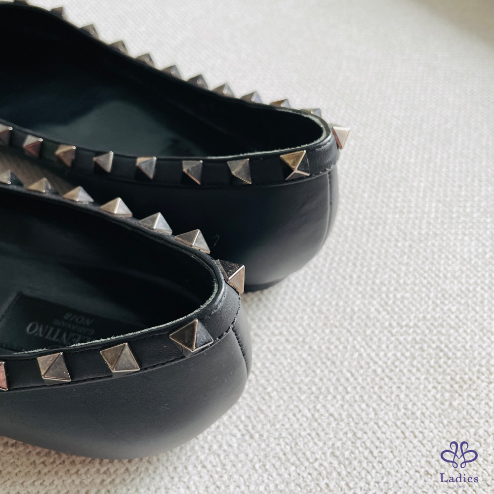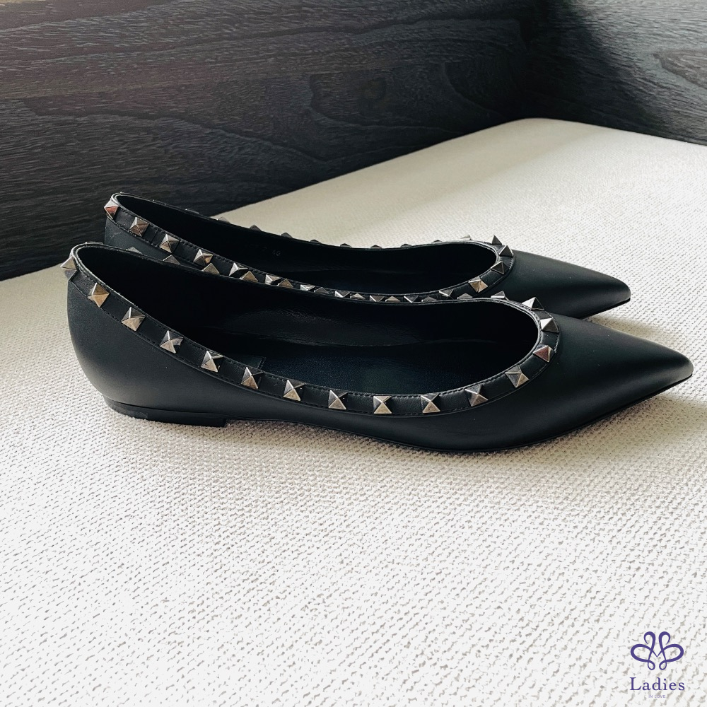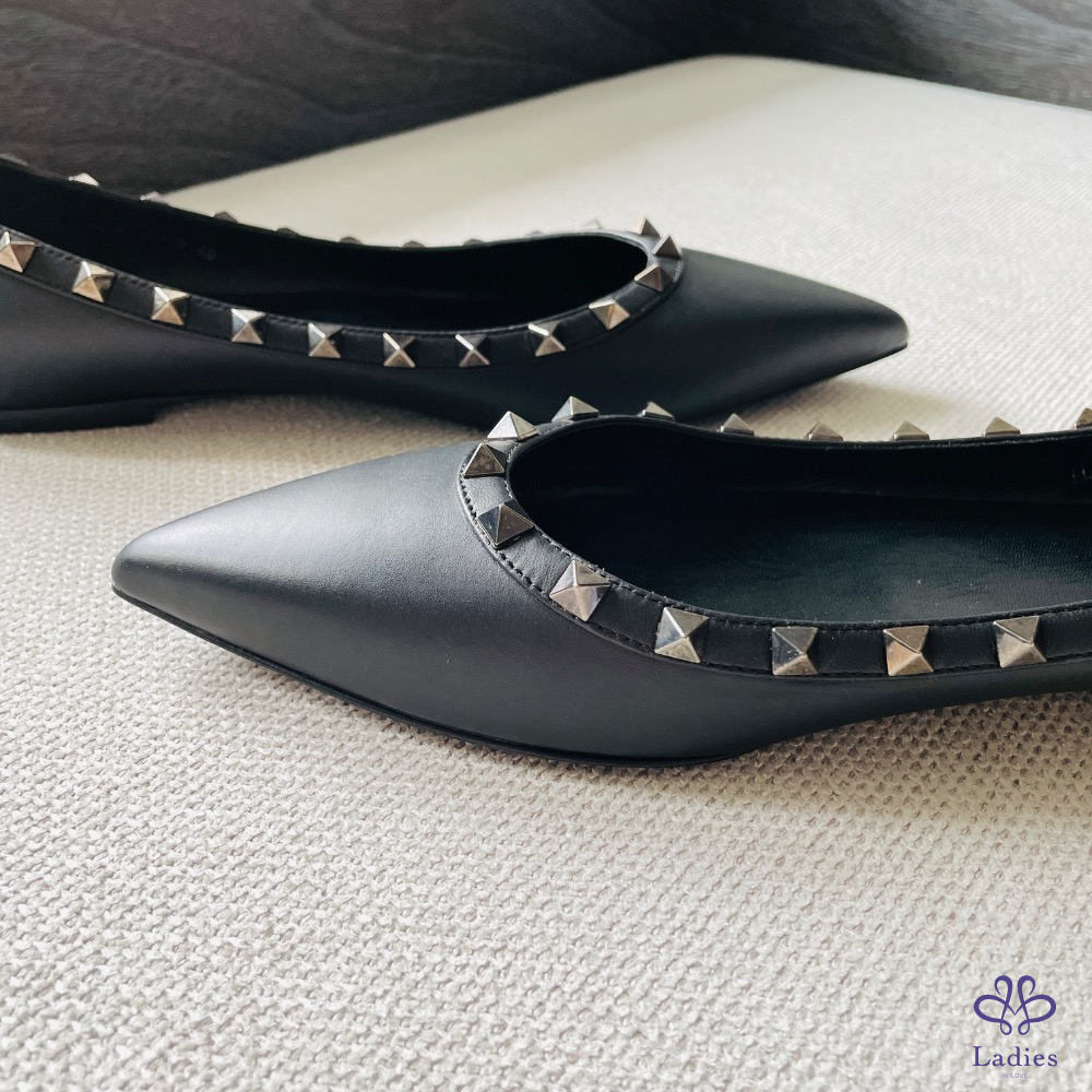 Valention 卯釘黑色平底皮鞋