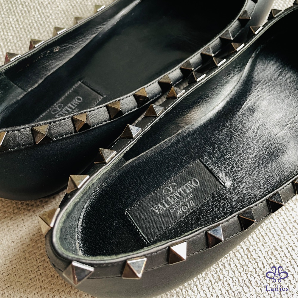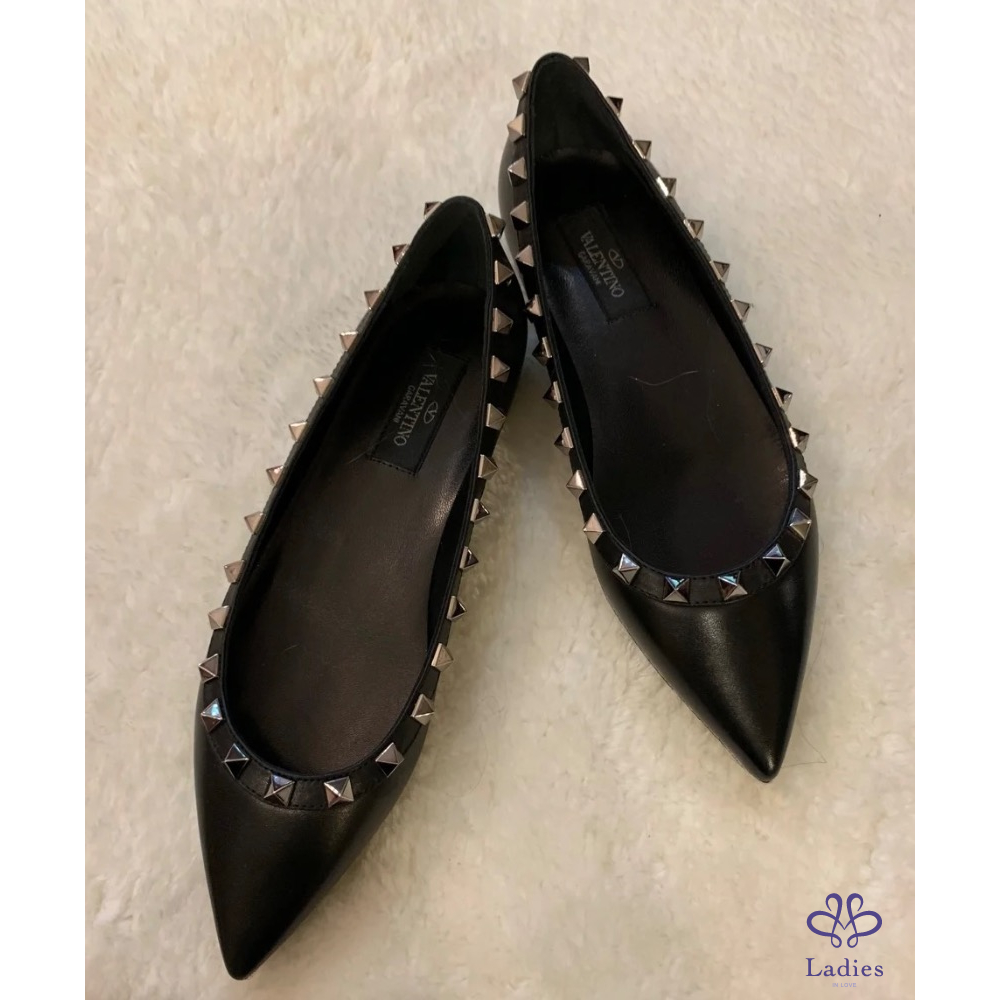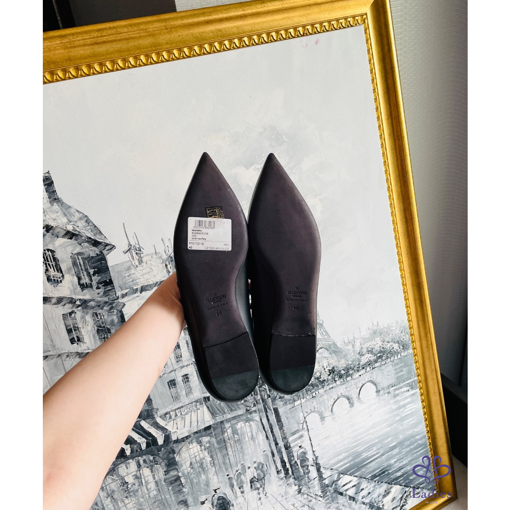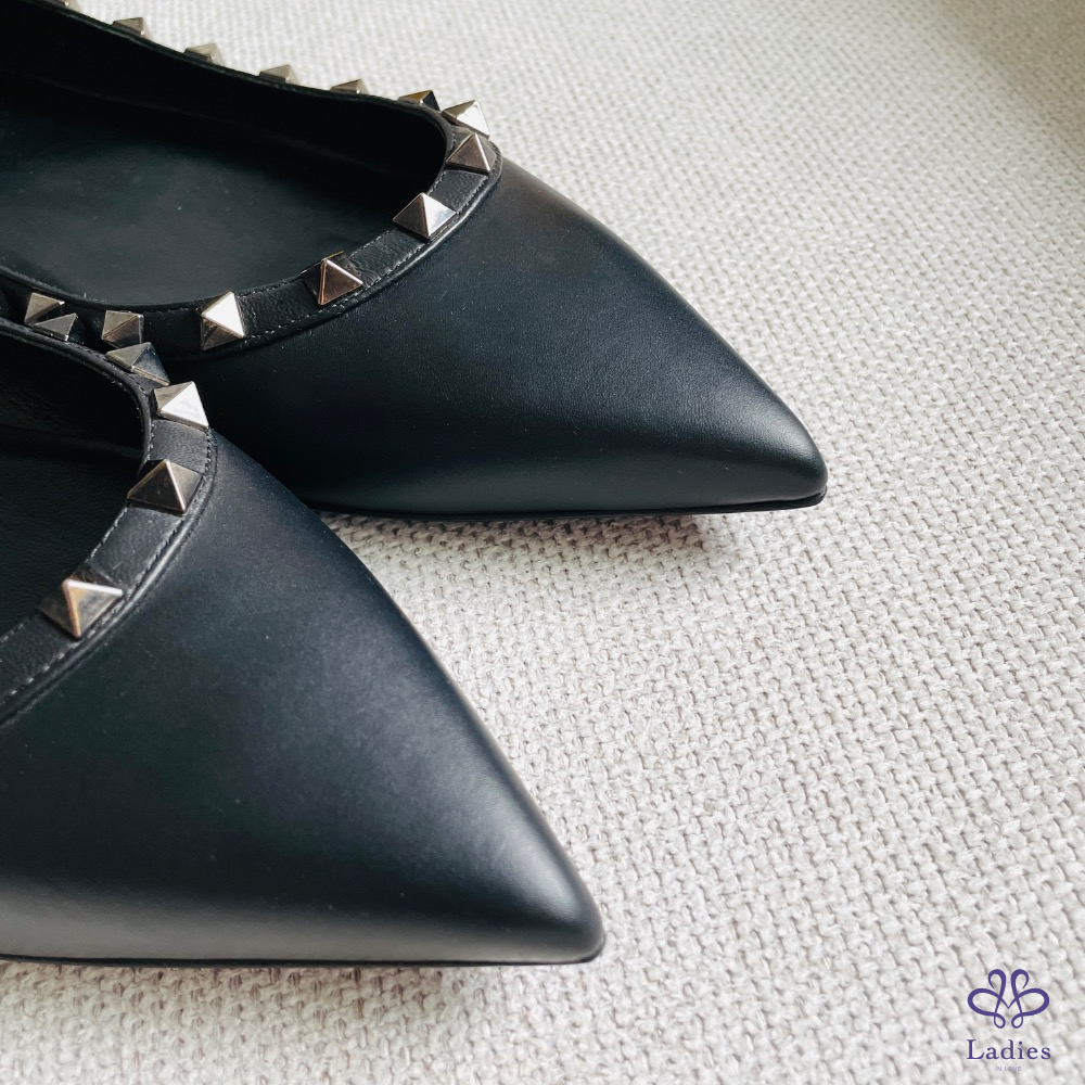 Valention 卯釘黑色平底皮鞋