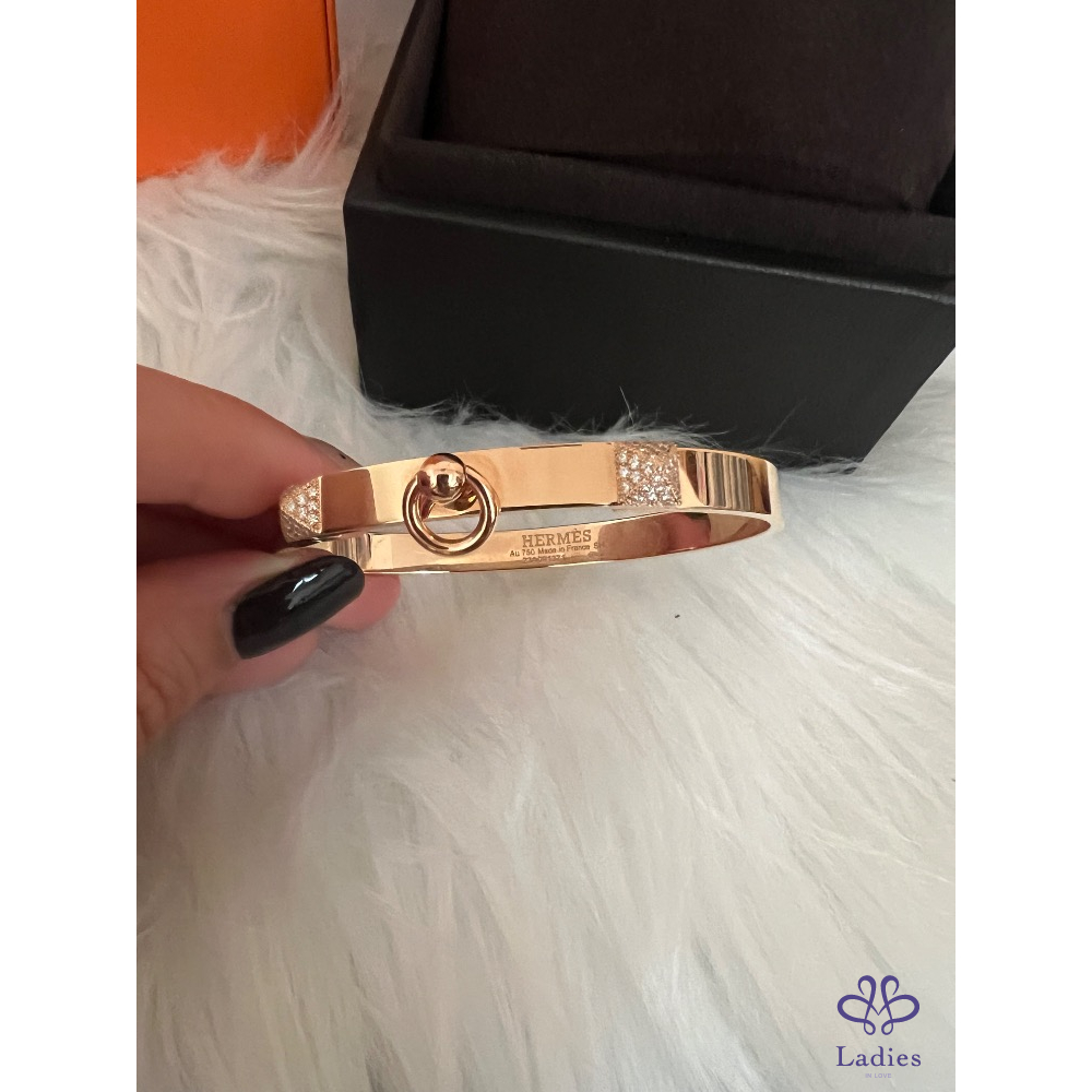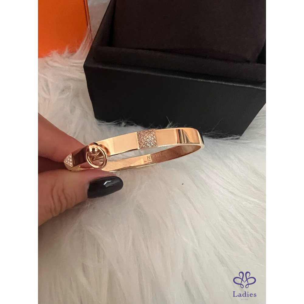 售9.5新Hermes CDC玫瑰金半鑽手環SH