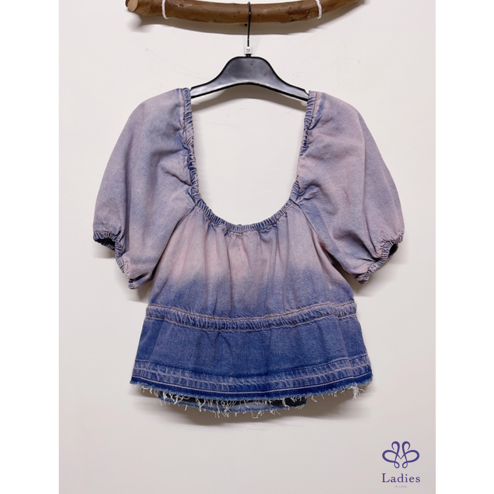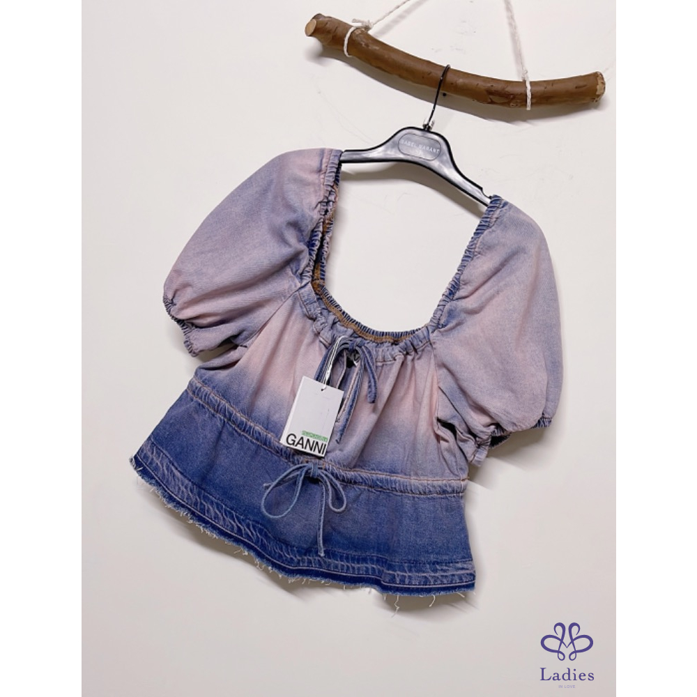 首頁 精品服飾 全新GANNI泡泡袖暈染牛仔上衣
