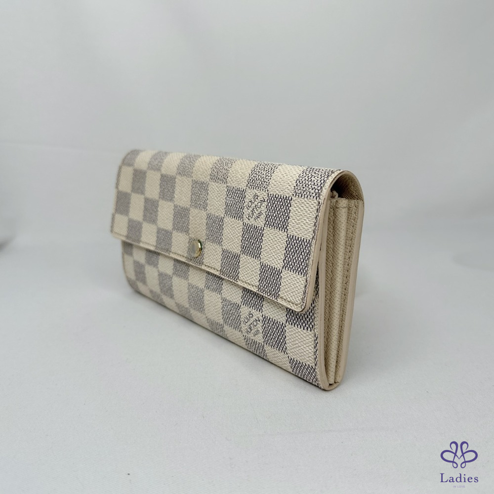 產品信息 【LV 白棋盤格扣式長夾】 白色Damier Azur白棋盤格紋 卡夾x10|鈔票層x2|內貼袋x1|拉鍊層x1 整體包況新舊如圖,二手商品均有正常使用/存放痕跡 型號:N61735 尺寸:19x10x2.5cm 附件:原廠防塵袋、台灣購證(去個資) #B112052802