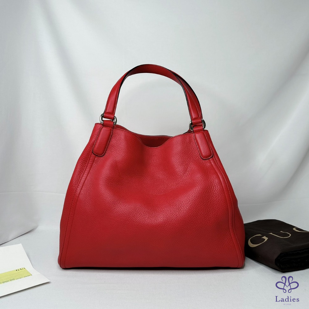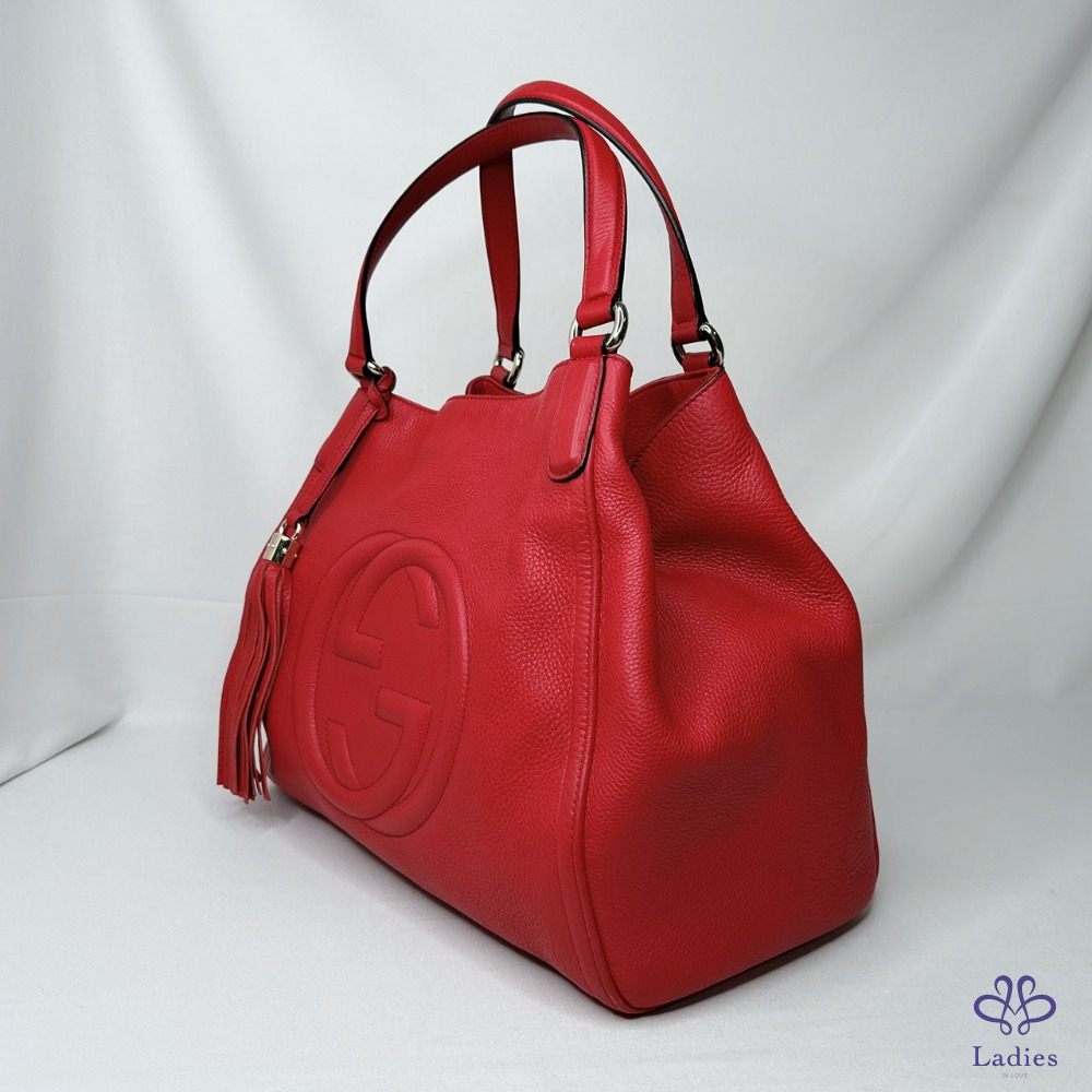 產品信息 【GUCCI SOHO荔枝牛流蘇手提包】 專櫃價近8萬 上班通勤/媽媽包/購物包 大容量經典荔枝牛皮 整體包況新舊如圖,二手商品均有正常使用/存放痕跡 型號:282309 尺寸:36x28x17cm 附件:原廠防塵袋、台灣購證(去個資) #B114030602