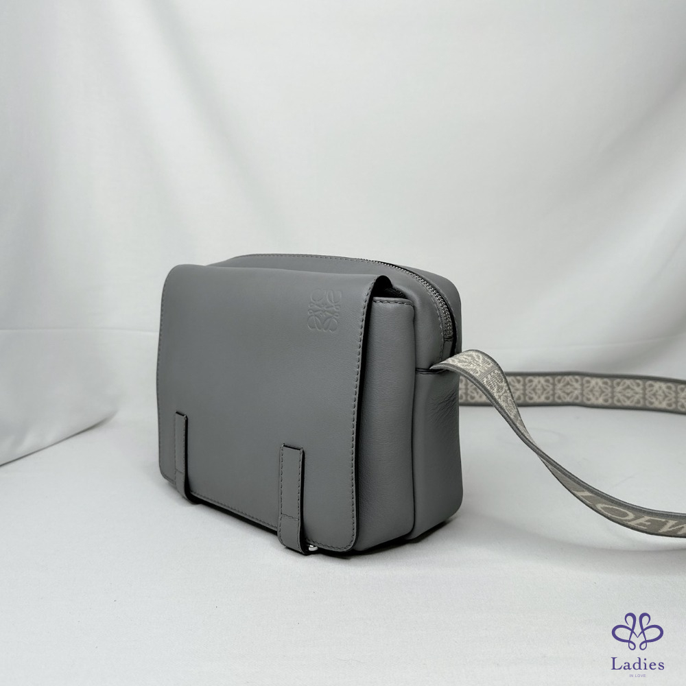 產品信息 【LOEWE Military光滑牛小號郵差包】 #專櫃價約7萬7 配有一個拉鍊主隔層和一個磁吸前翻蓋隔層 採用柔軟光滑小牛皮製成,搭配LOEWE緹花背帶 整體包況約9成新,二手商品均有正常使用/存放痕跡 型號:B553A72X27 尺寸:23x18x9cm 附件:原廠防塵袋、國外購證(去個資) #B114032005