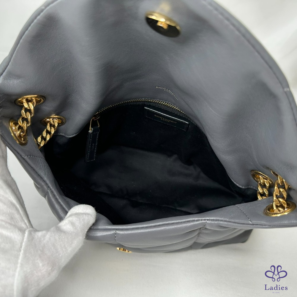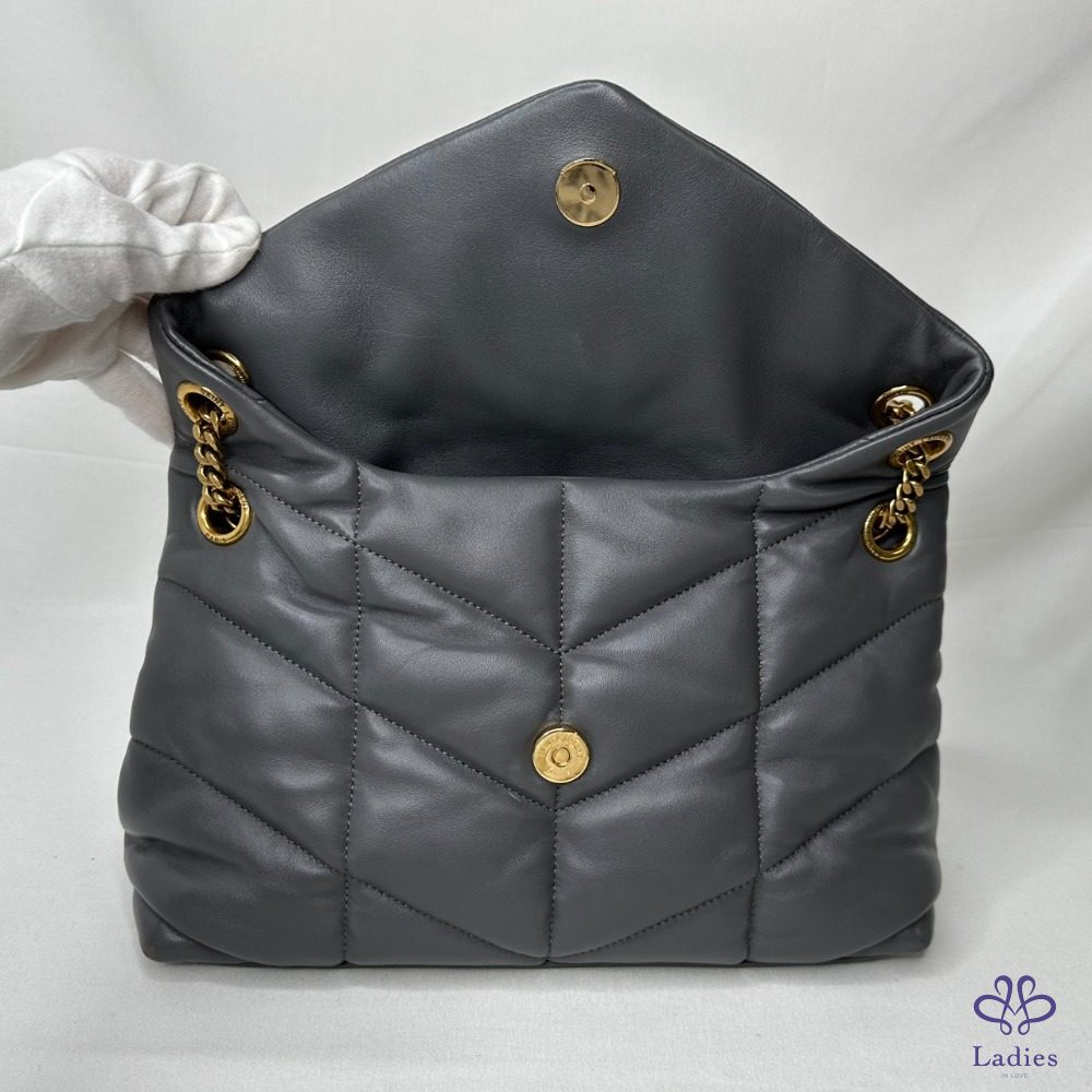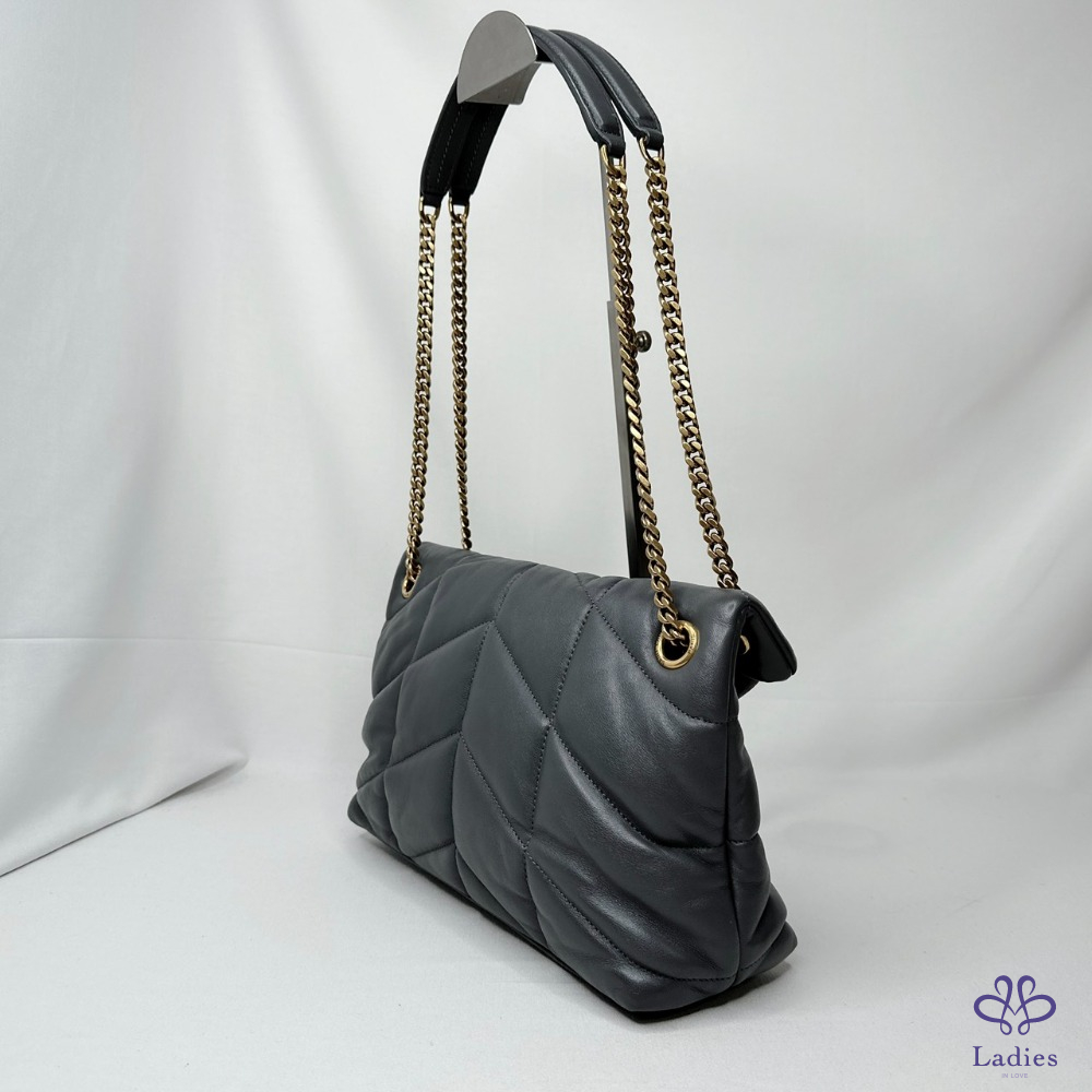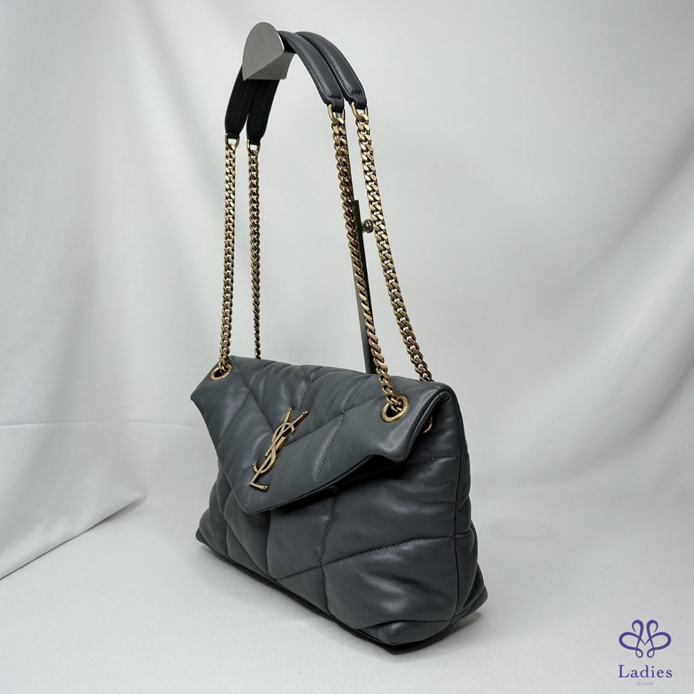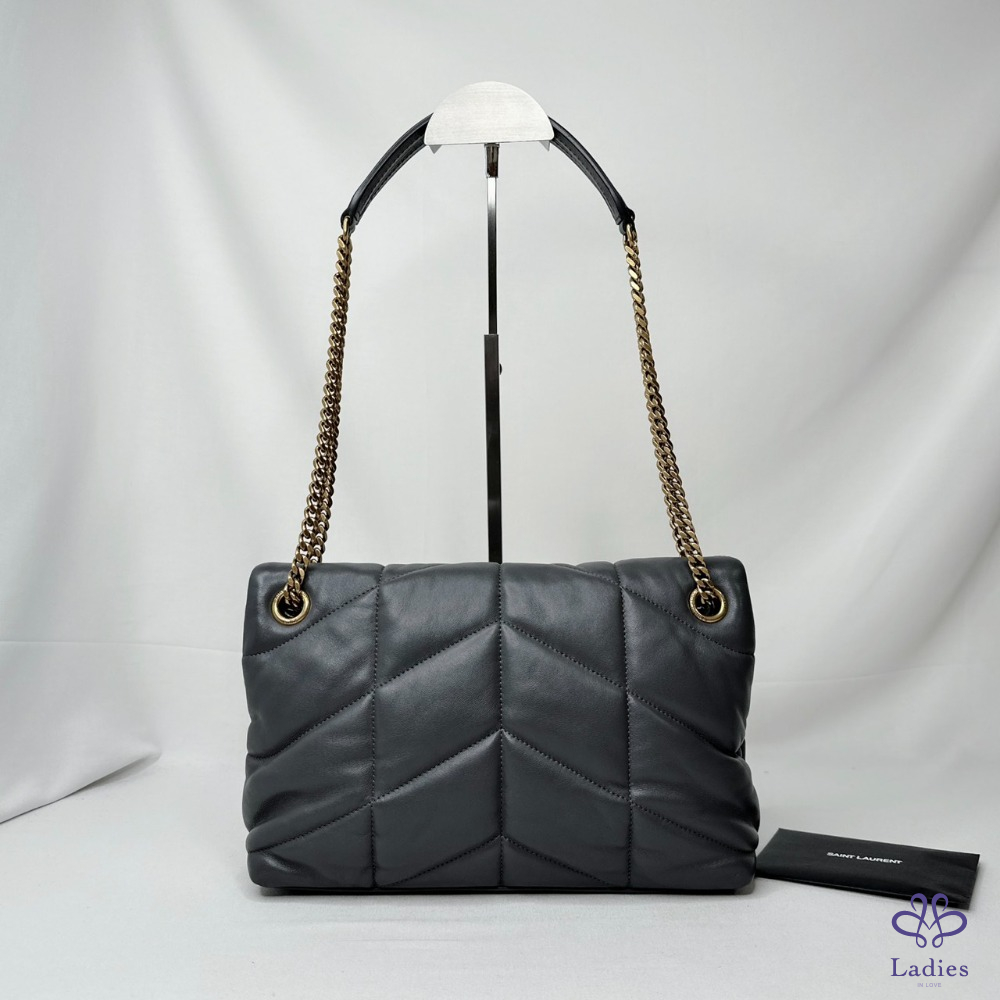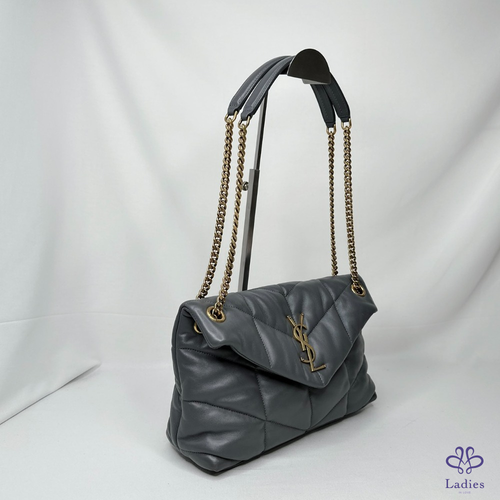 產品信息 【YSL Puffer小號絎縫灰羊鍊帶包】 #專櫃價約10萬4 #風暴灰 #泡芙包 採用柔軟的納帕小羊皮製成 絎縫效果的V字形圖案縫線,羅緞襯裡 配有滑動式鏈條,可肩背也可斜背 整體包況約9成新,二手商品均有正常使用/存放痕跡 型號:577476 尺寸:29x17x11cm 附件:說明卡 #B114032006