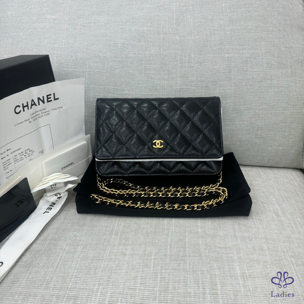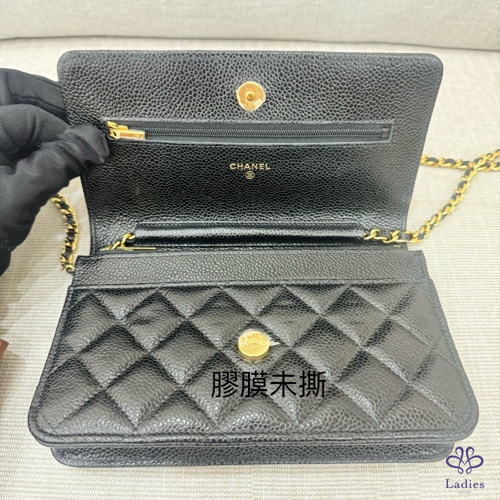 💖💖 香奈兒 Chanel 荔枝紋牛皮 WOC 黑色 金釦