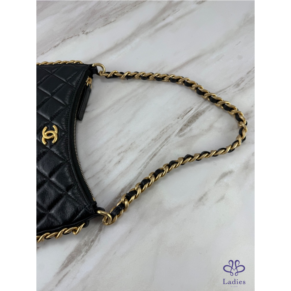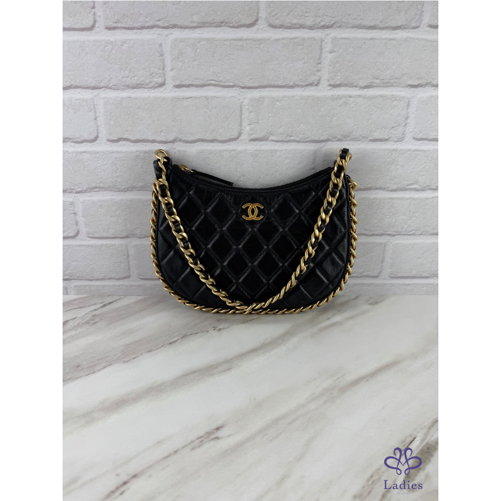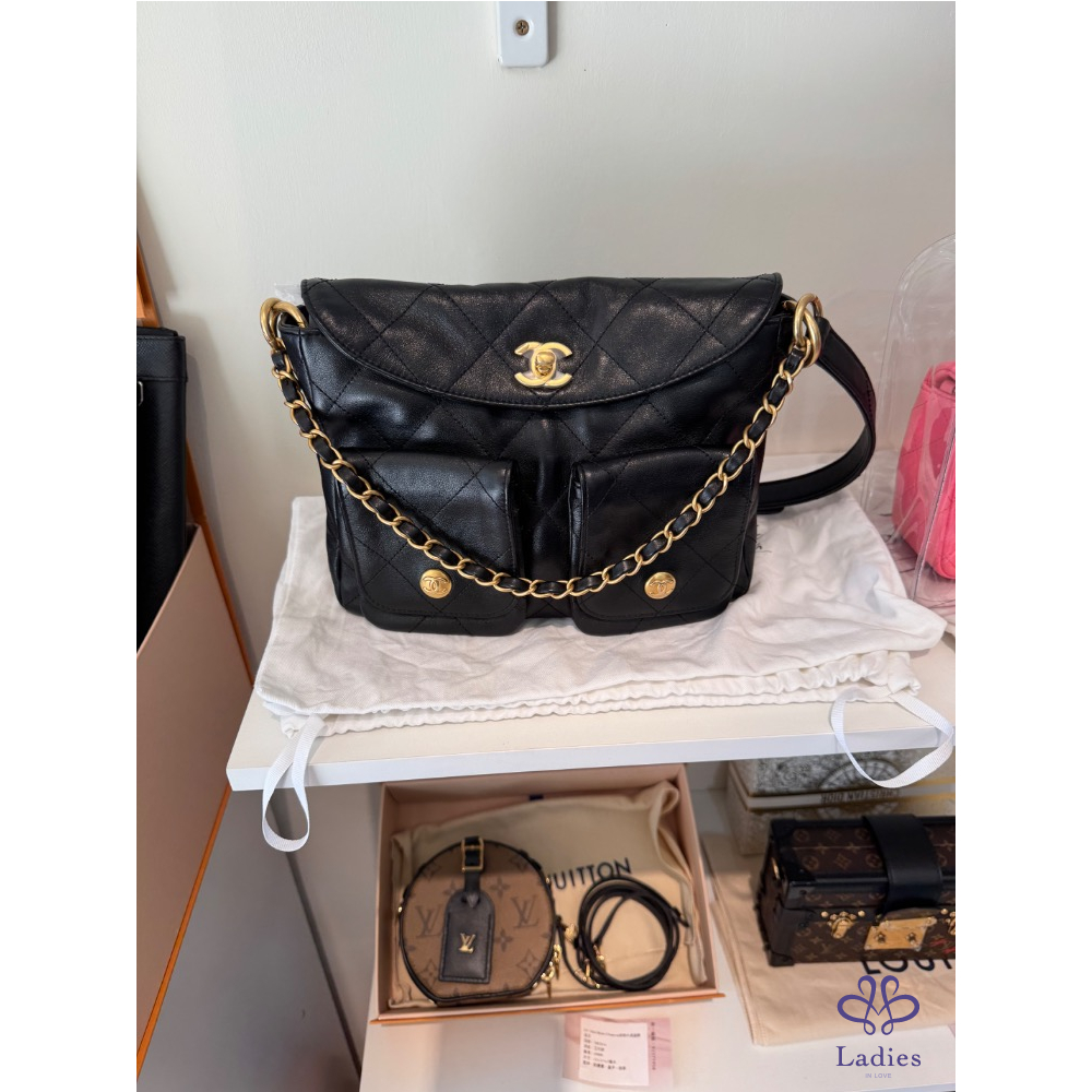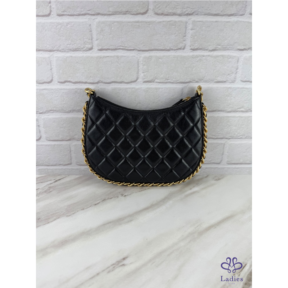 經典黑金配色加上皮穿鍊鑲邊的設計,高級又特別,黑色包面散發出奢華光澤,優雅精緻,時髦百搭,上身適合各種穿搭,盡顯名媛氣質