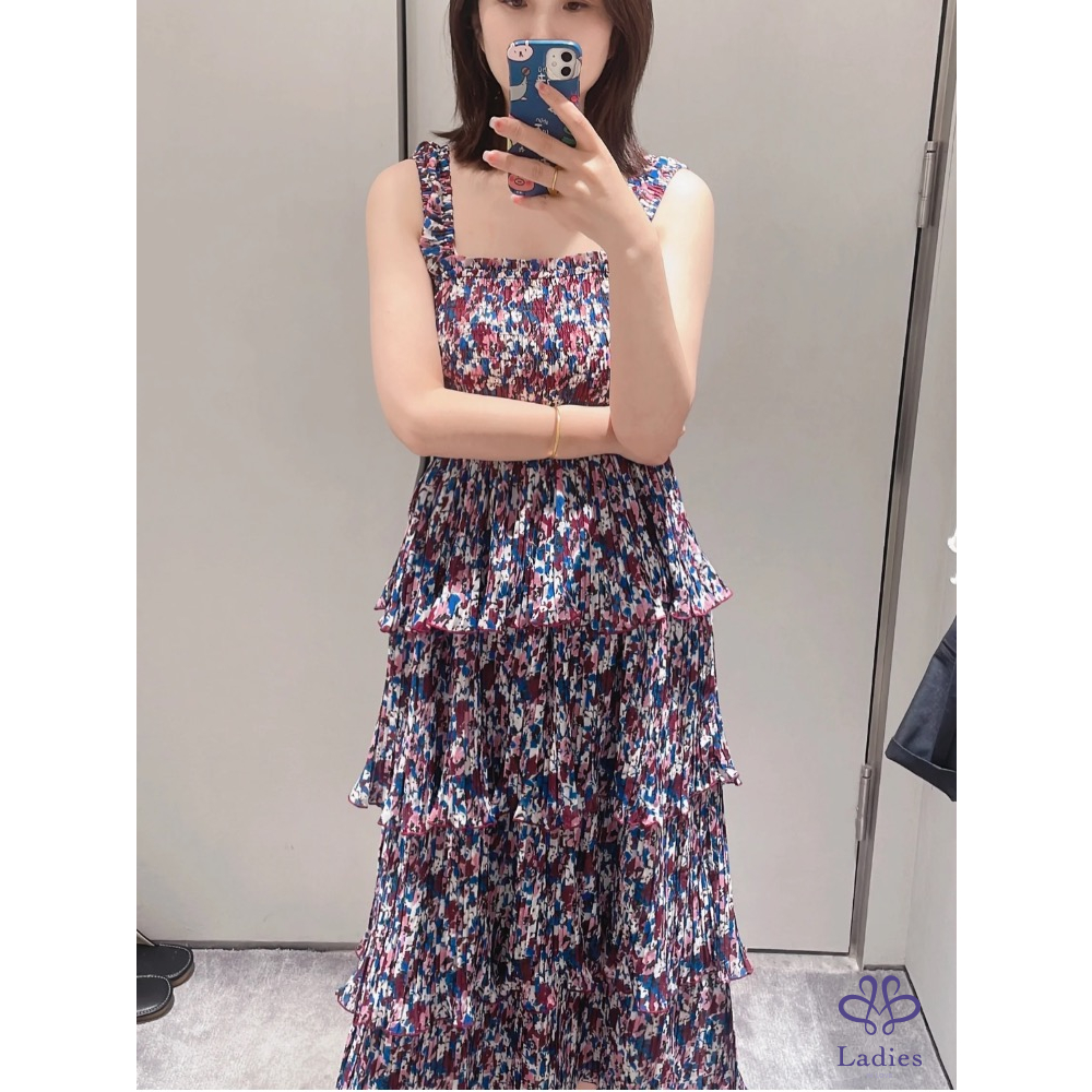 全新GANNI絕美印花雪紡蛋糕連衣裙