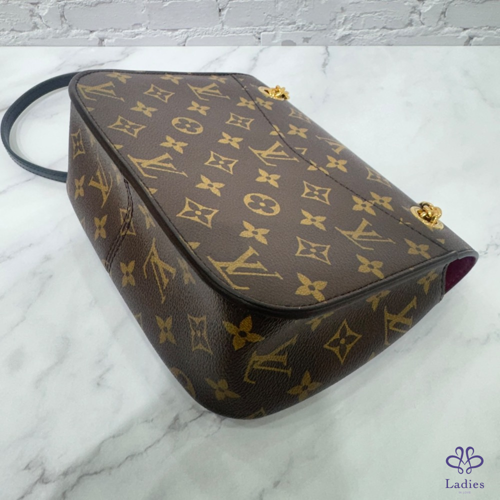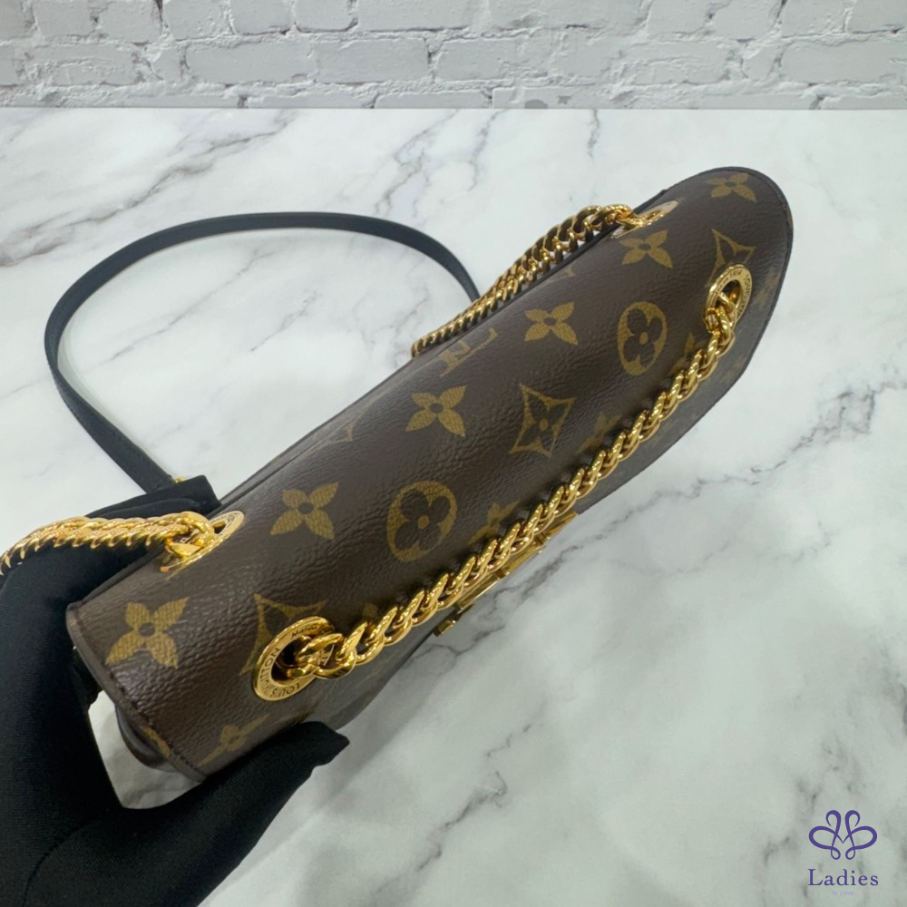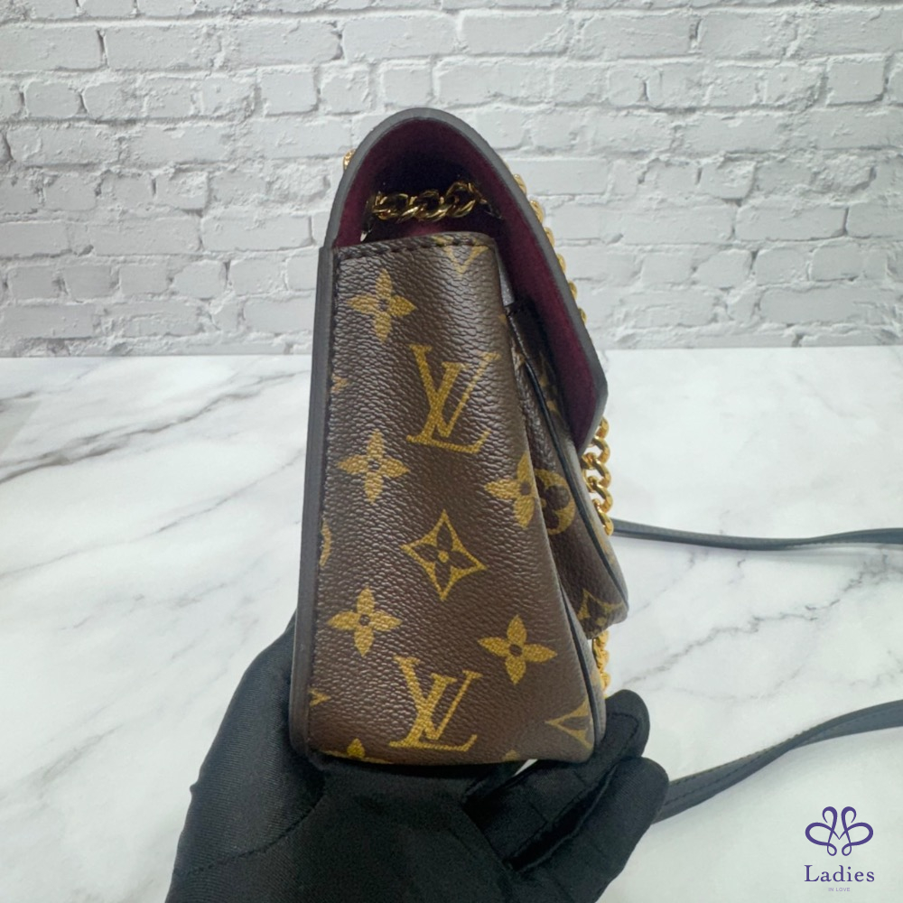 這款以Monogram帆布製作Passy手袋小巧精緻,配有鏈帶彰顯時尚休閒的氣息。袋款設計實用且日夜皆宜,正面及背面均設有外置口袋,而另有兩個內置口袋,以便存取必備物品,而黑色樹脂LV磁扣設計則綴以金色線條勾勒,倍添格調