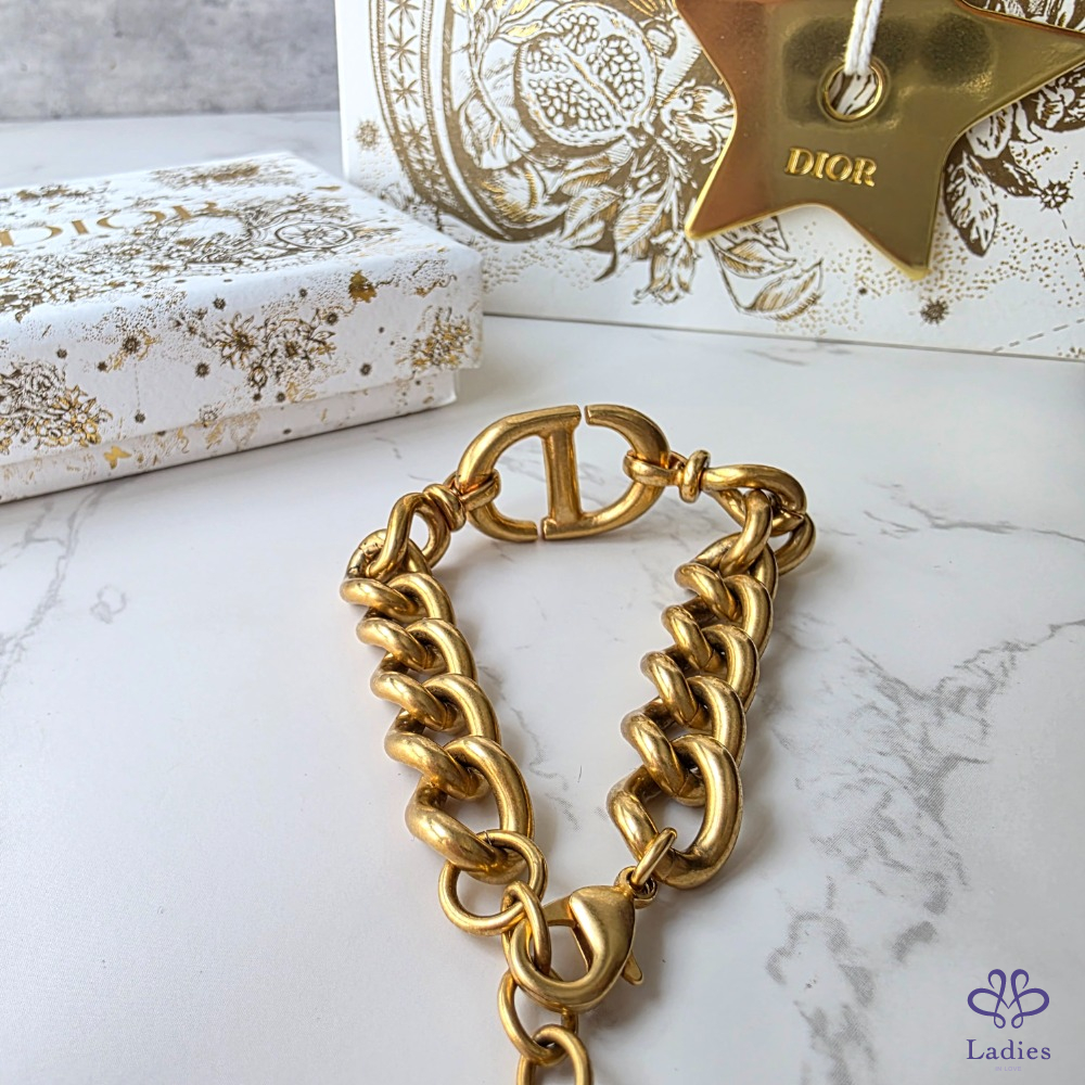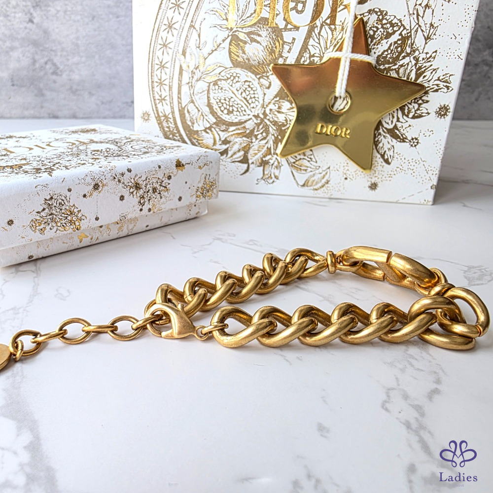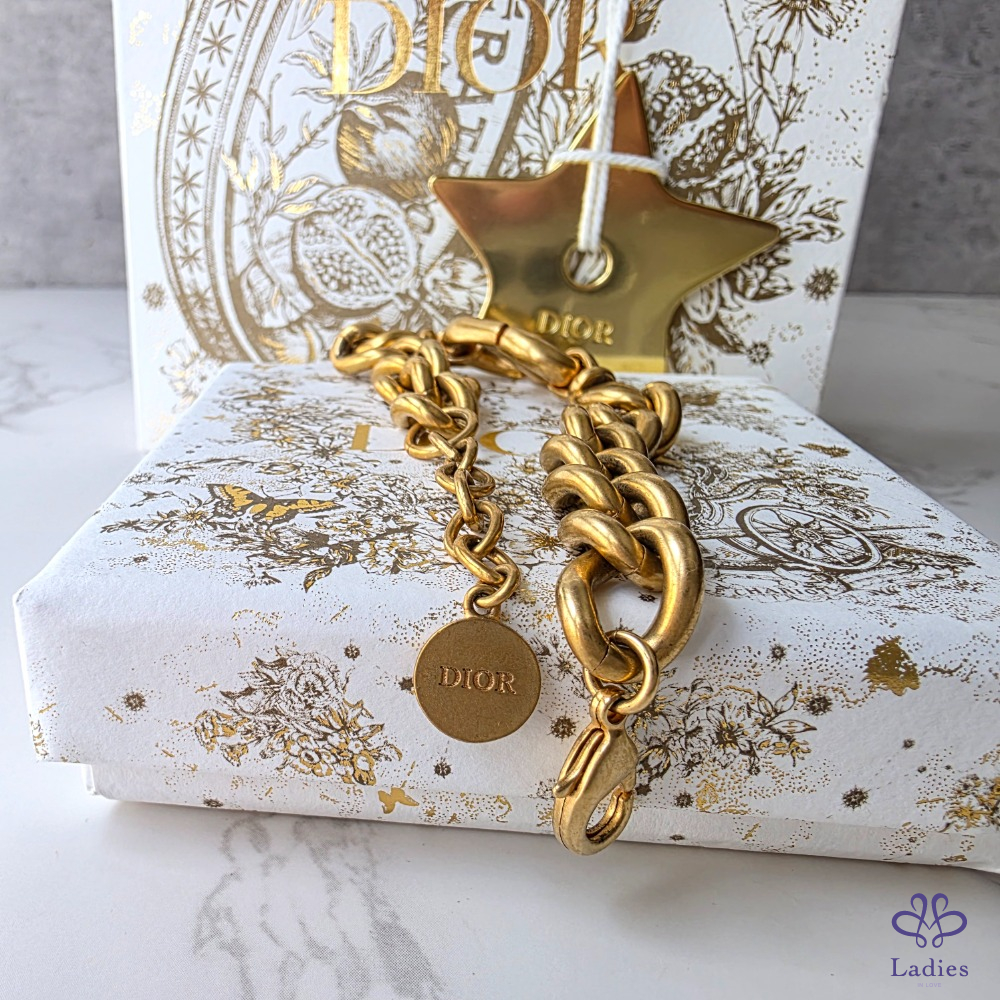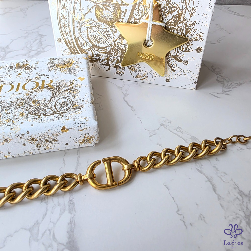 產品信息 🫰DIOR許願級夢幻手鍊,為了美美的聖誕包裝購入,歐洲專櫃購入後就供奉著😆 ✨️配件:聖誕包裝大全配,有Dior星星、紙袋、盒子、緞帶、塵袋、義大利購證 ✨️狀態:95新 以下為官網介紹: 這款鏈帶手鏈是 CD Navy 經典系列的一部分。由金色色調金屬鏈結組成,中心綴以「CD」標誌。這個時尚款式是必備配飾,可配搭 CD Navy 系列的其他作品。 • 「CD」標誌 • 金色色調金屬 • 龍蝦扣 • 德國製造 可調節長度:16~20cm