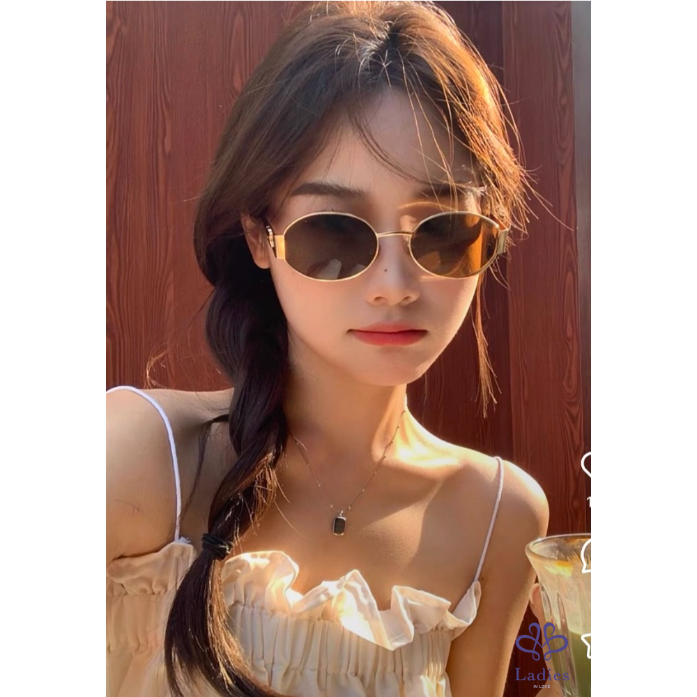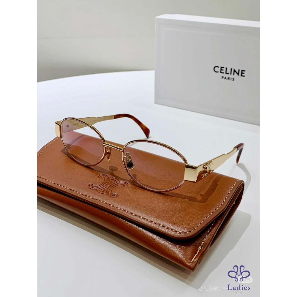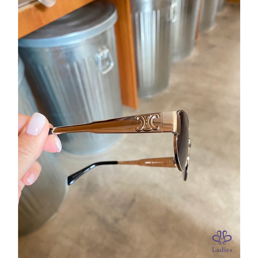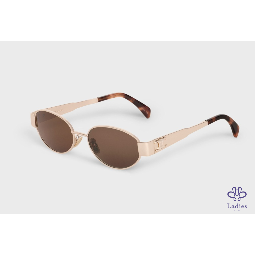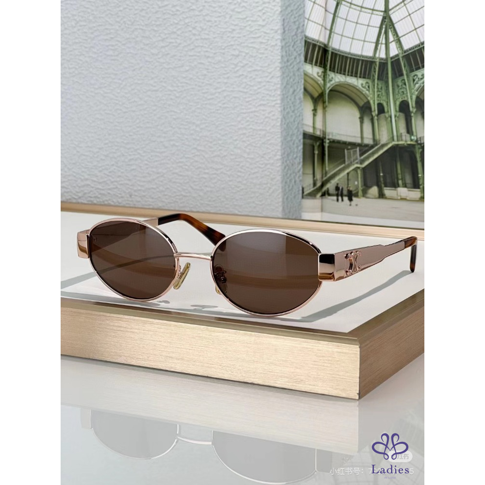 全新 Celine CL40235U 新色凱旋門標誌玫瑰金鏡腳橢圓框墨鏡