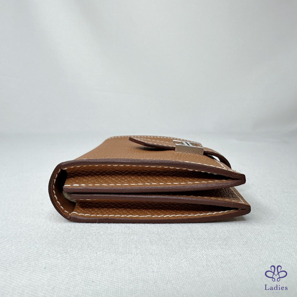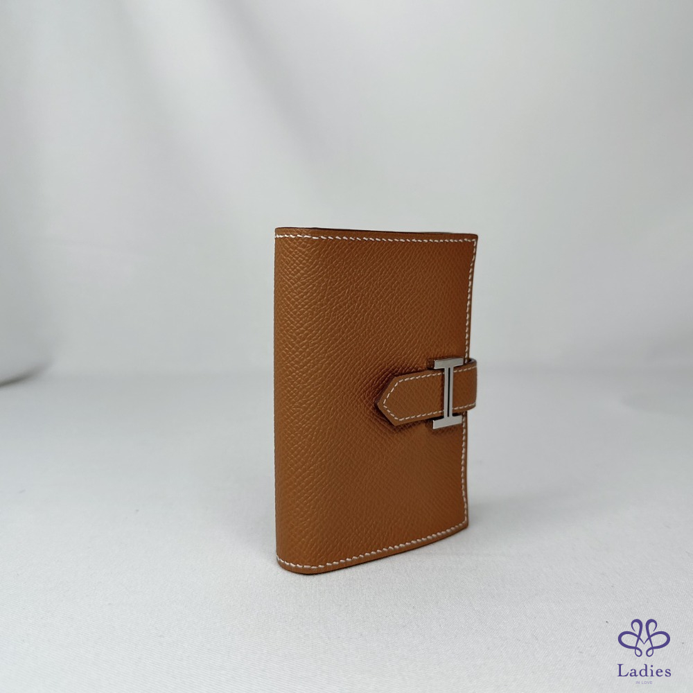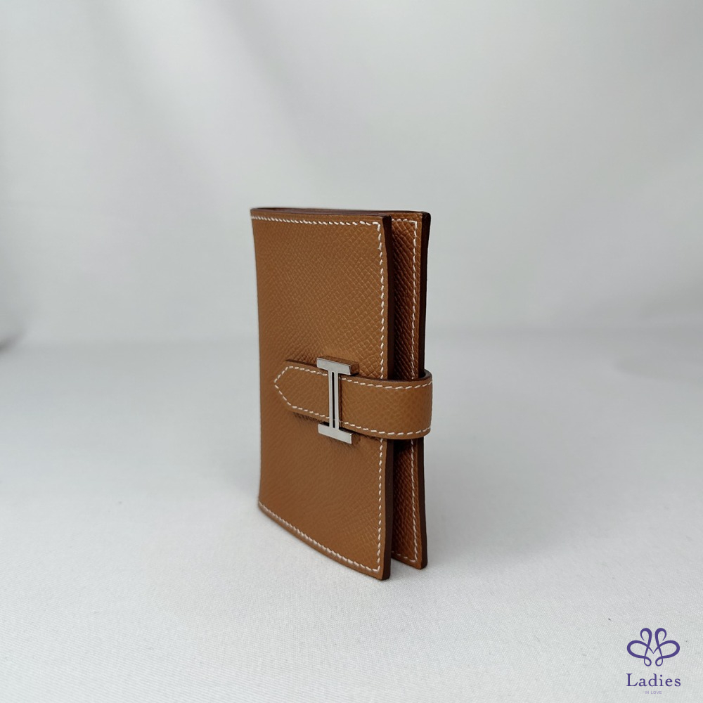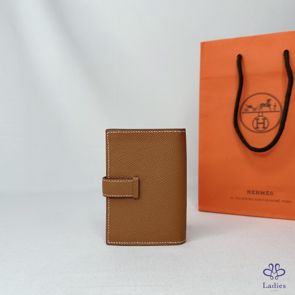產品信息 【HERMES Mini Bearn卡包】 #Y刻金棕銀釦 #專櫃價9萬多 超薄Epsom小牛皮卡包提供多個隔層,可放置信用卡和紙鈔 皮革翻蓋搭配穿孔“H”形扣,每側兩個信用卡插槽 整體包況約9成5新,二手商品均有正常使用/存放痕跡 尺寸:7.5x10.3x0.4cm 附件:原廠紙袋 #B114032204