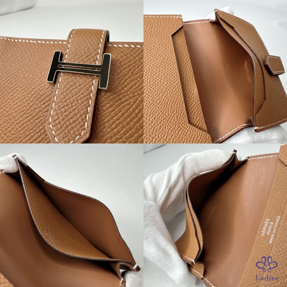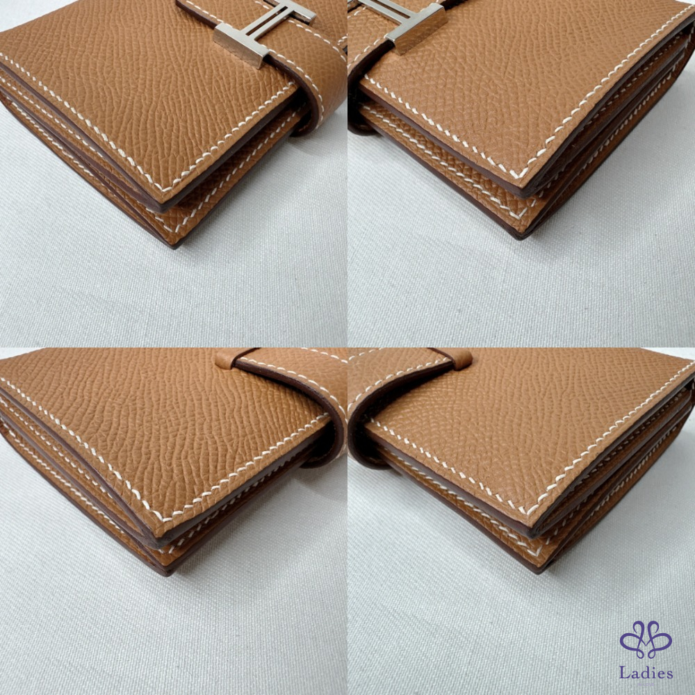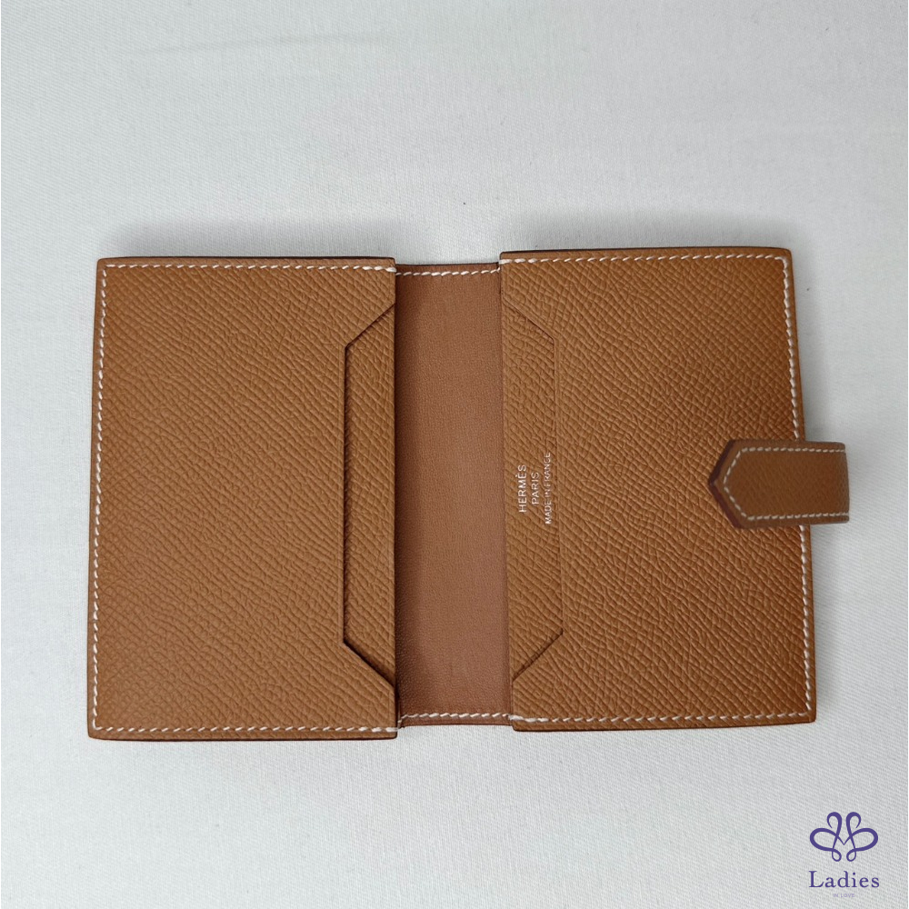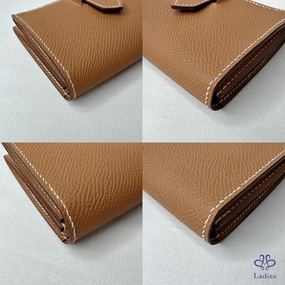 產品信息 【HERMES Mini Bearn卡包】 #Y刻金棕銀釦 #專櫃價9萬多 超薄Epsom小牛皮卡包提供多個隔層,可放置信用卡和紙鈔 皮革翻蓋搭配穿孔“H”形扣,每側兩個信用卡插槽 整體包況約9成5新,二手商品均有正常使用/存放痕跡 尺寸:7.5x10.3x0.4cm 附件:原廠紙袋 #B114032204