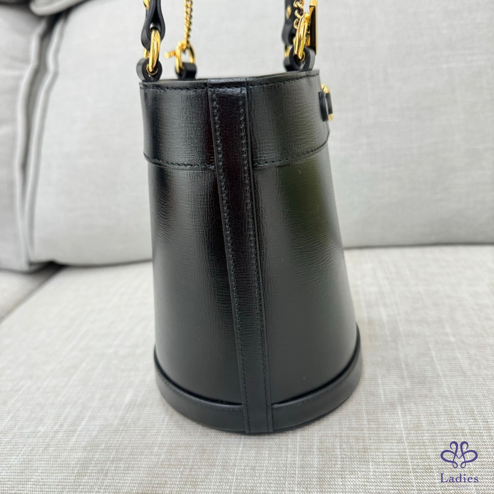 💖💖 Gucci 馬銜扣 1955 復古抽繩水桶包 手提包 肩背包 黑金