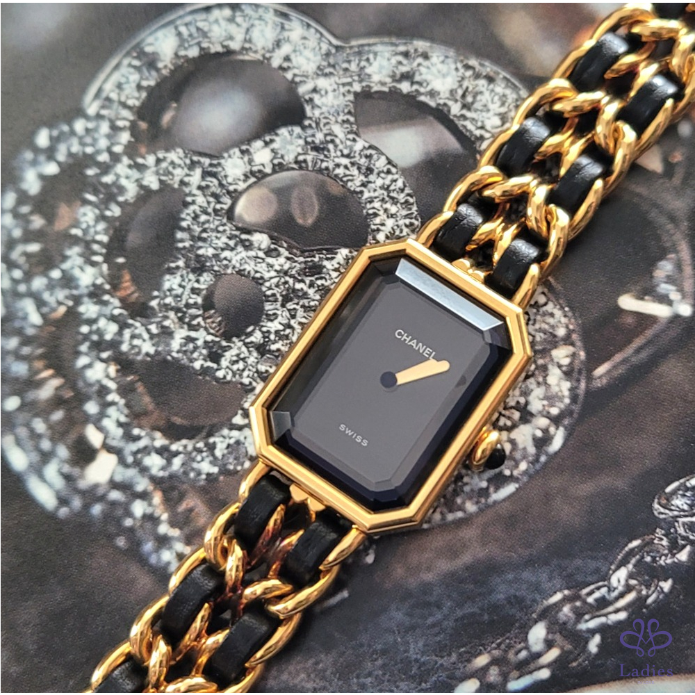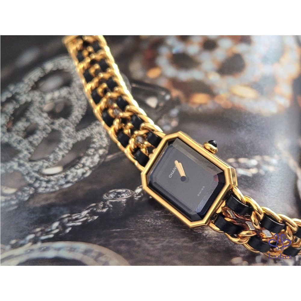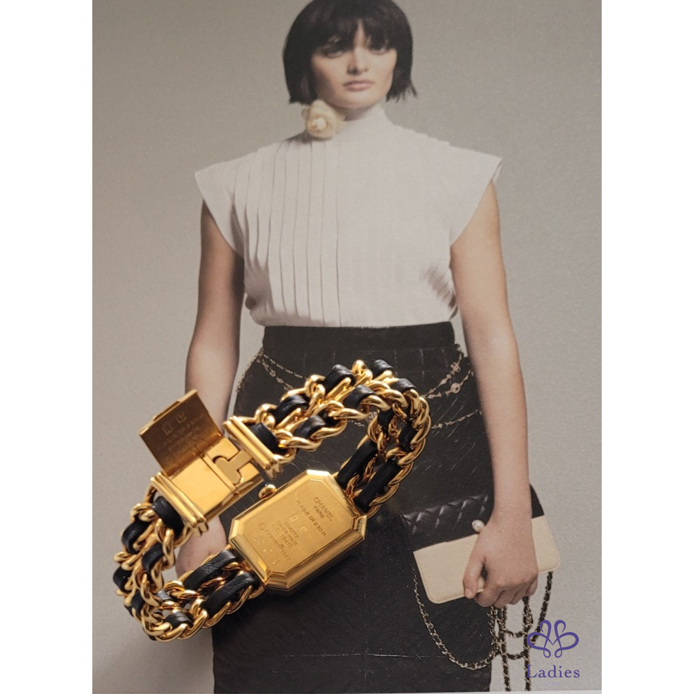 ~CHANEL premiere 非常新 Vintage 最搶手熱門款~金鍊黑皮繩L號